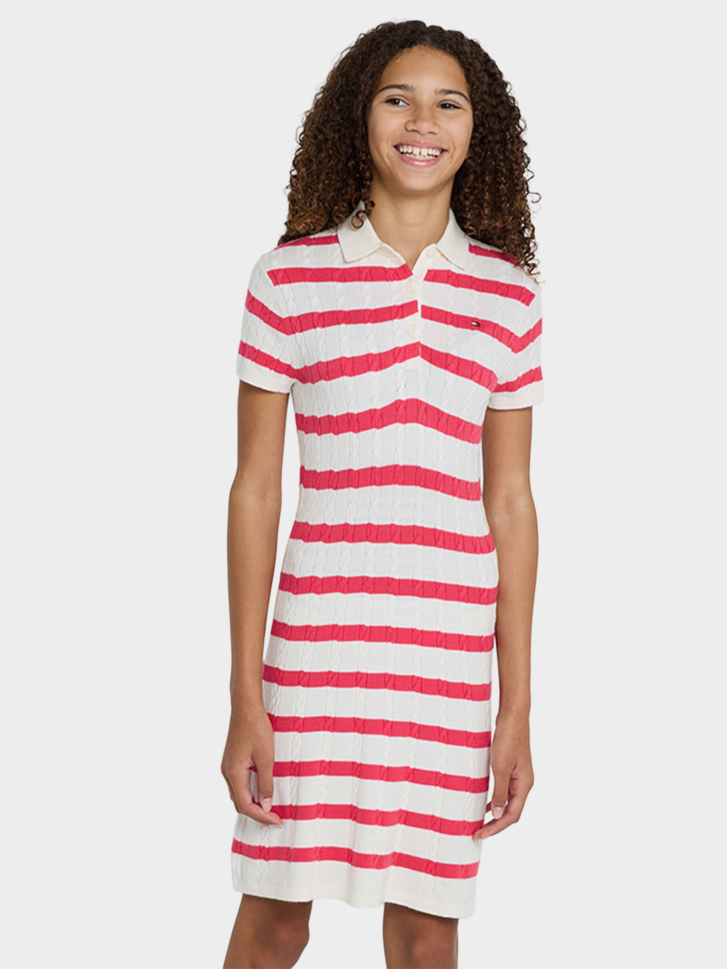 Tommy Hilfiger - SWEATER DRESS SS , 4 , Ivory Petal Base Laser Pink Stripes , Style KG0KG08332