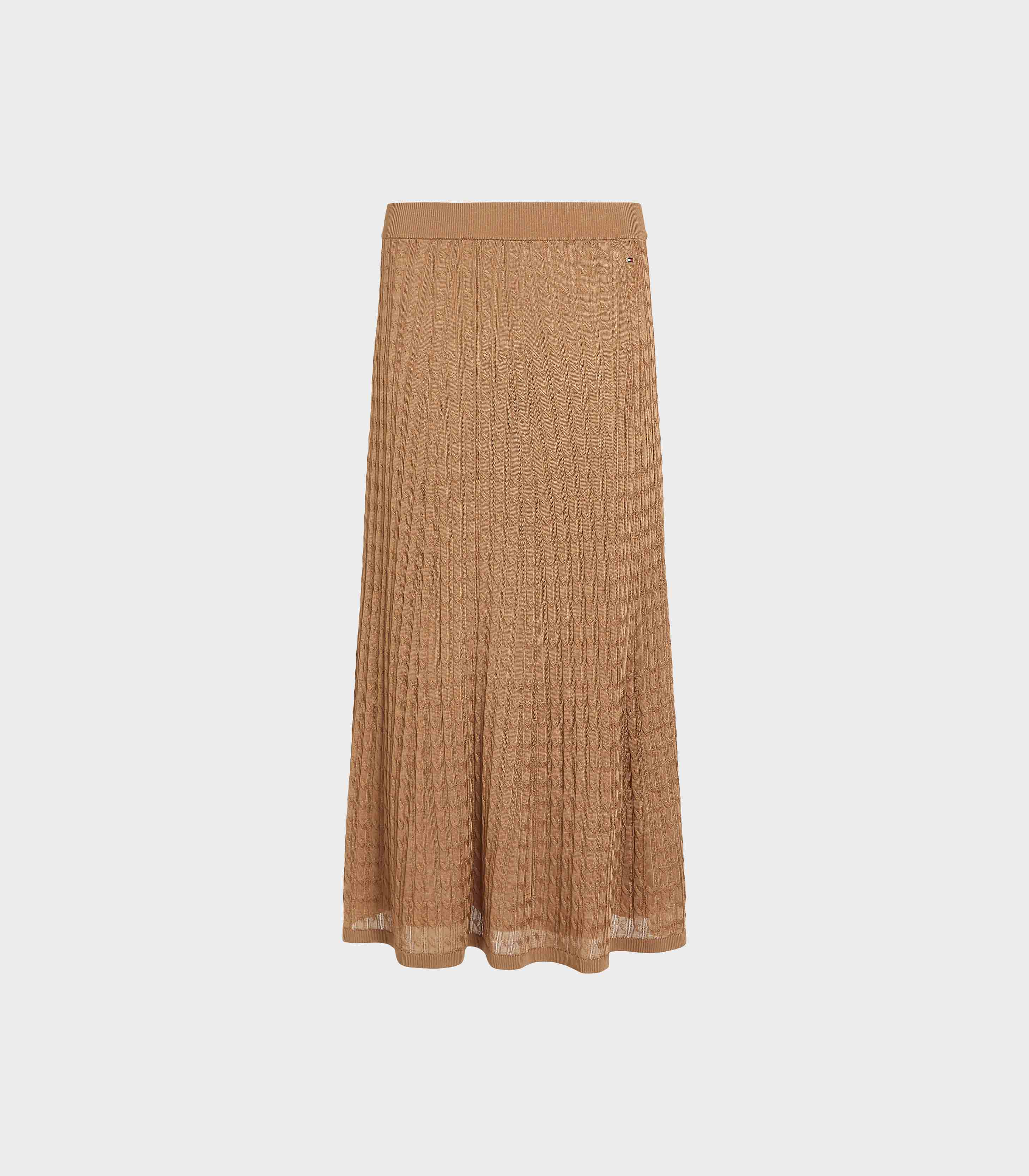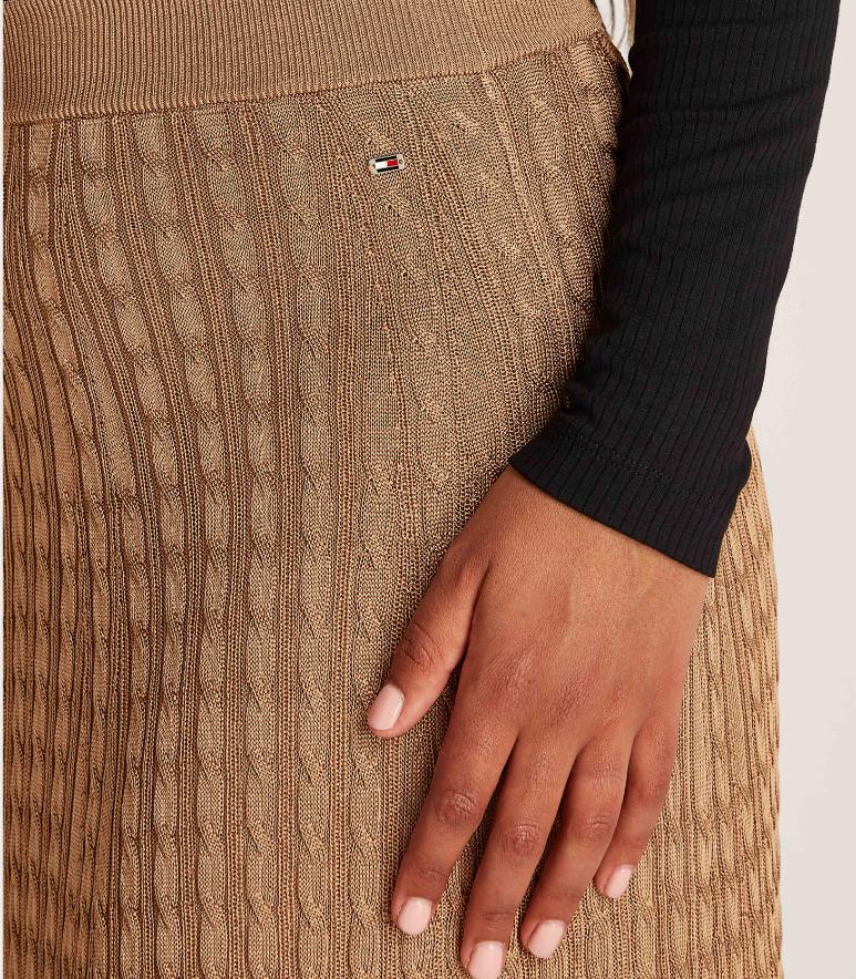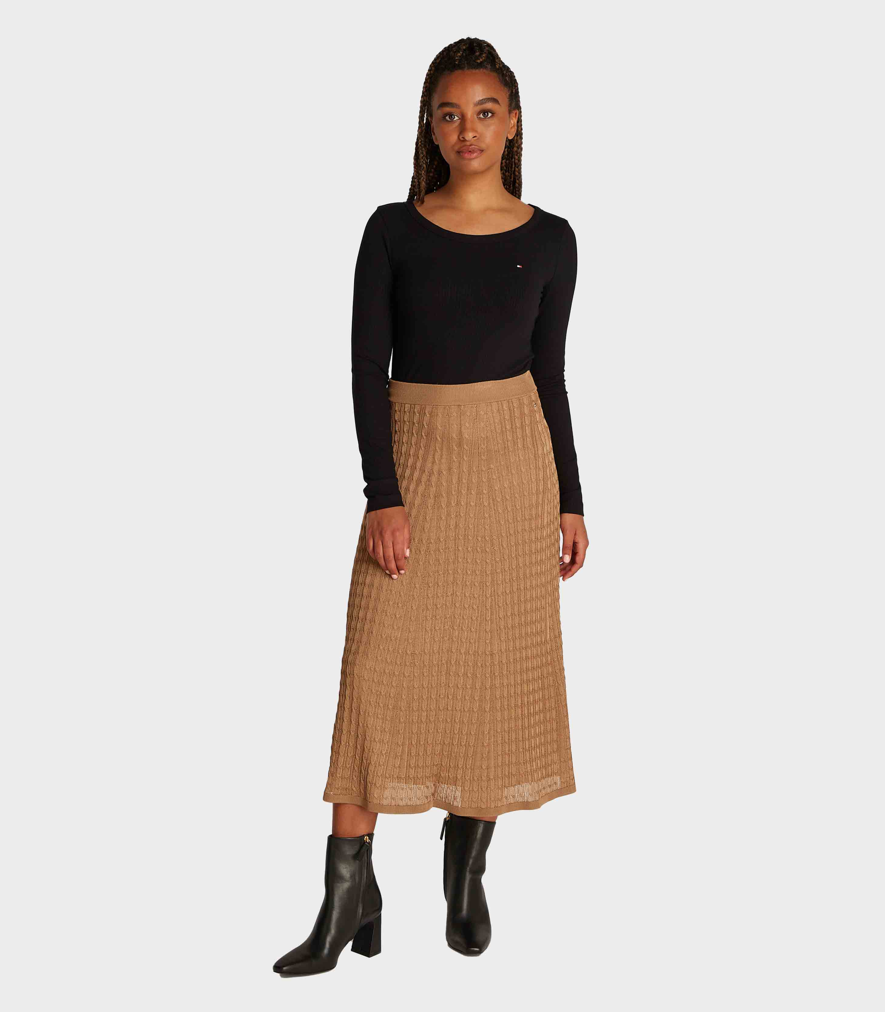 Tommy Hilfiger - RAYON CABLE MIDI FLARED SKIRT , L , Safari Canvas , Style WW0WW44006