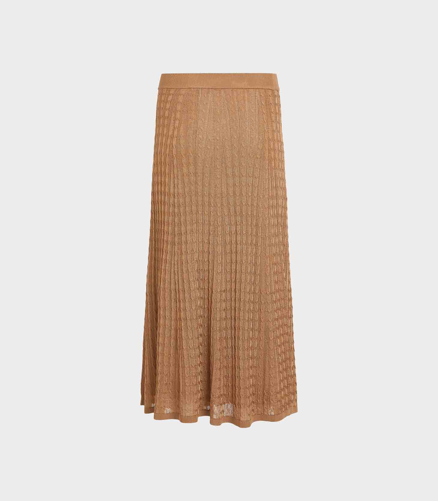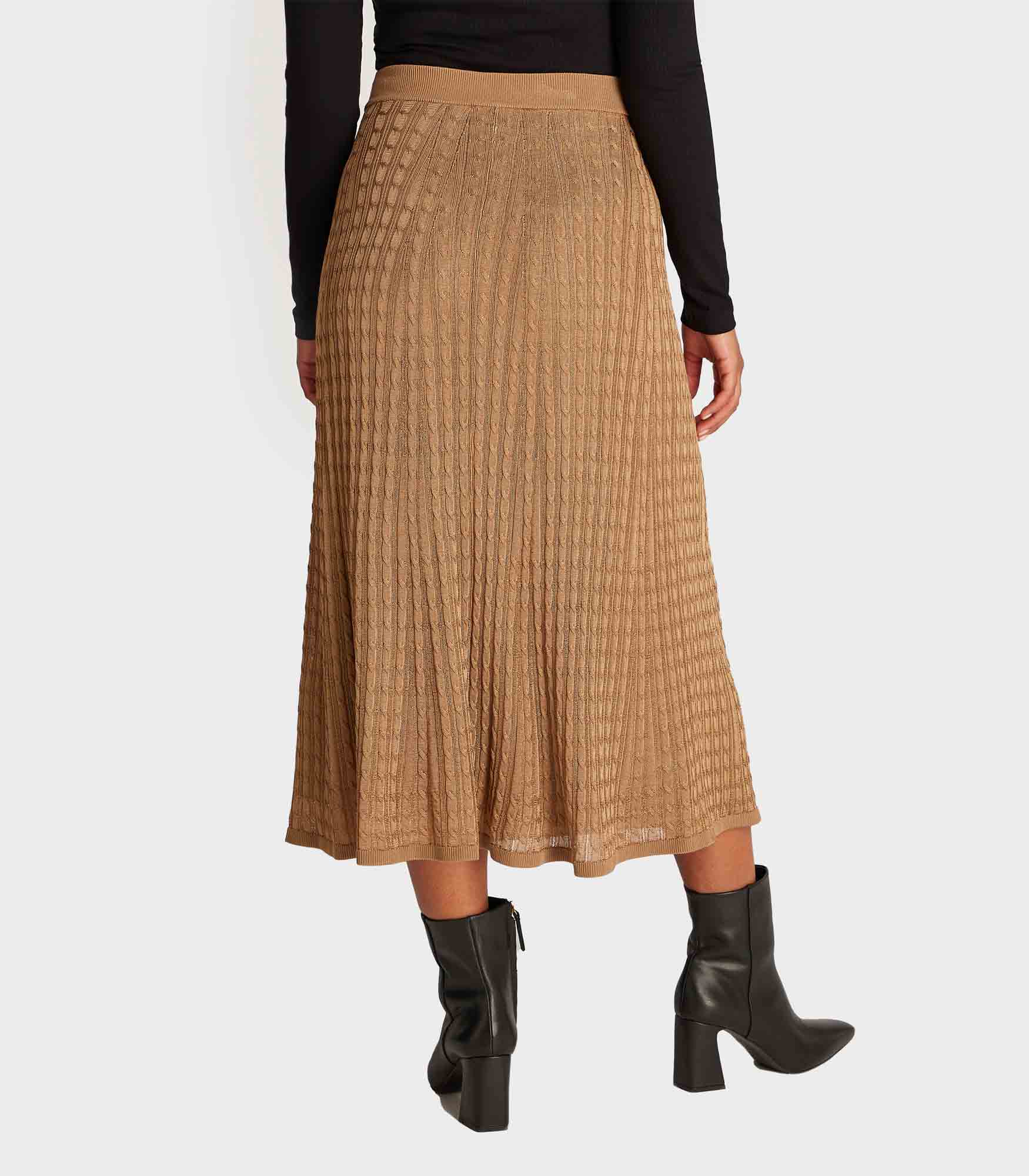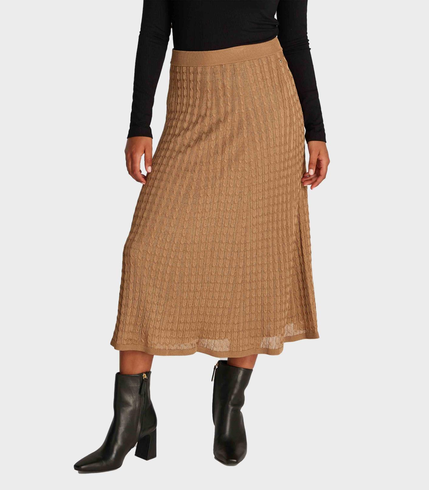 Tommy Hilfiger - RAYON CABLE MIDI FLARED SKIRT , L , Safari Canvas , Style WW0WW44006