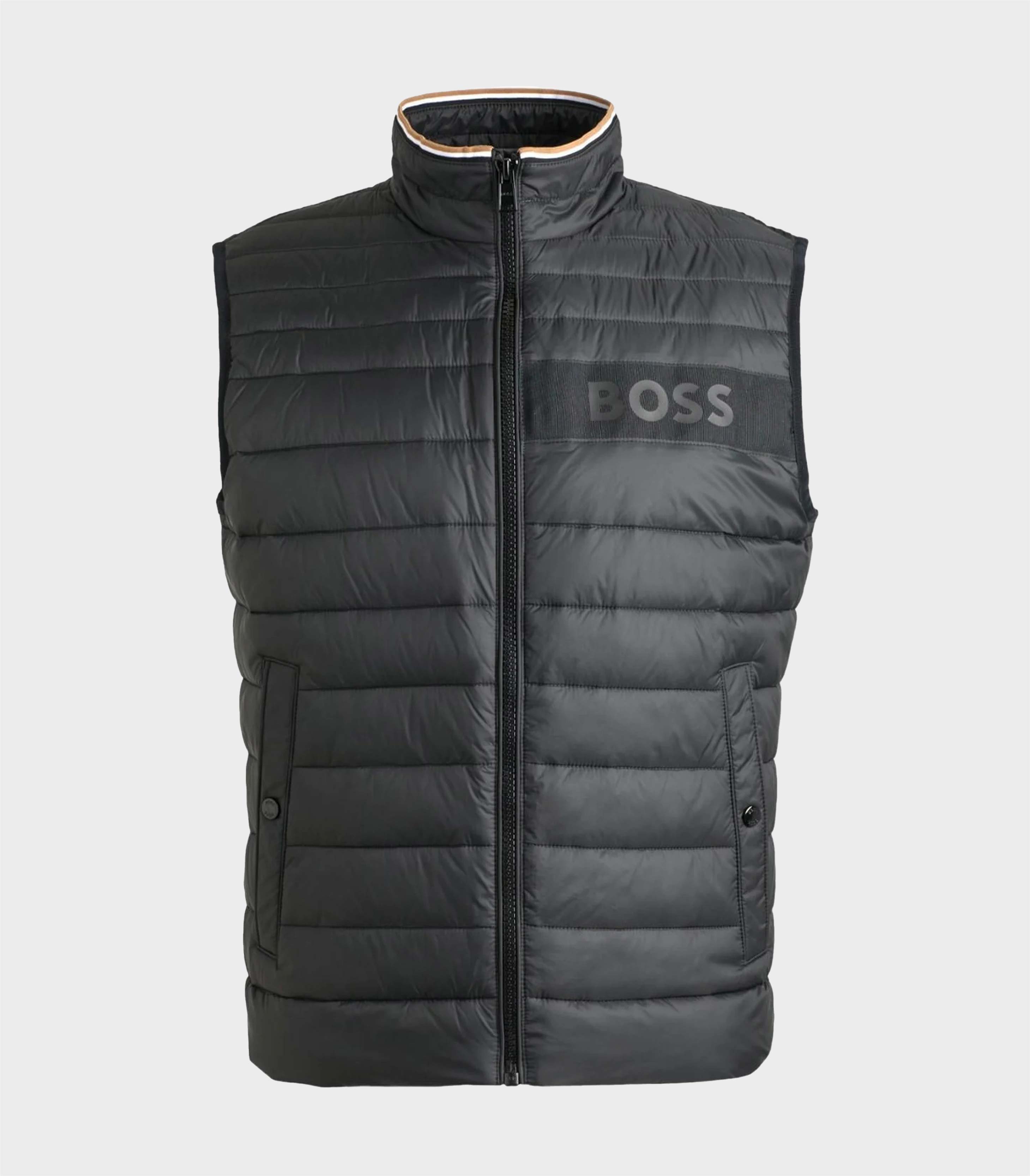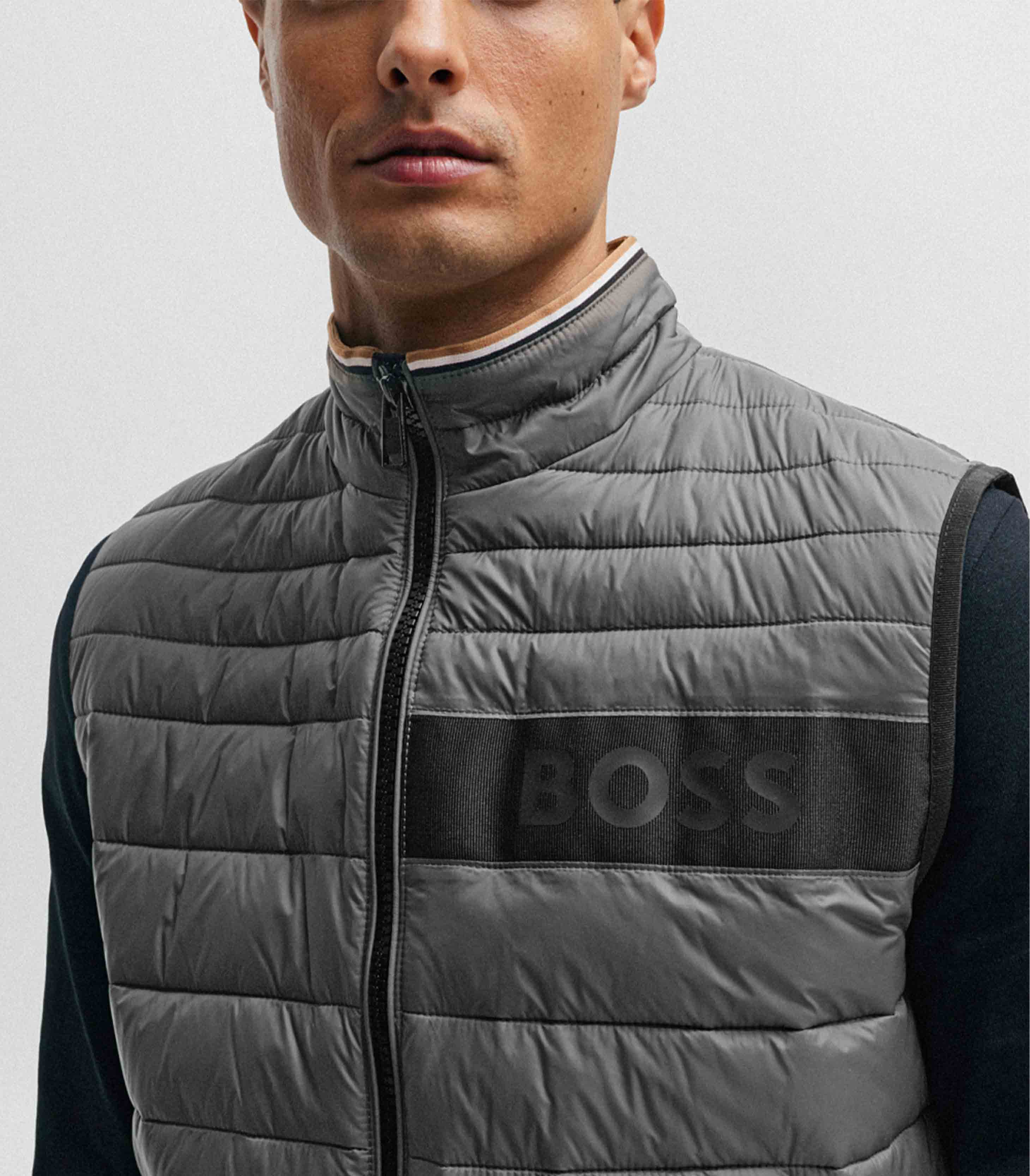 • A water-repellent gilet in a straight fit by BOSS Menswear. Crafted in a combination of materials, this padded layer features a 3D-logo tape detail.