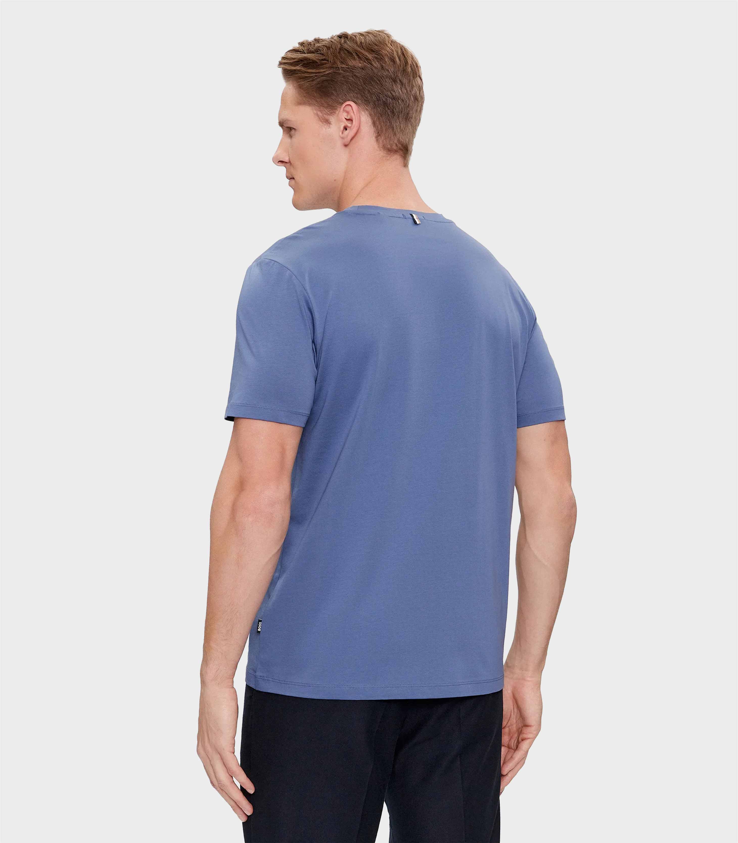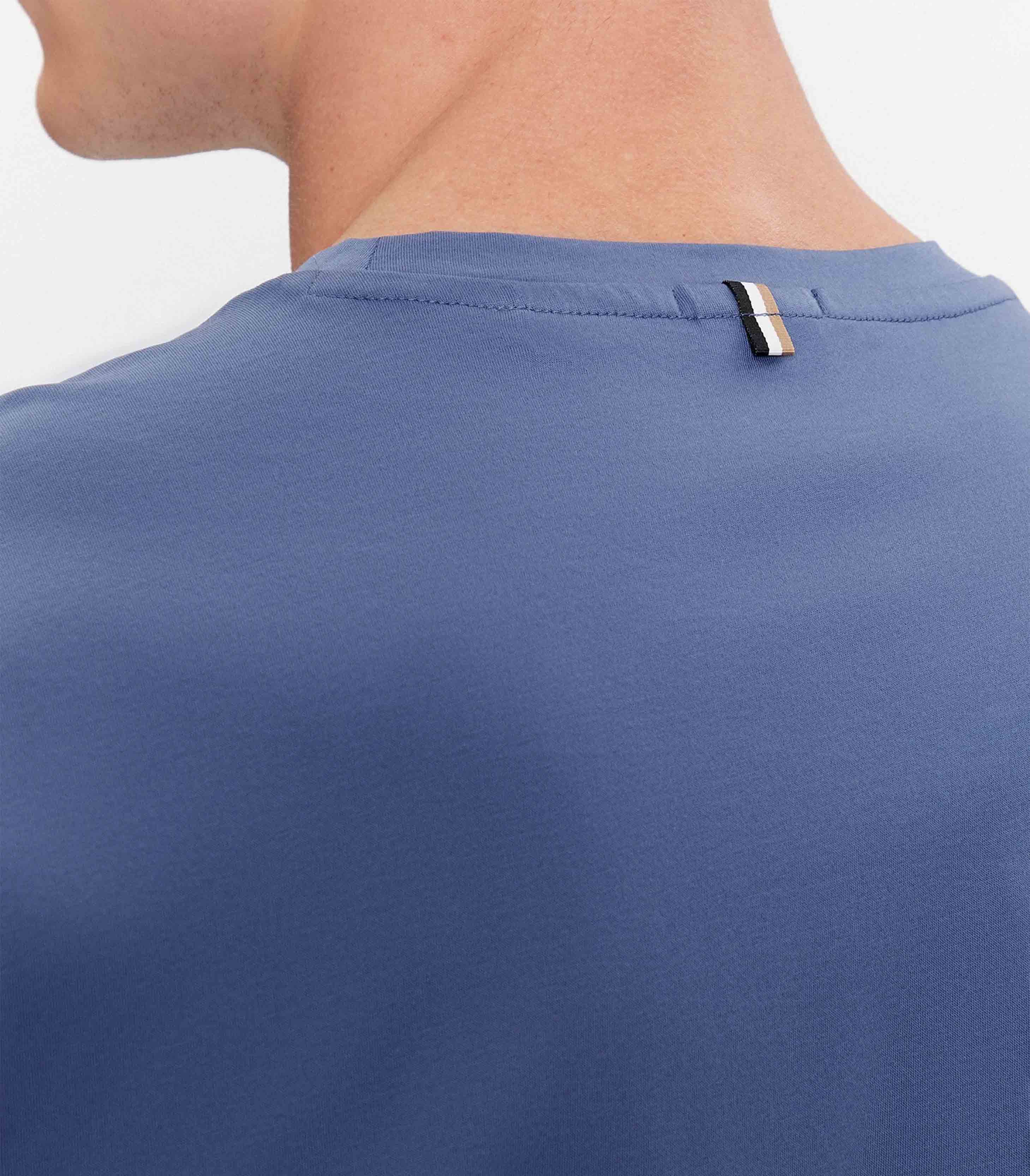 • Cut to a slim fit, this versatile T-shirt by BOSS Menswear is crafted in mercerised fabric and detailed with a signature stripe at the back neck.
