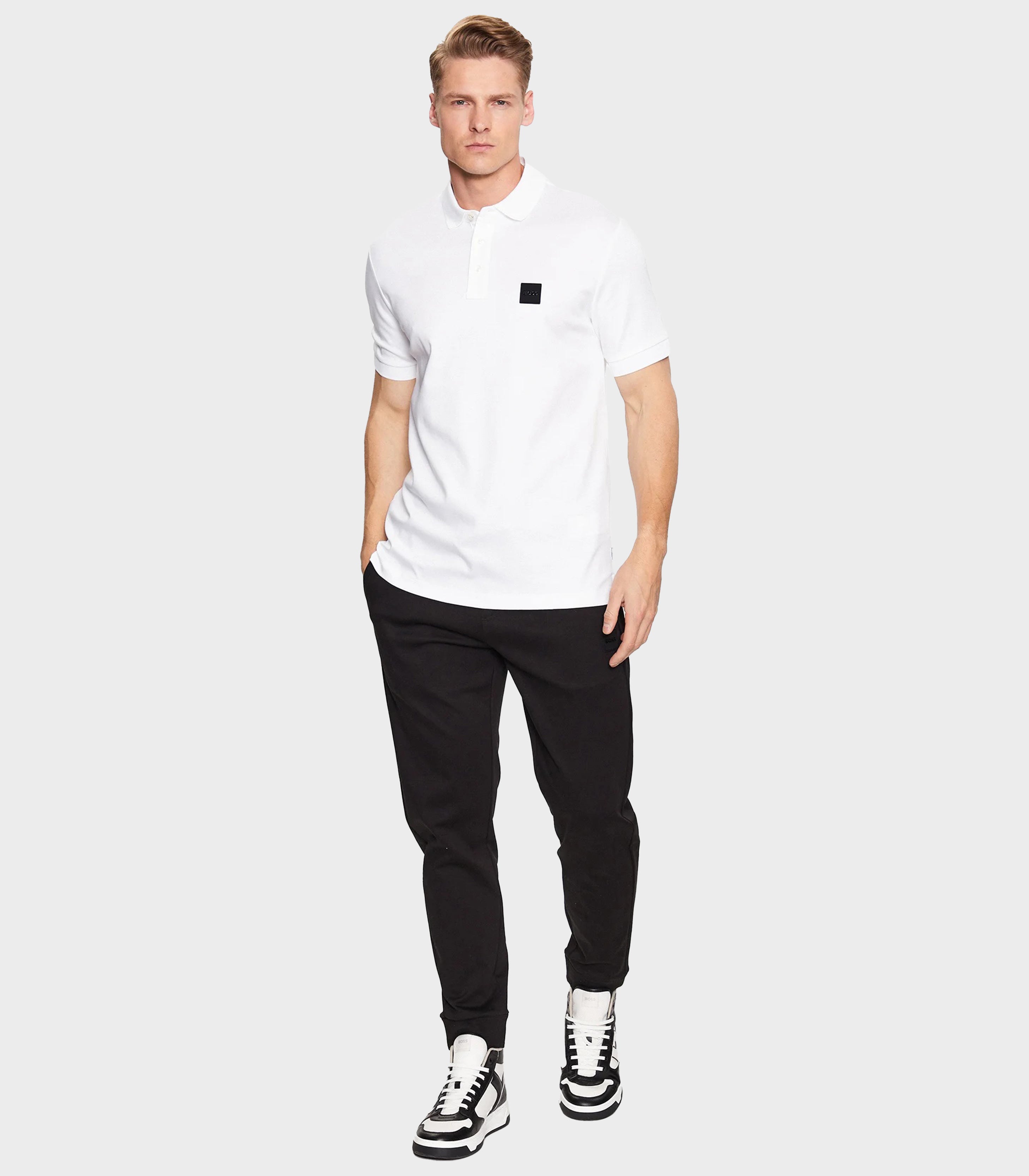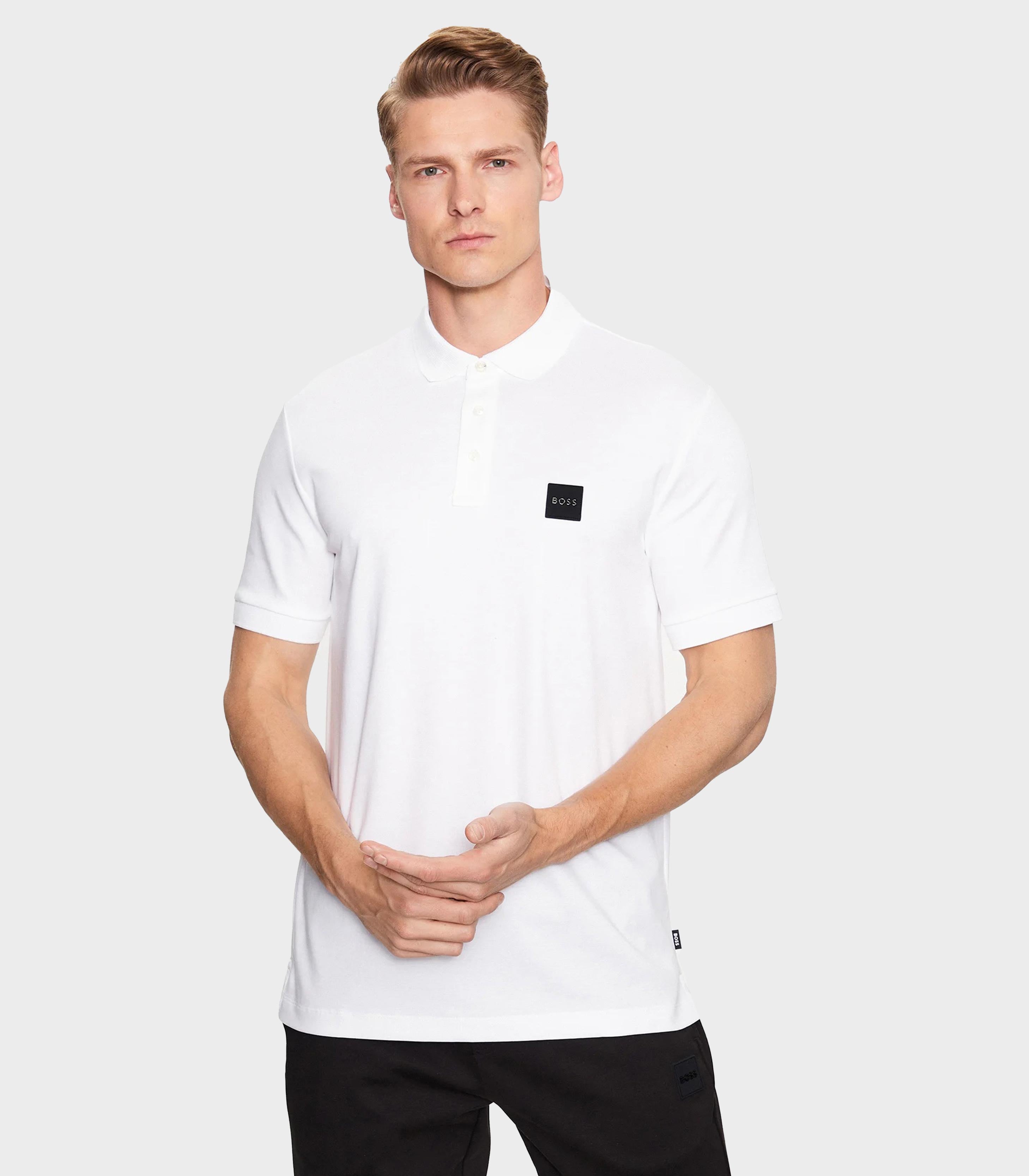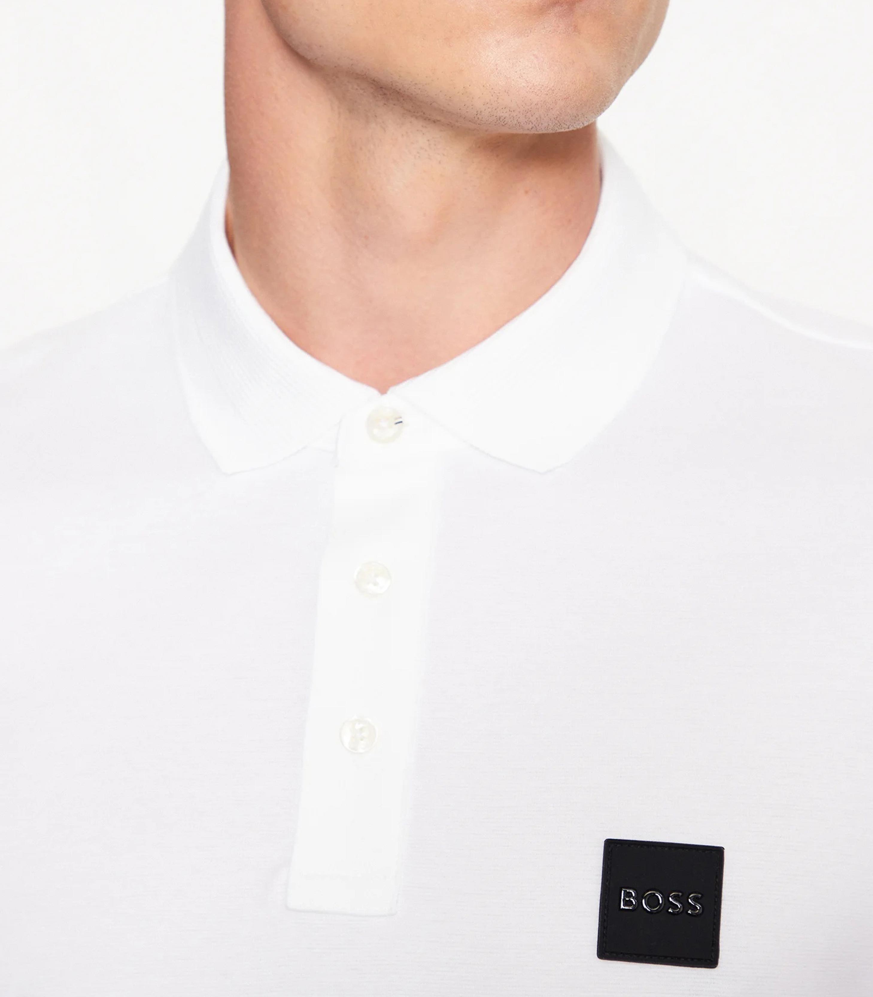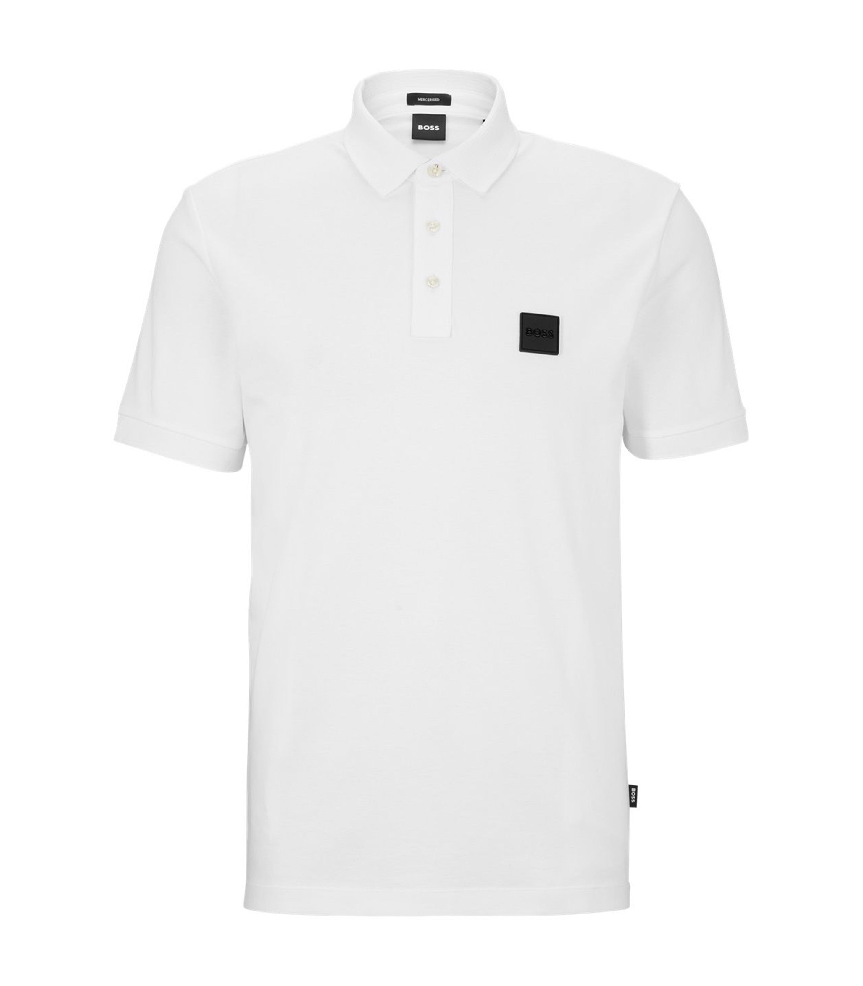 • A signature polo shirt from the BOSS collection. This straight-cut polo features a turn-down collar, button closure, and short sleeves, complete with a logo patch on the chest. Crafted from pure, naturally breathable cotton.