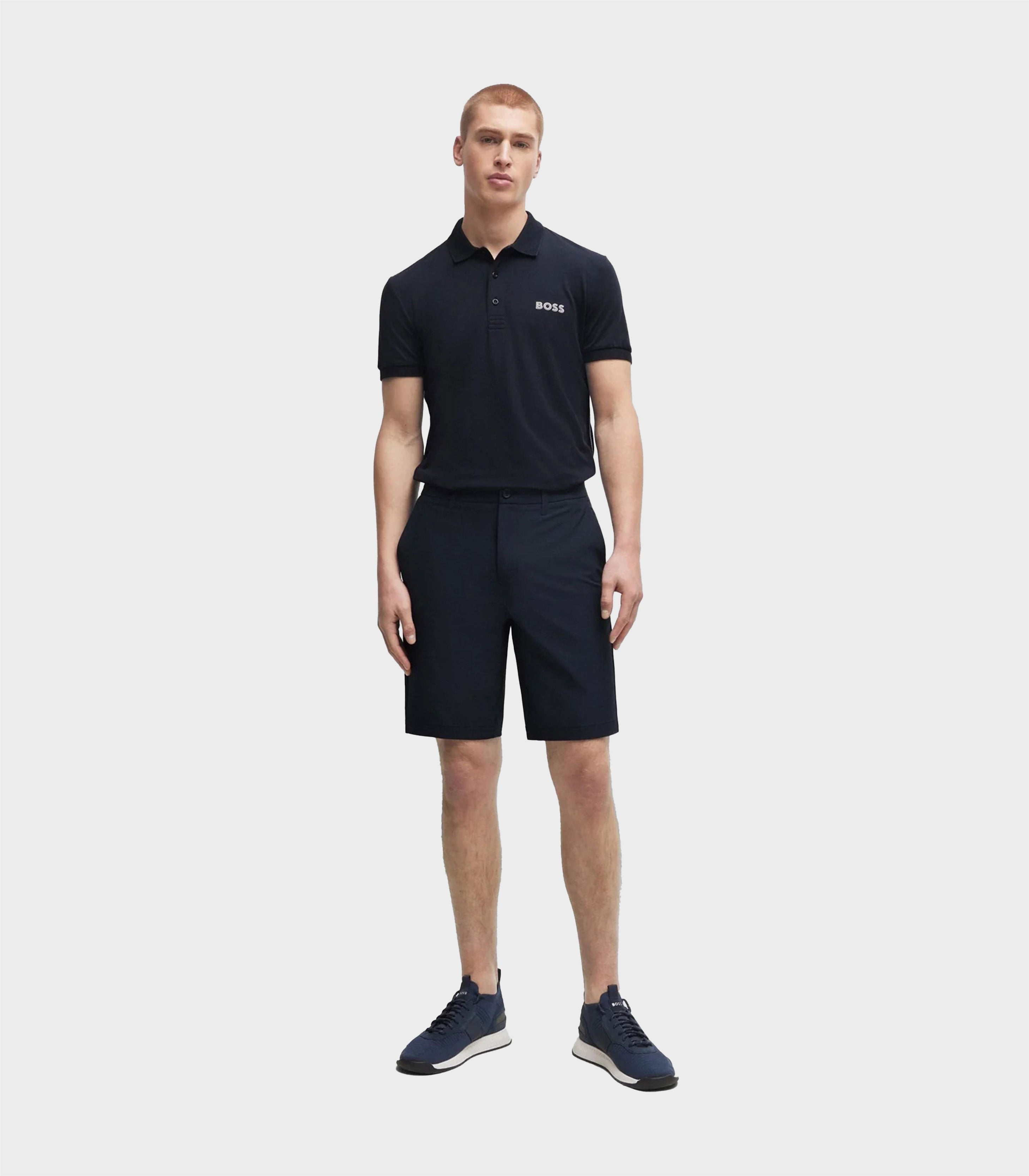 • Sophisticated slim-fit shorts by BOSS, cut from easy-iron four-way stretch fabric for optimum comfort. Featuring a quick-drying, water-repellent finish. Concealed interior drawstrings allow the waistband to be adjusted to your perfect fit. Completed with an integrated card holder and a coin-catcher front pocket for wallet-free commuting.