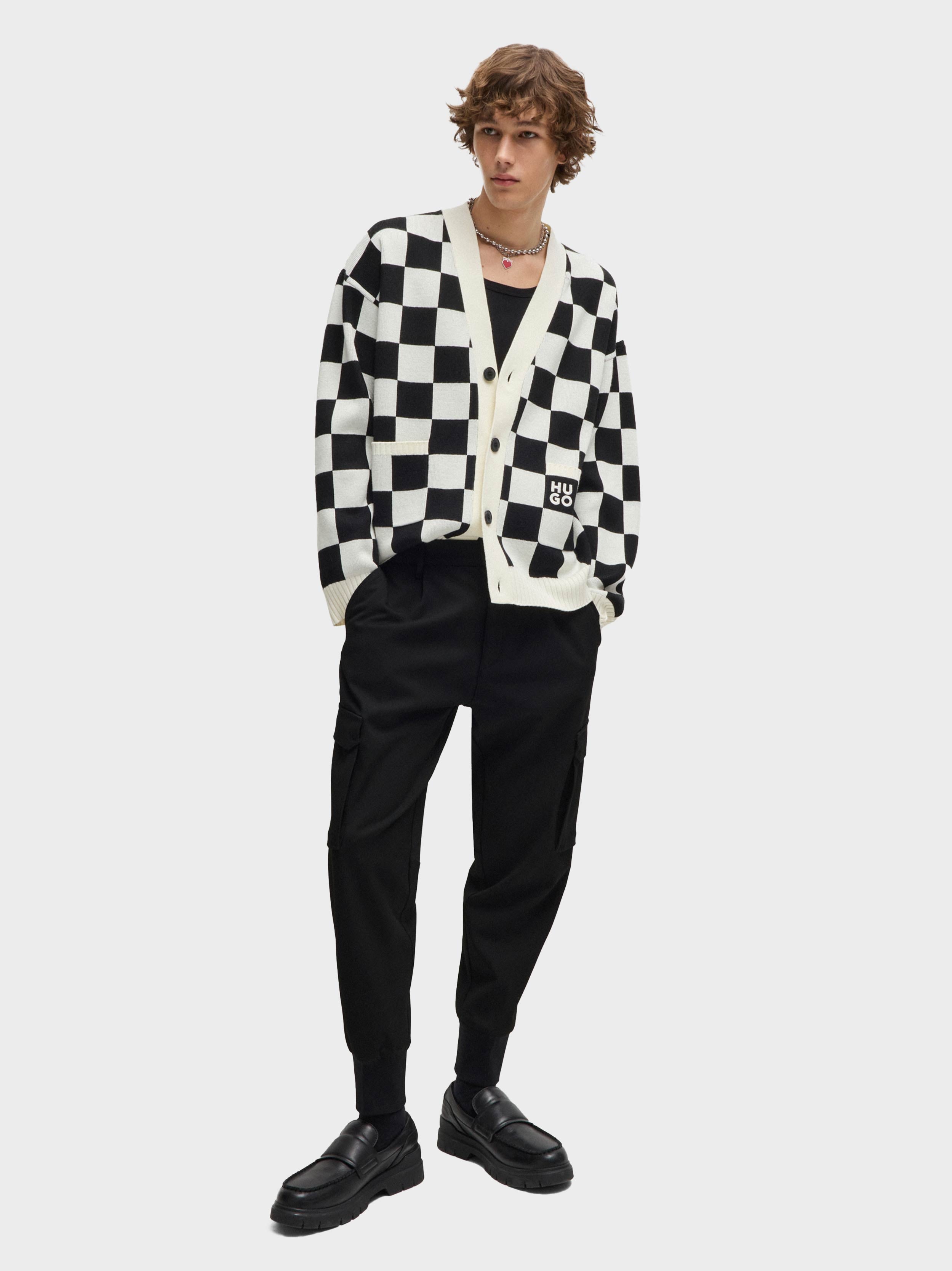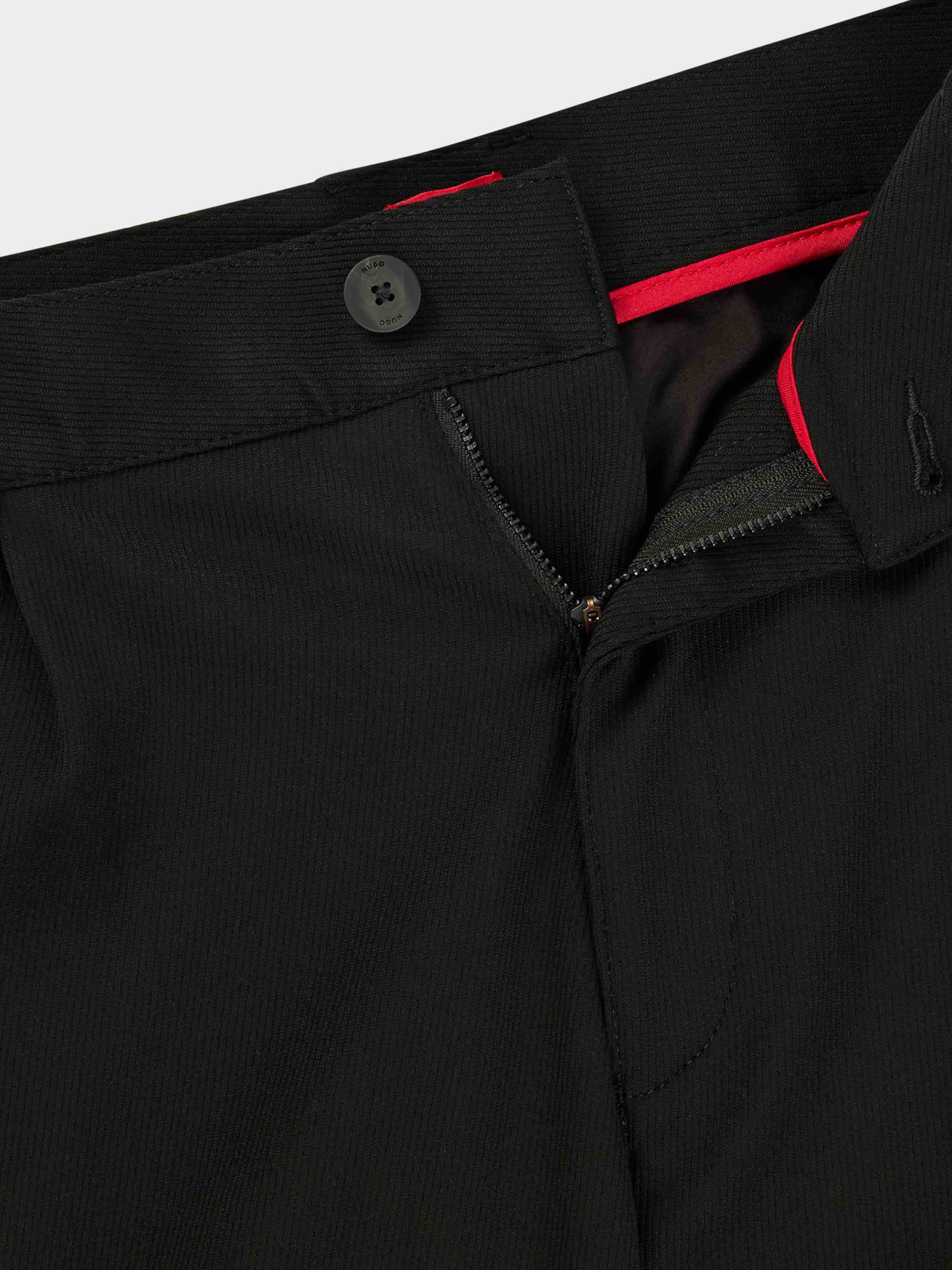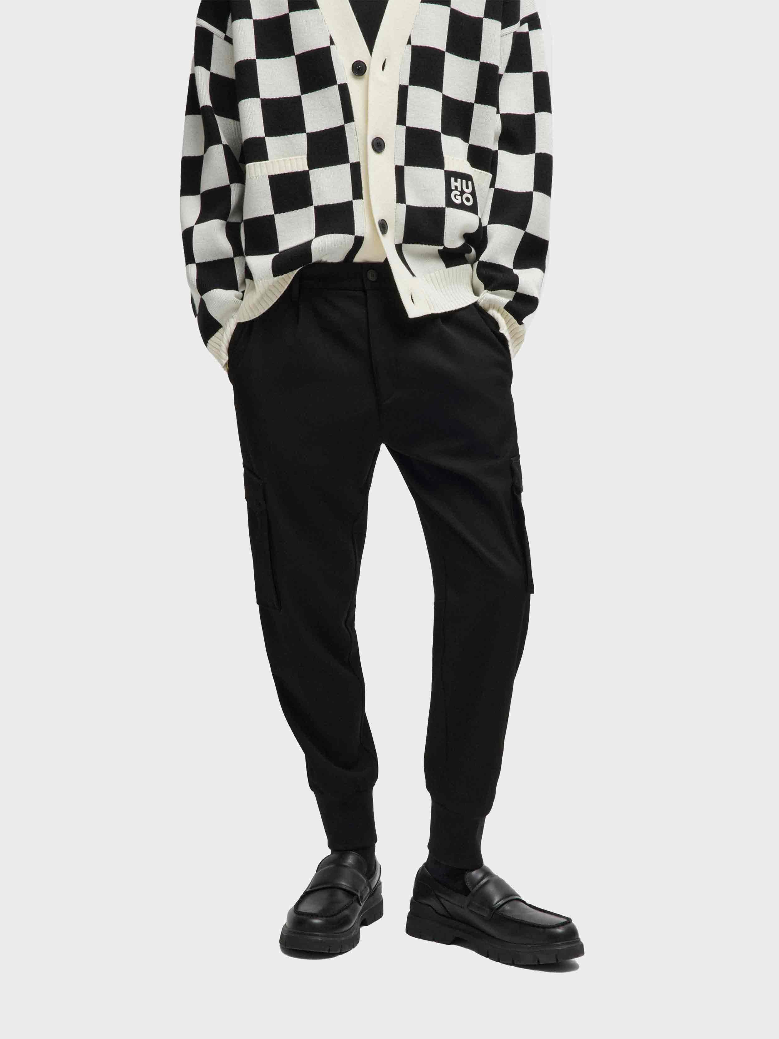 • Trend-driven trousers by HUGO Menswear, cut to a slim fit with a tapered leg in stretch gabardine with pintuck pleats and cargo pockets.