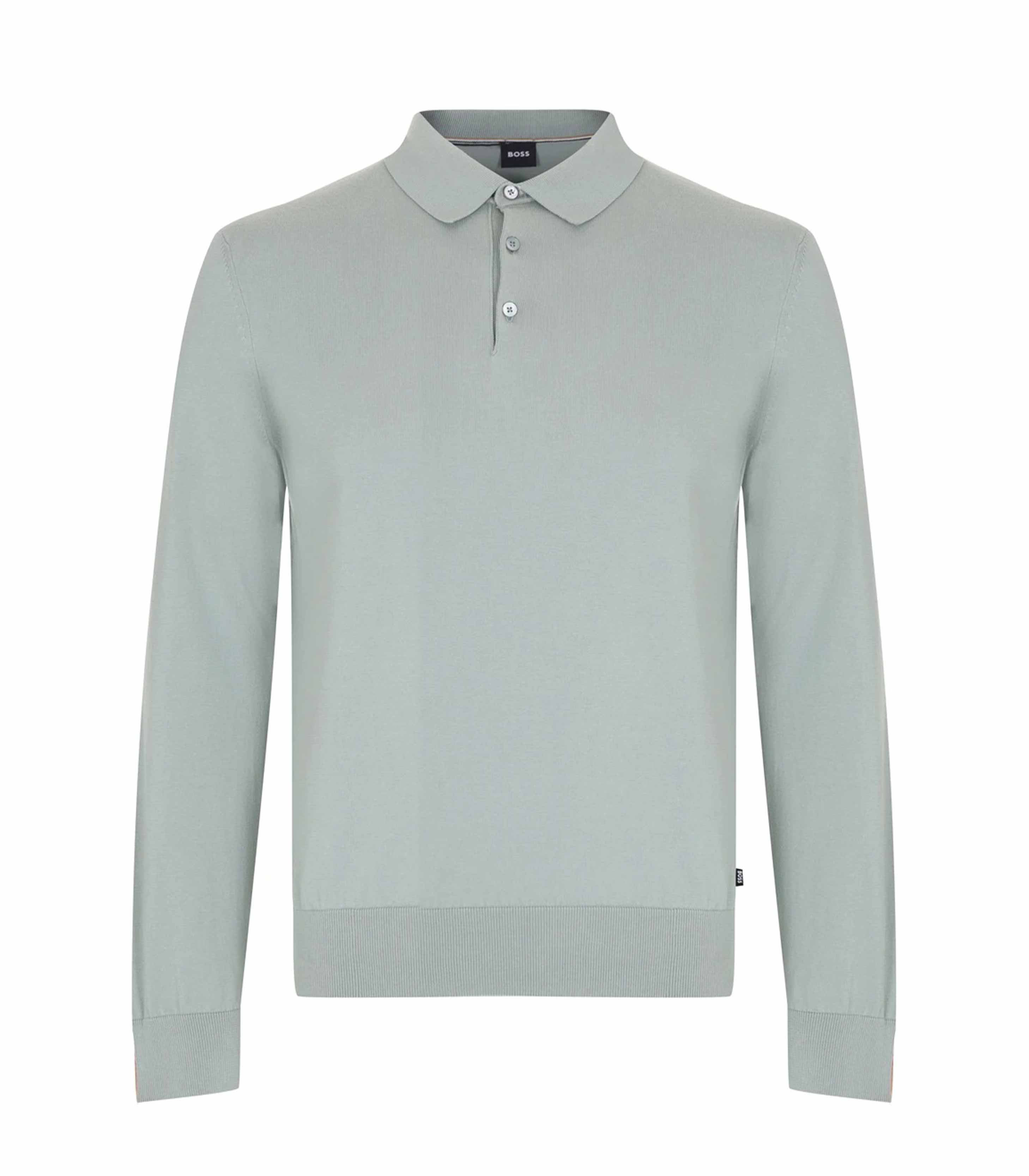 • Create classic casual looks with the polo collar and fine cotton knit of this BOSS Menswear sweater. Cut to a straight fit.