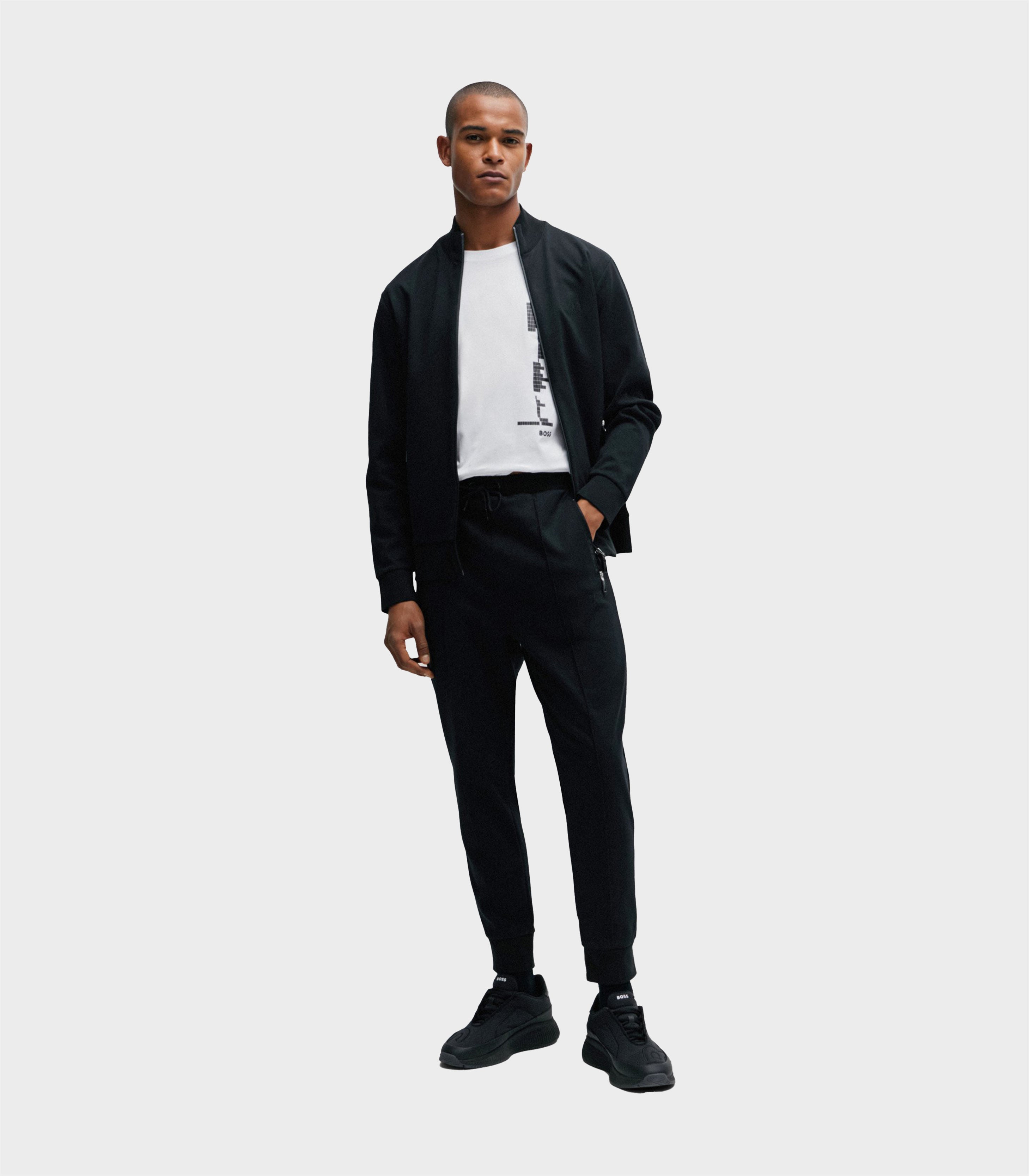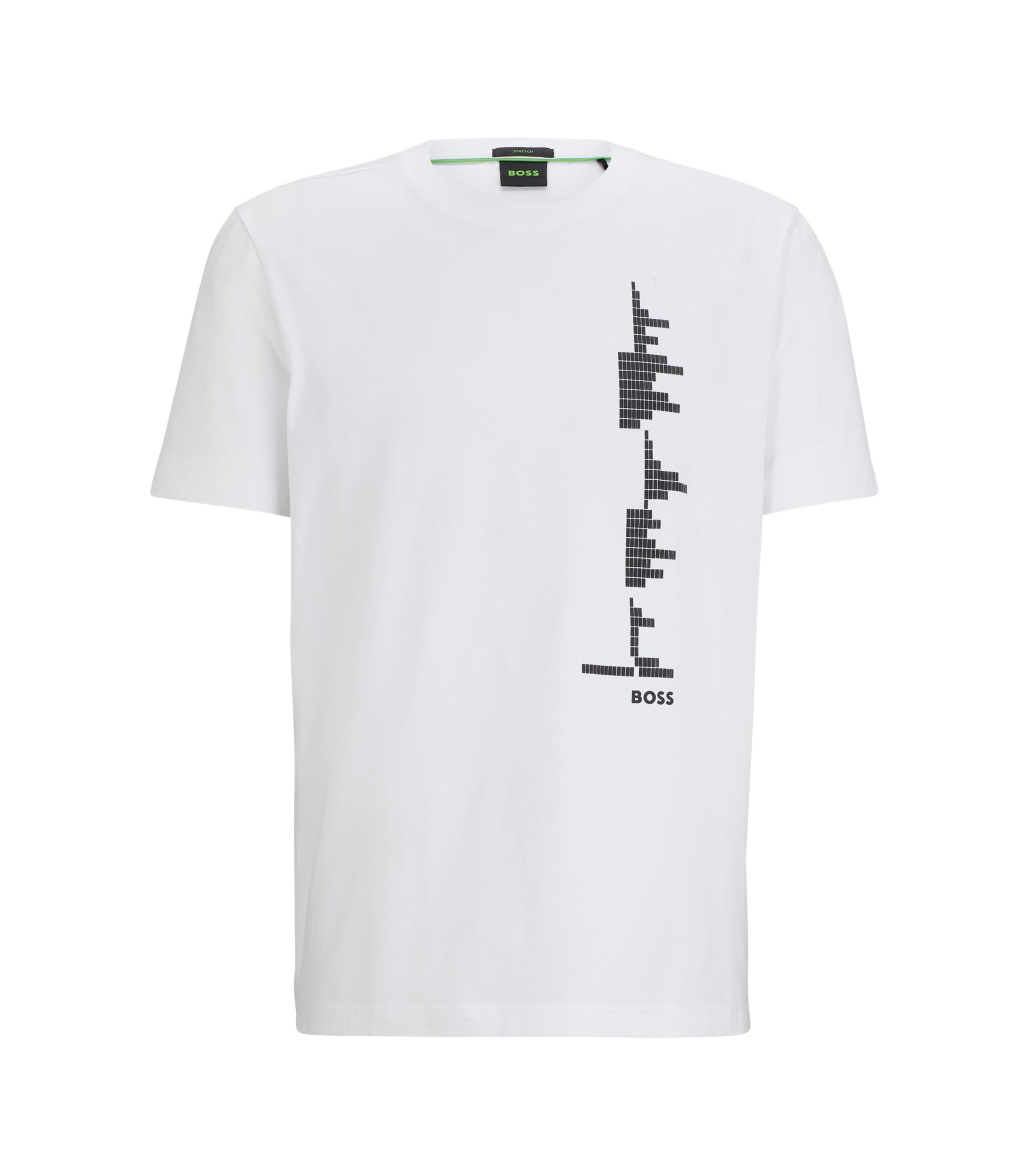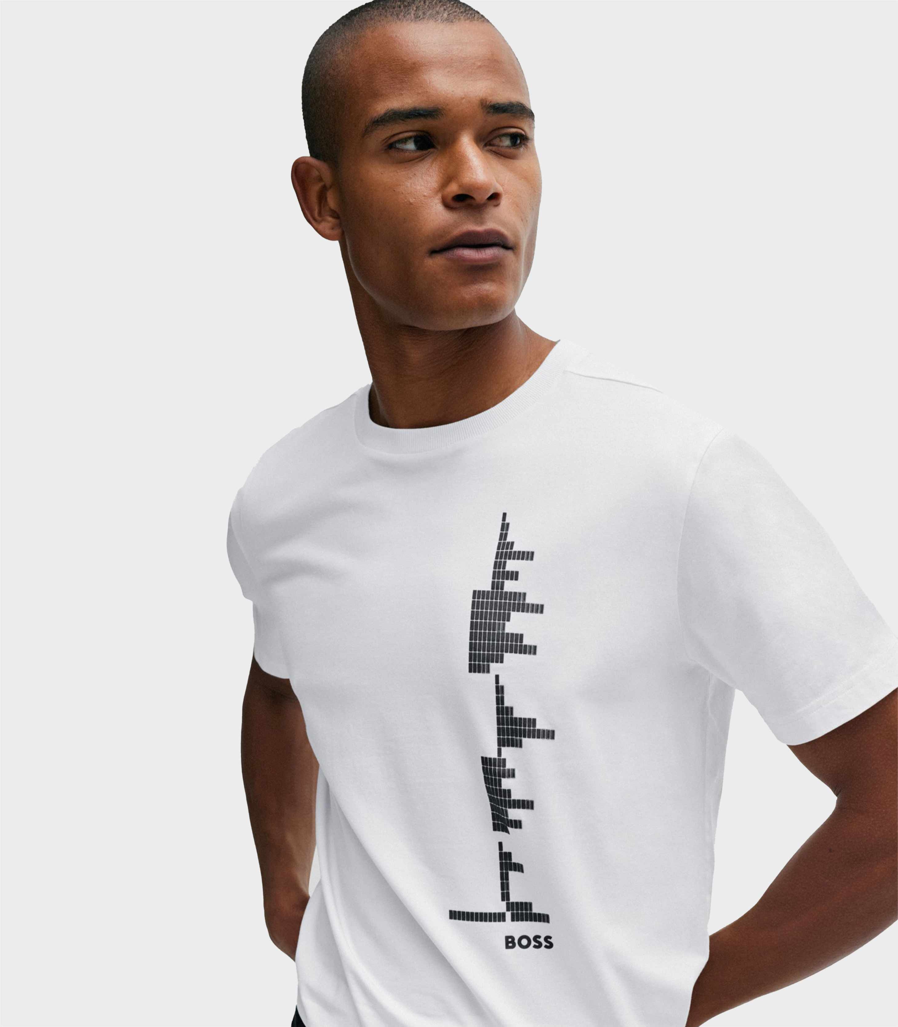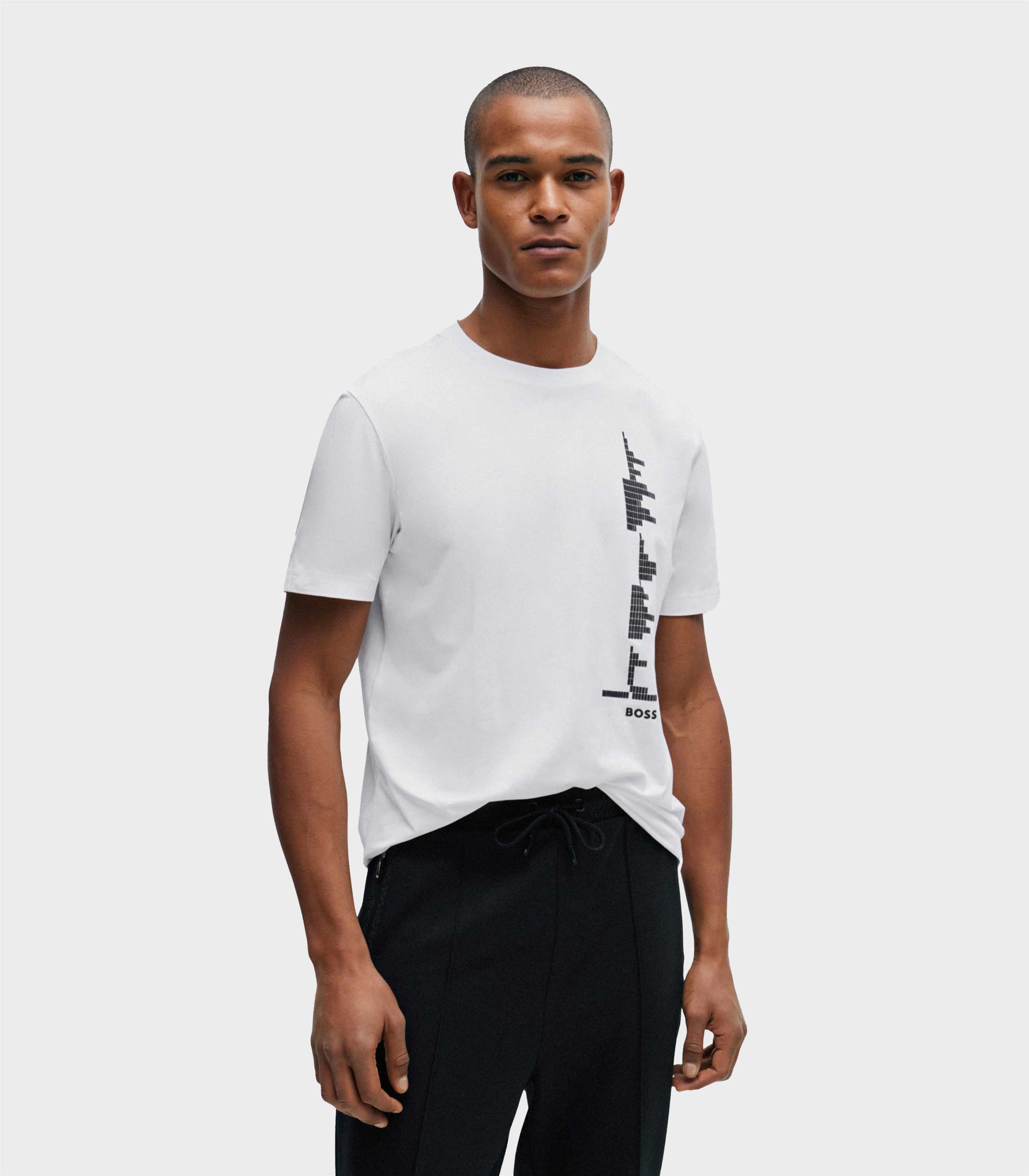 • A regular-fit T-shirt created in stretch-cotton jersey with decorative reflective details within the music-themed seasonal artwork by BOSS Menswear.
