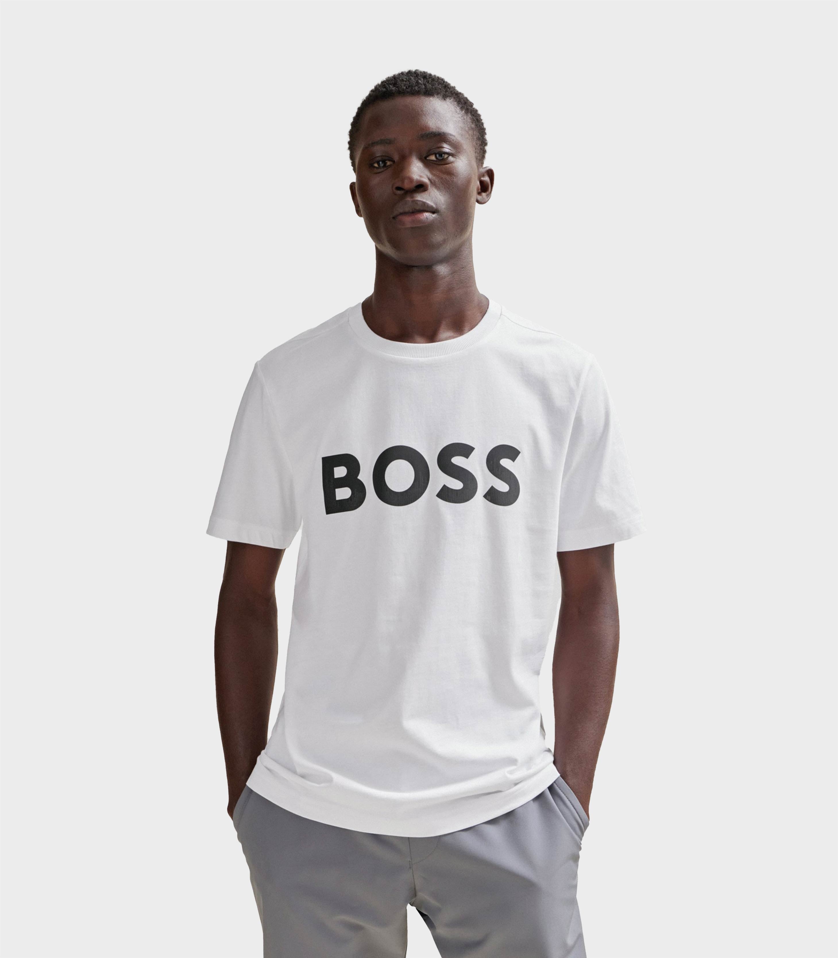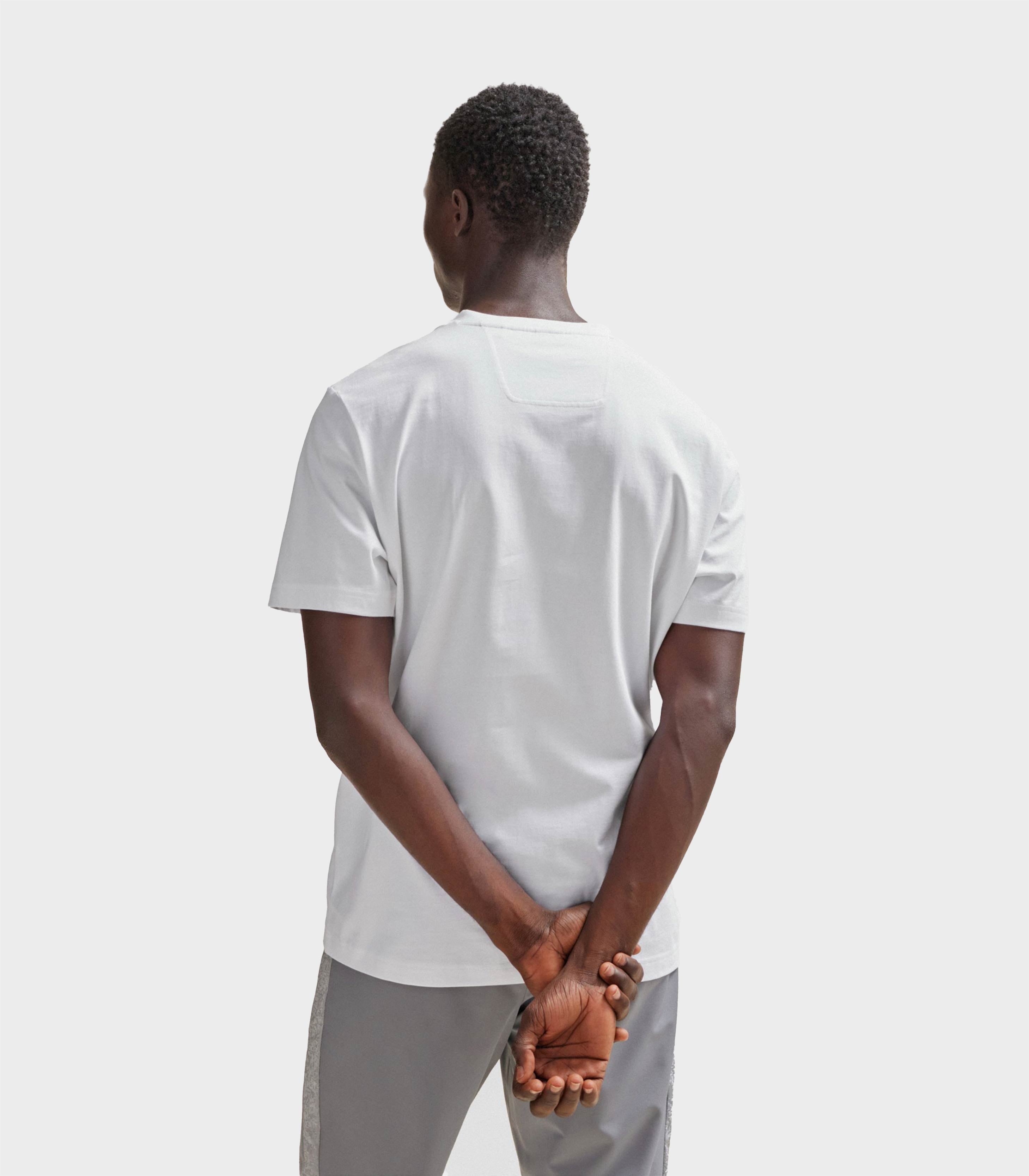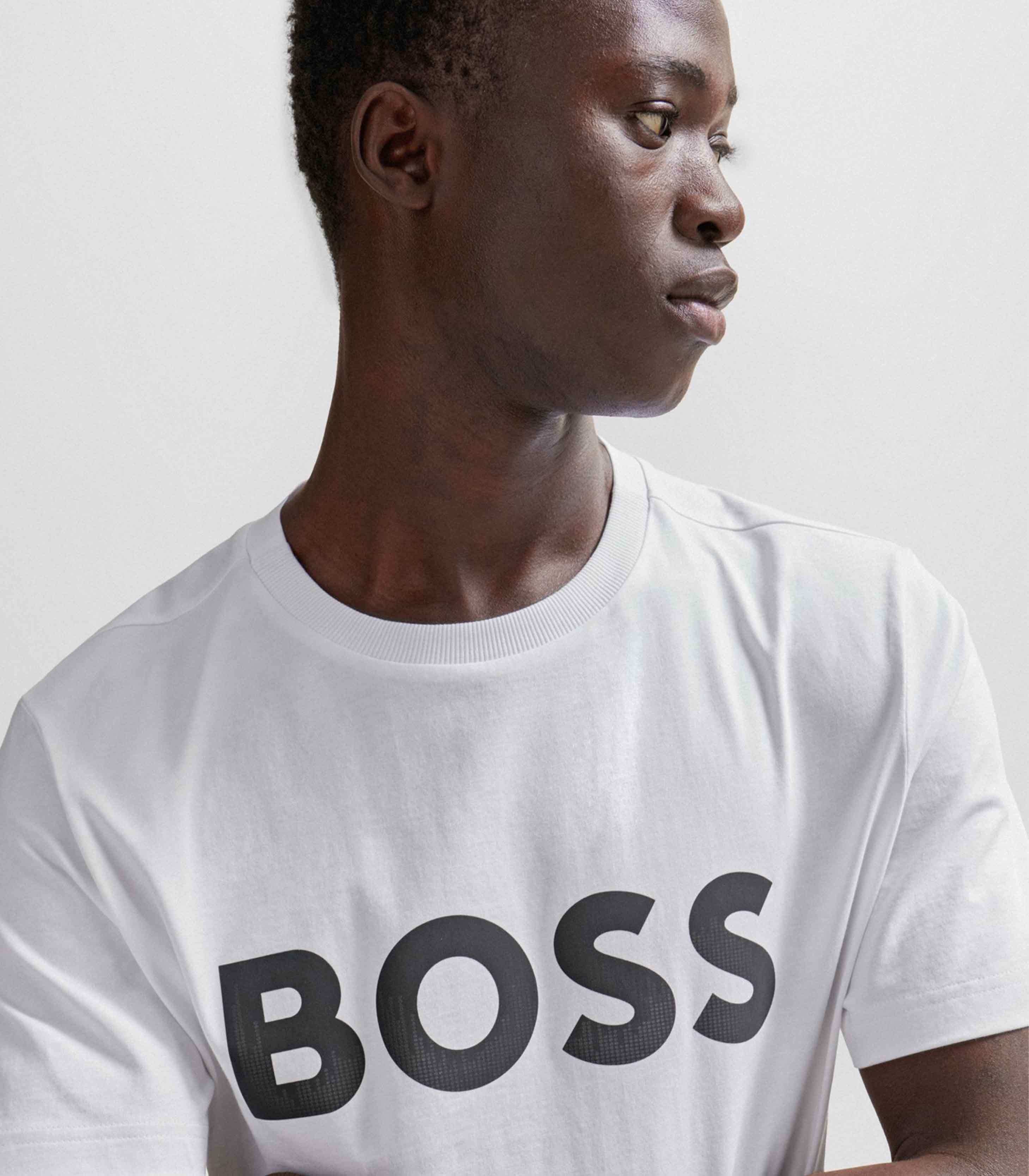 • A short-sleeved T-shirt cut to a regular fit in soft jersey with a decorative reflective hologram logo on the chest by BOSS Menswear.
