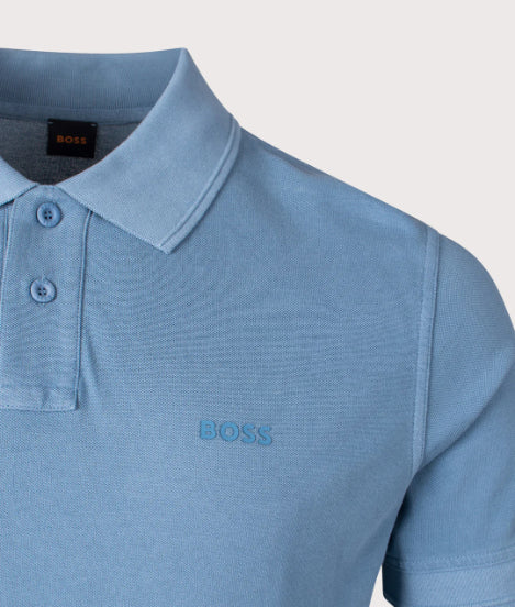 • fine piqué quality / washed, garment dyed look / structure stripe at collar and cuff flatknit / 7 layer HD BOSS print on left chest, 2-tones darker than body