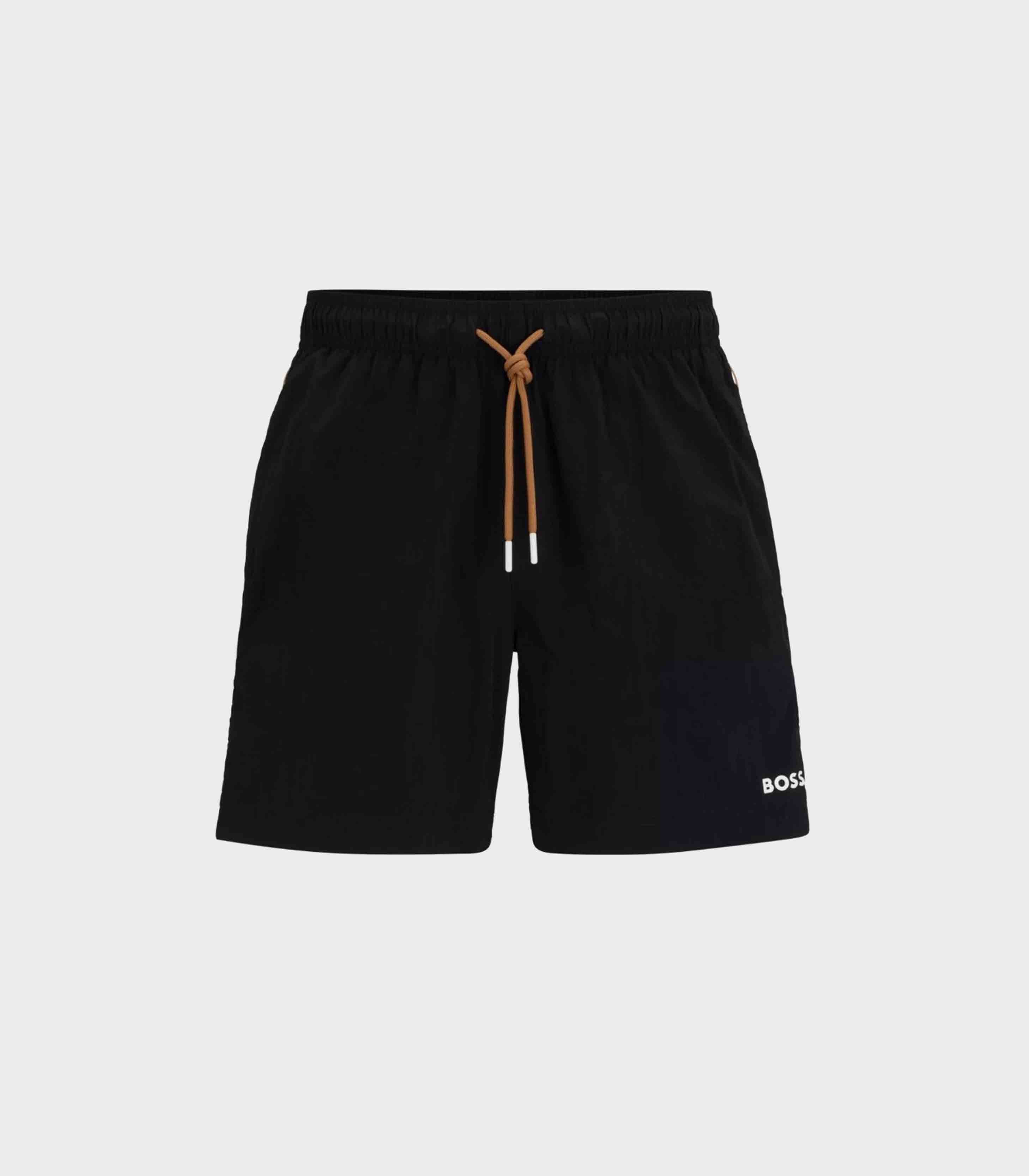 • Swimsuit from the BOSS collection. Model made of patterned fabric.