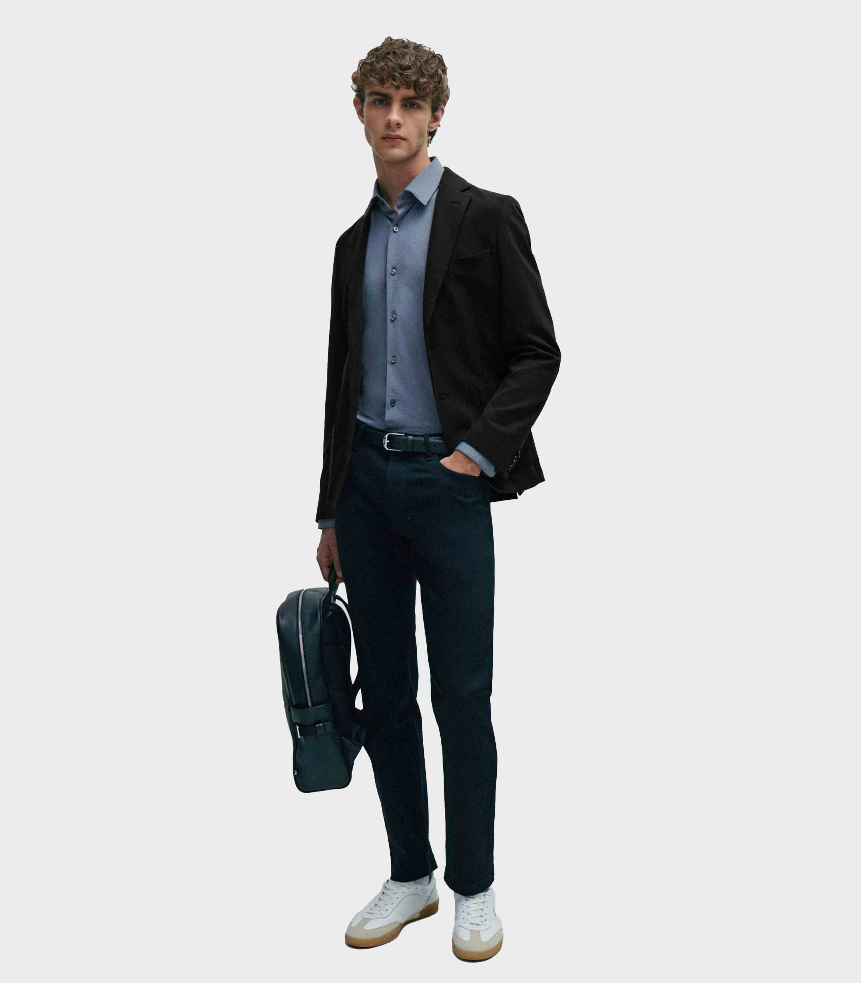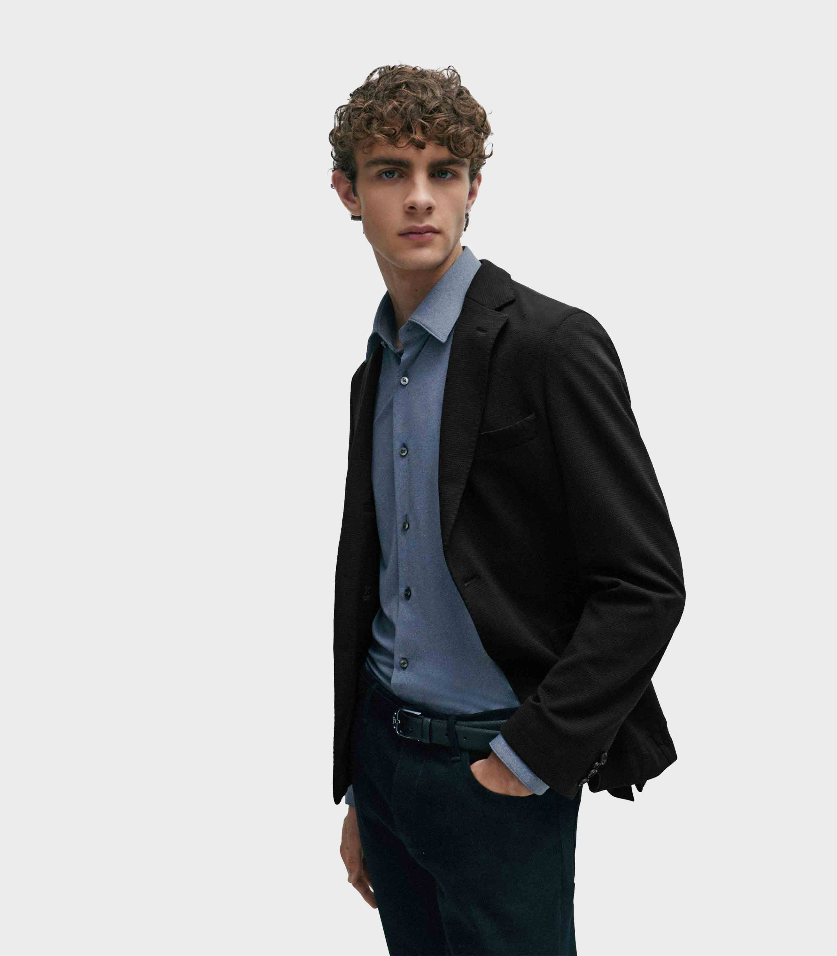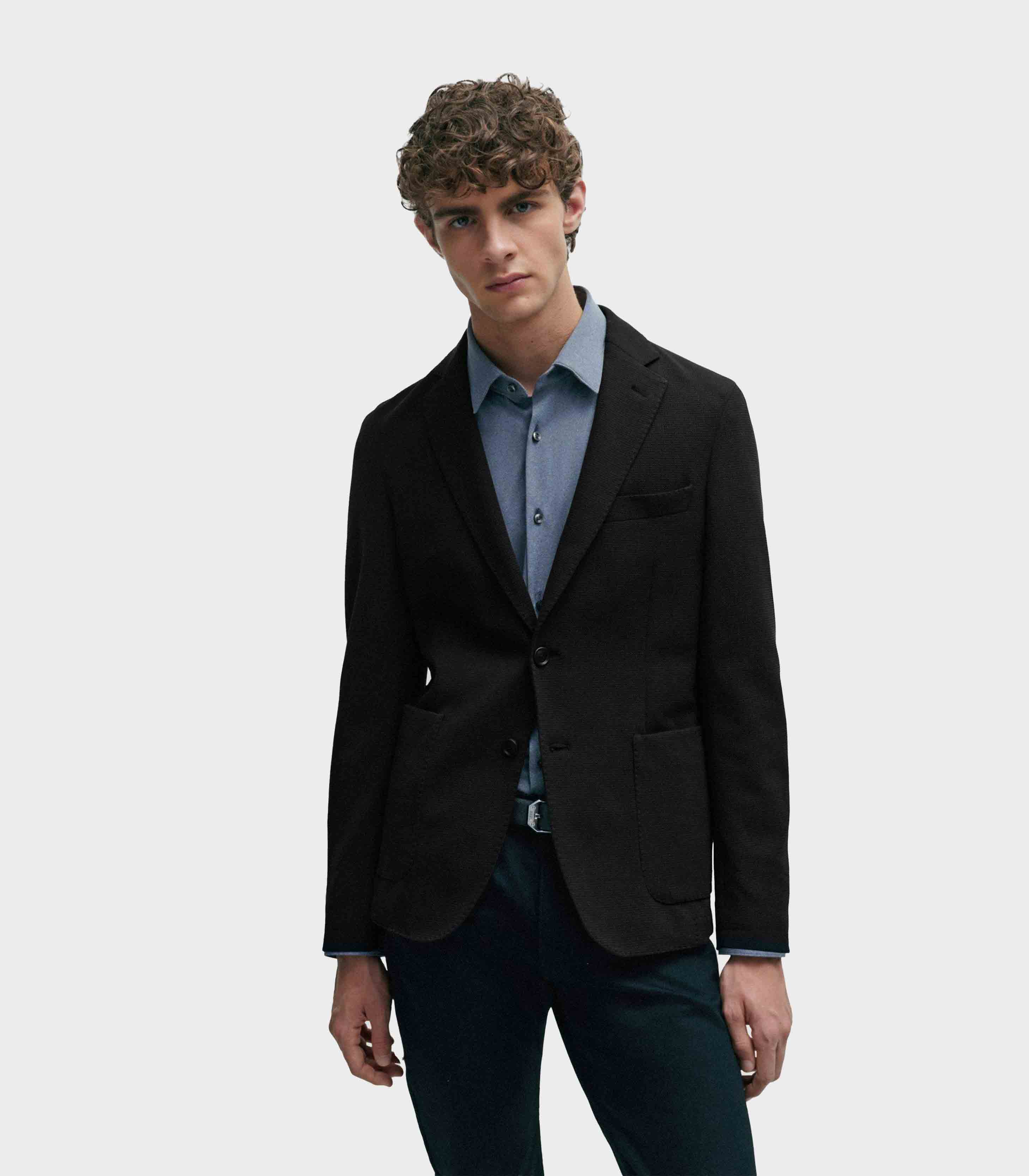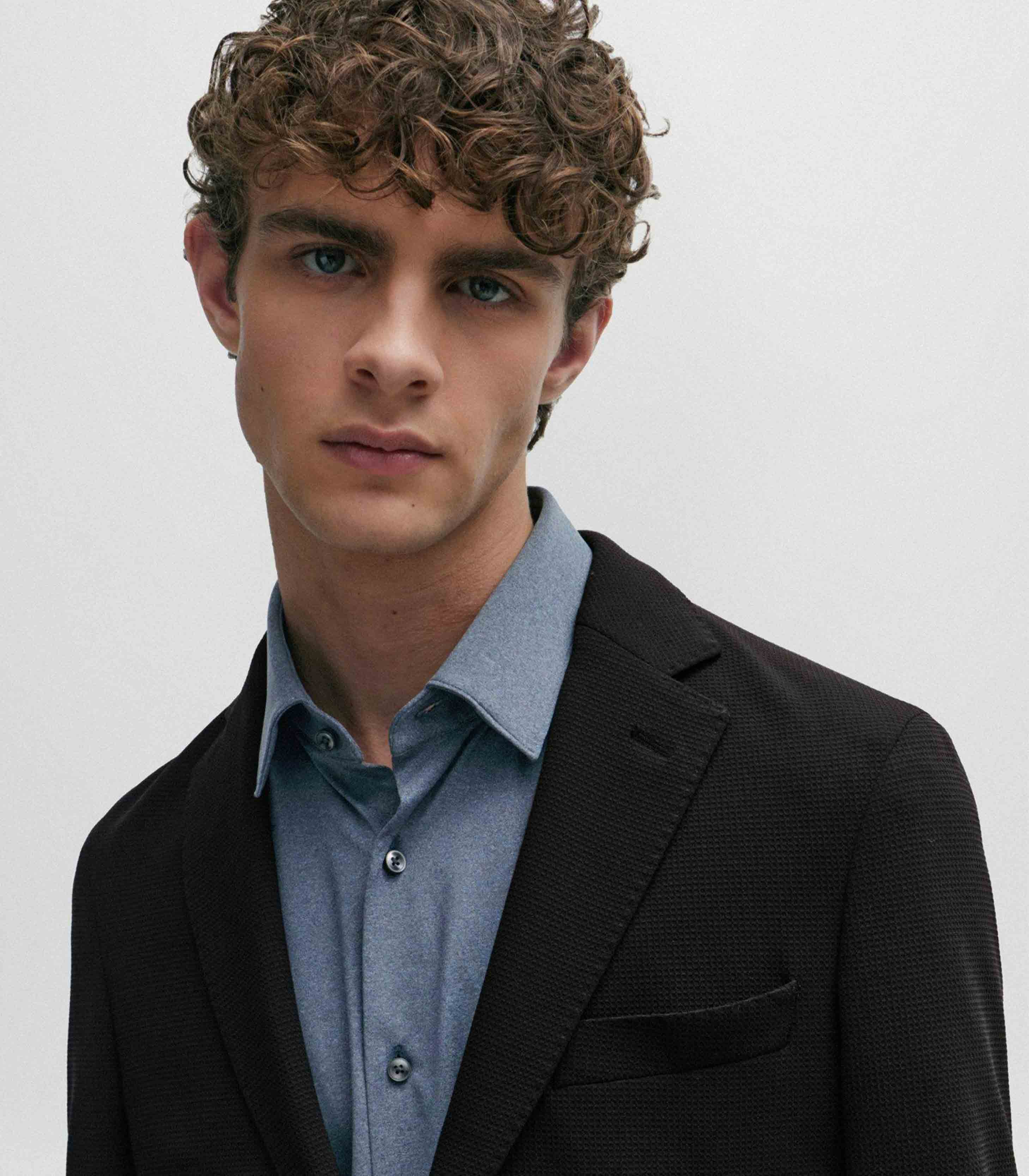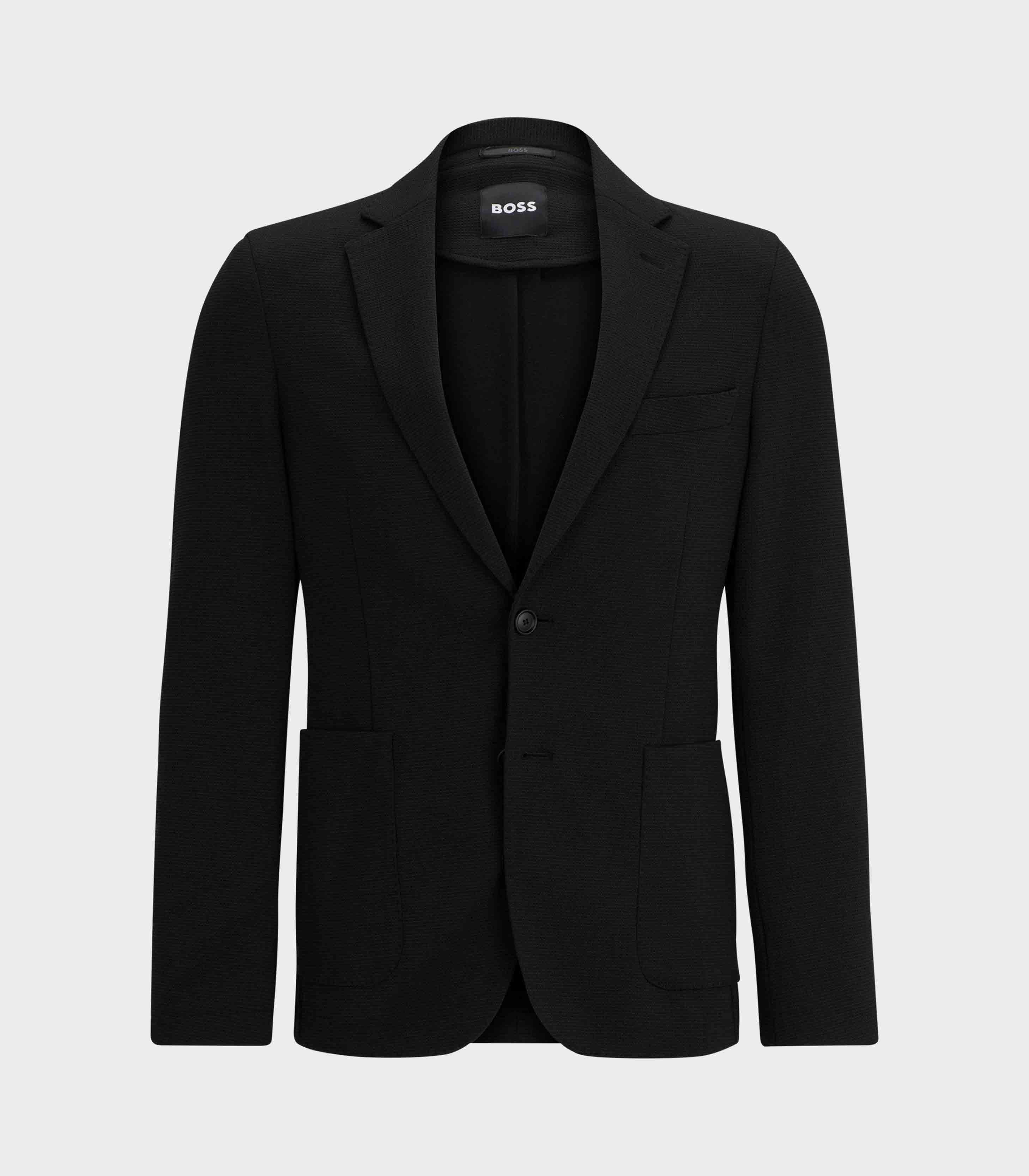 • An unlined, tailored jacket from BOSS Men, crafted from a micro-patterned material with technical stretch properties.