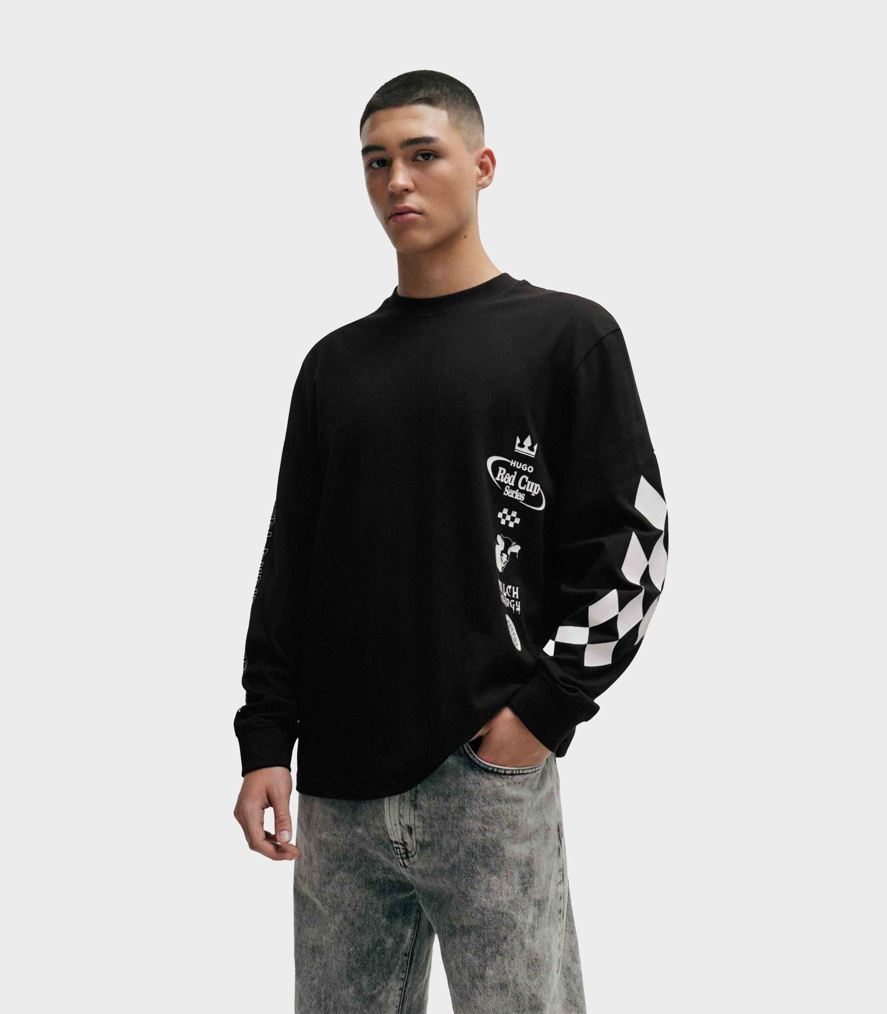 • This longsleeve from the HUGO collection is made of printed knit fabric. This model is made of exceptionally comfortable cotton material.