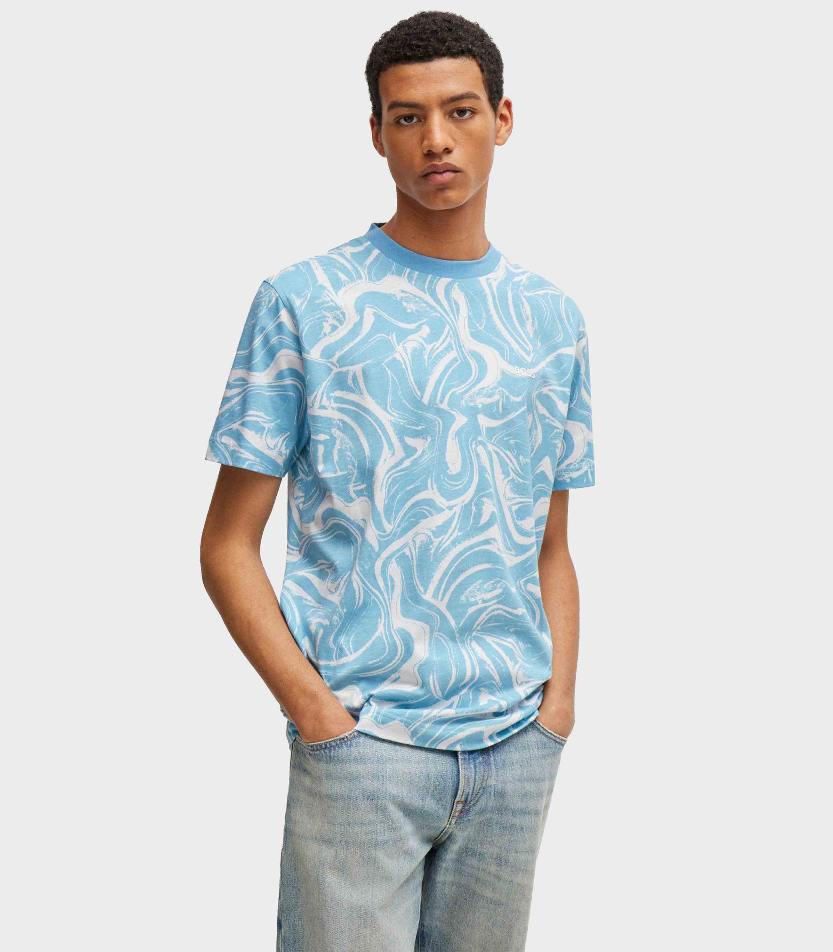 • BOSS - Cotton-Jersey Relaxed-Fit T-Shirt With Wave Print