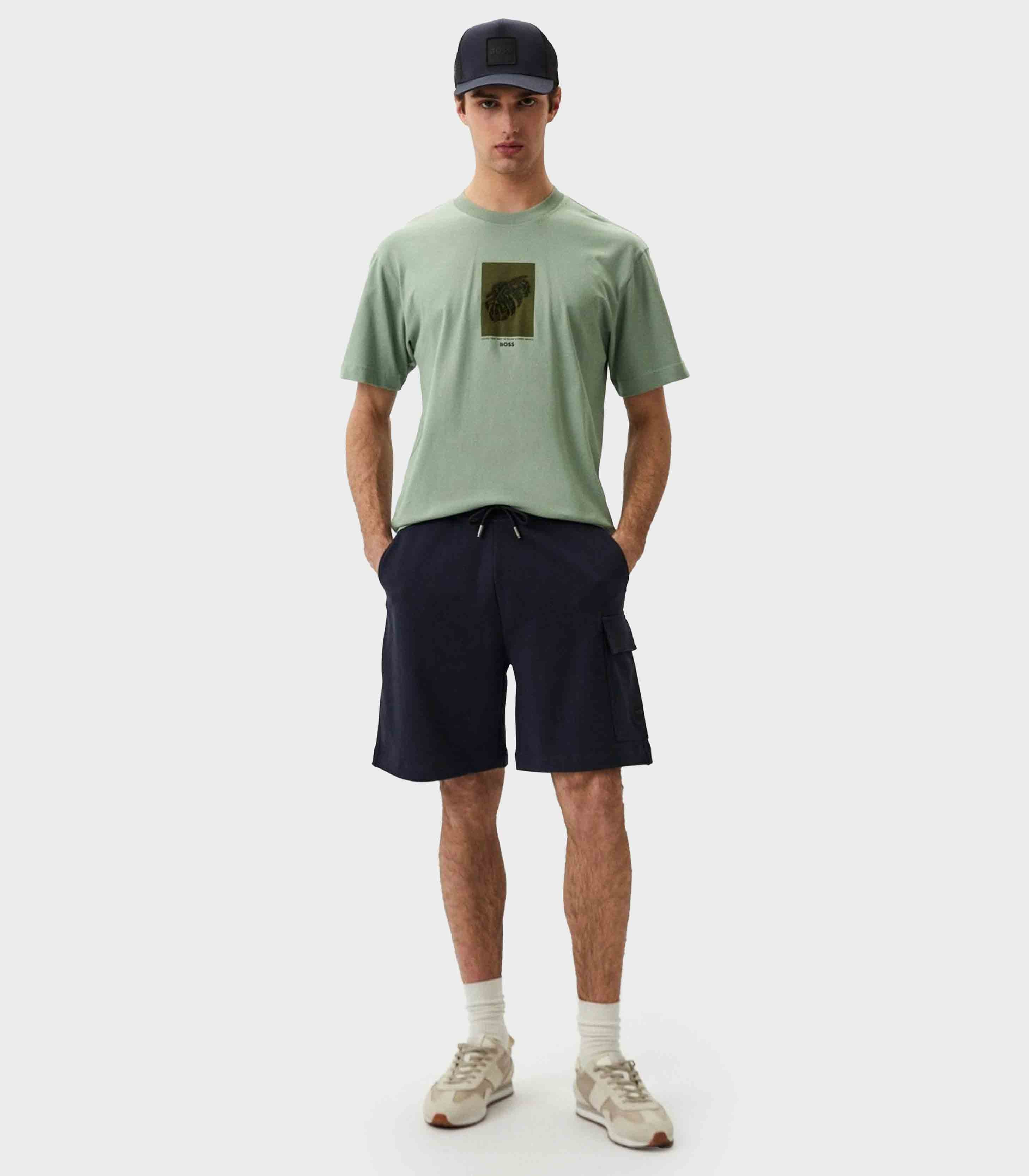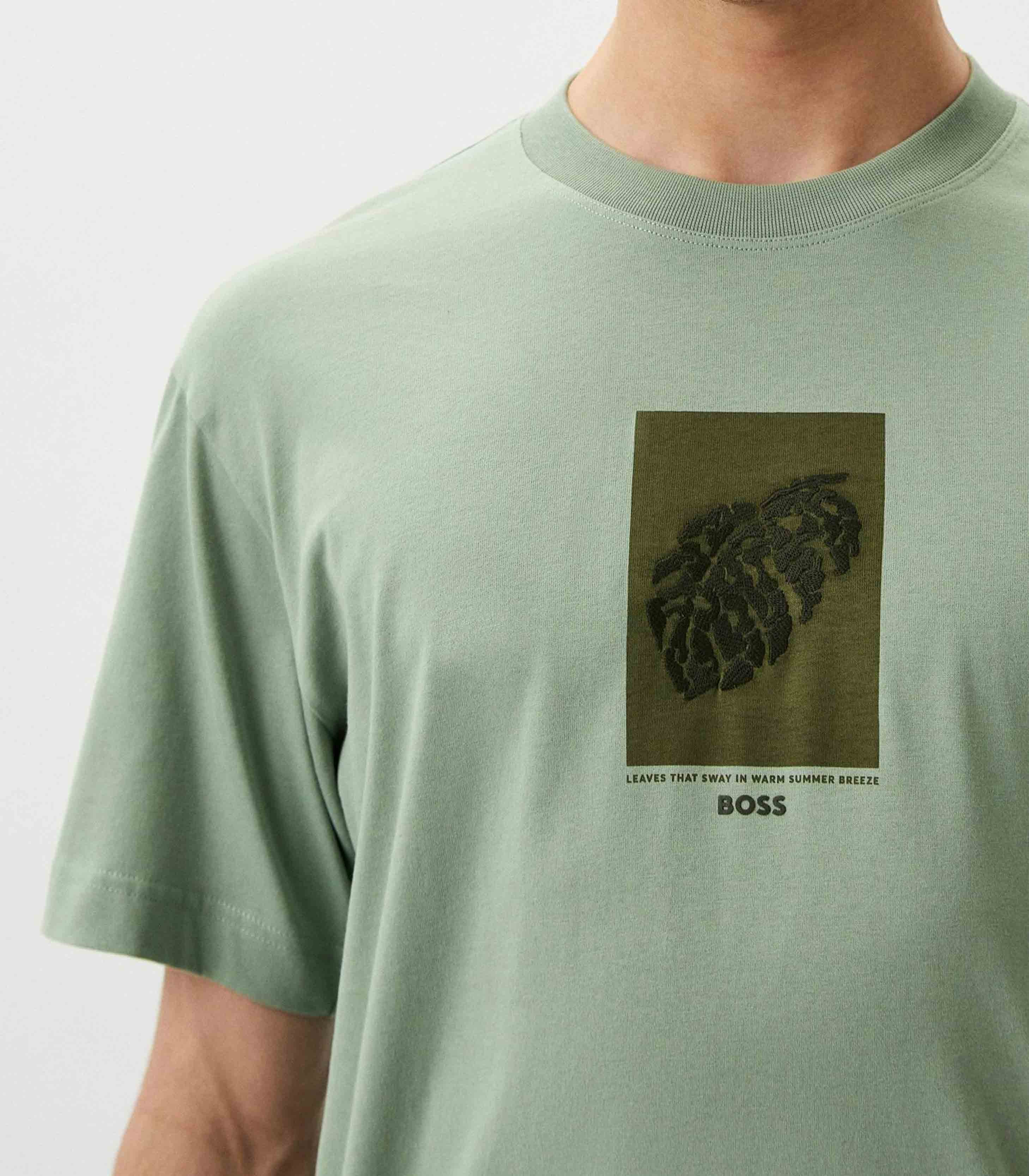 • This BOSS T-shirt is made of appliquéd knit fabric. It's made of exceptionally comfortable cotton fabric.
