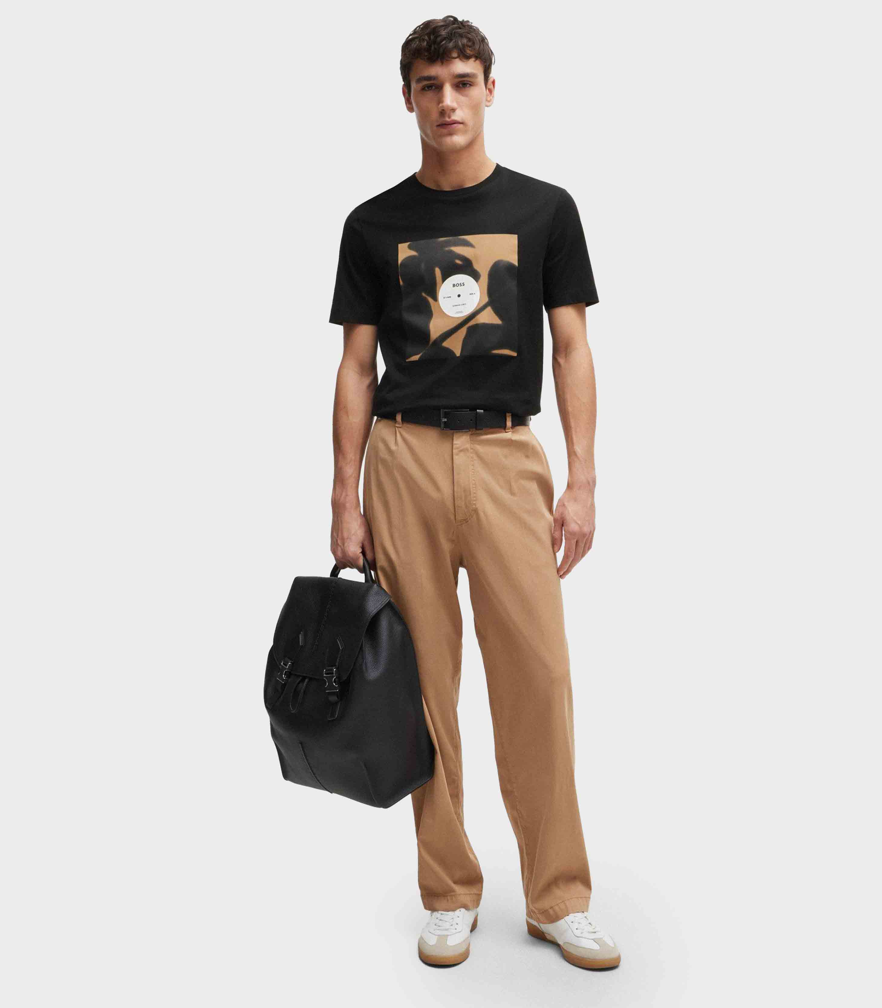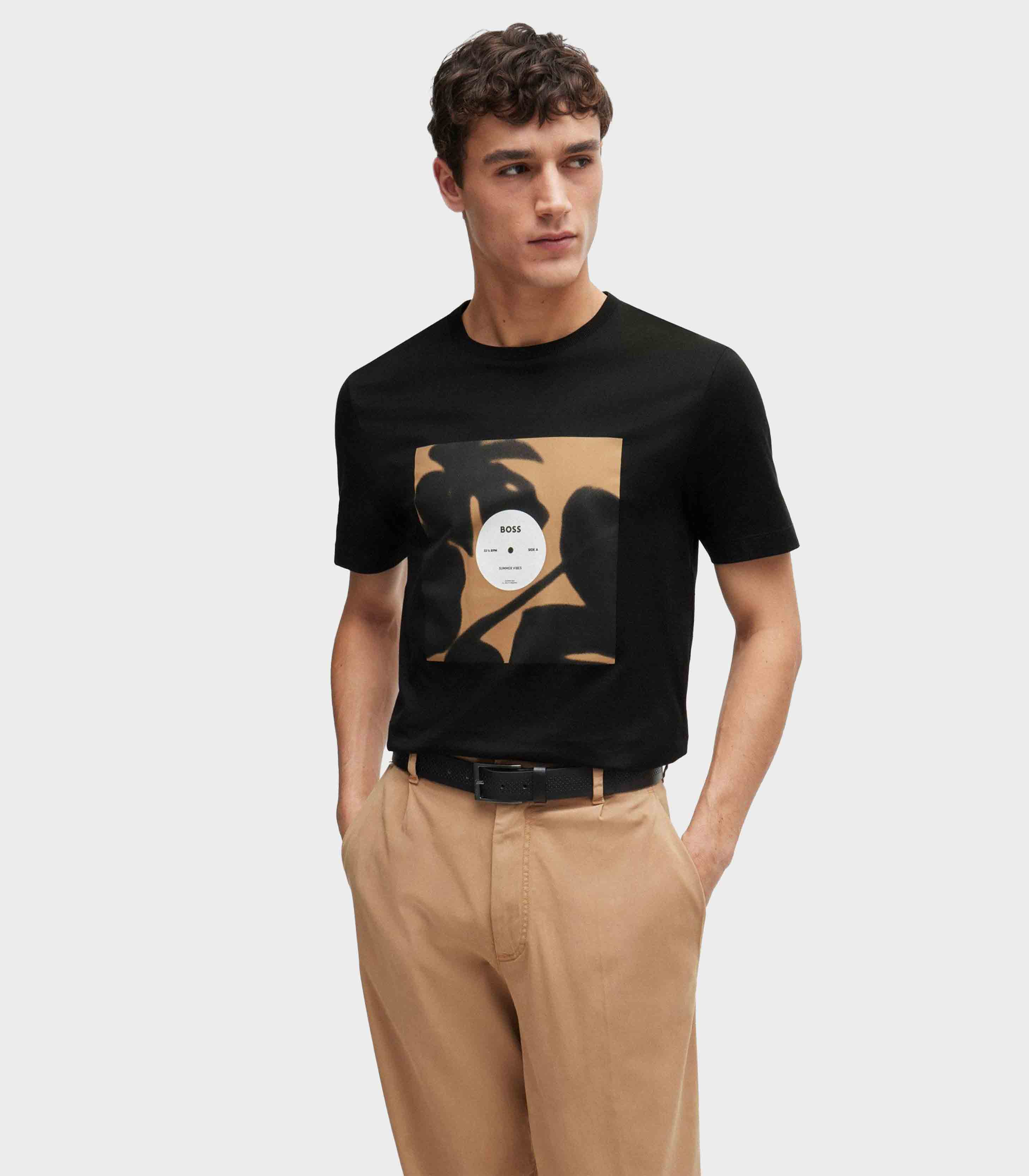 • A signature T-shirt cut to a straight fit in cotton jersey with new-season branded artwork at the front by BOSS Menswear.