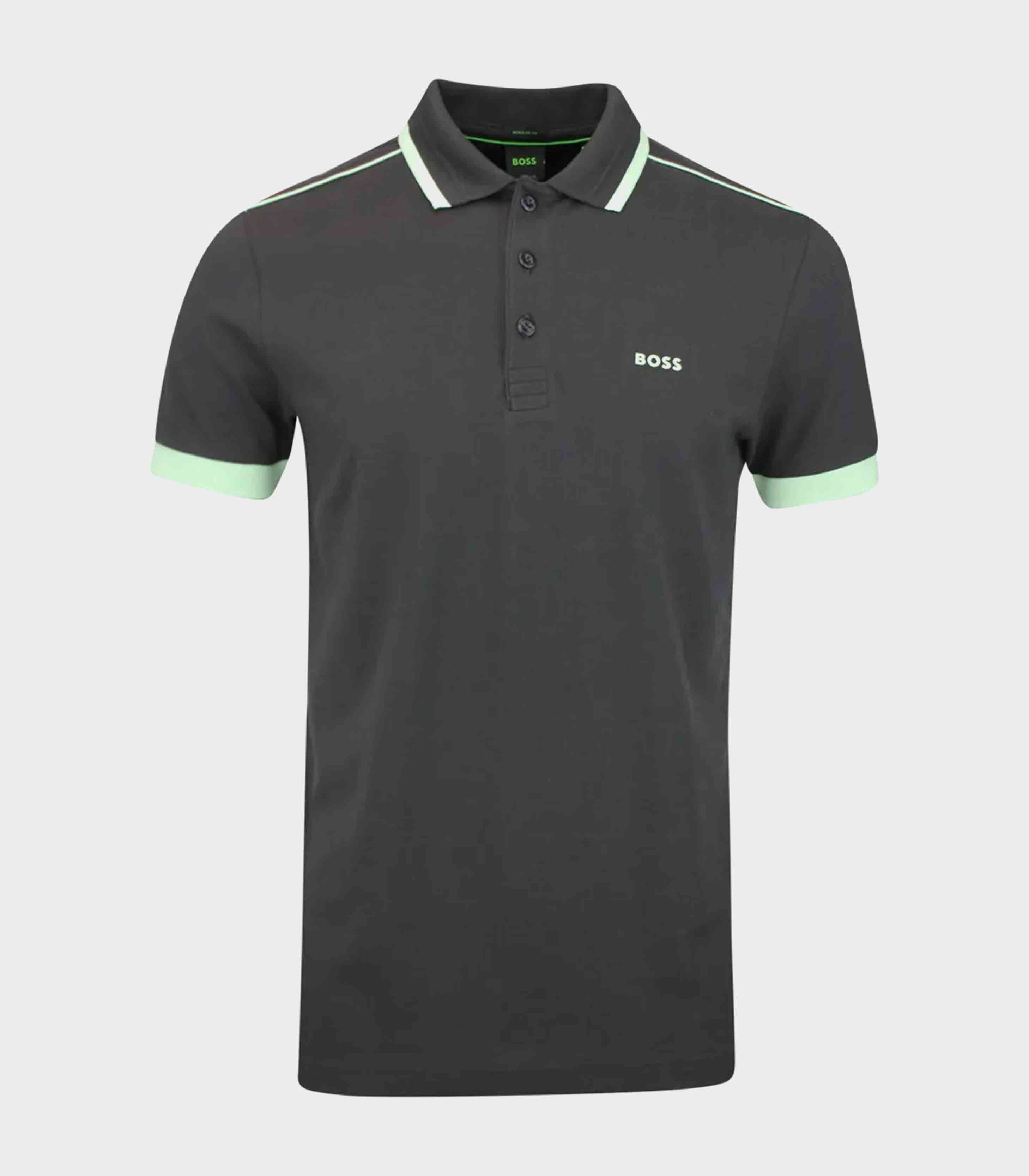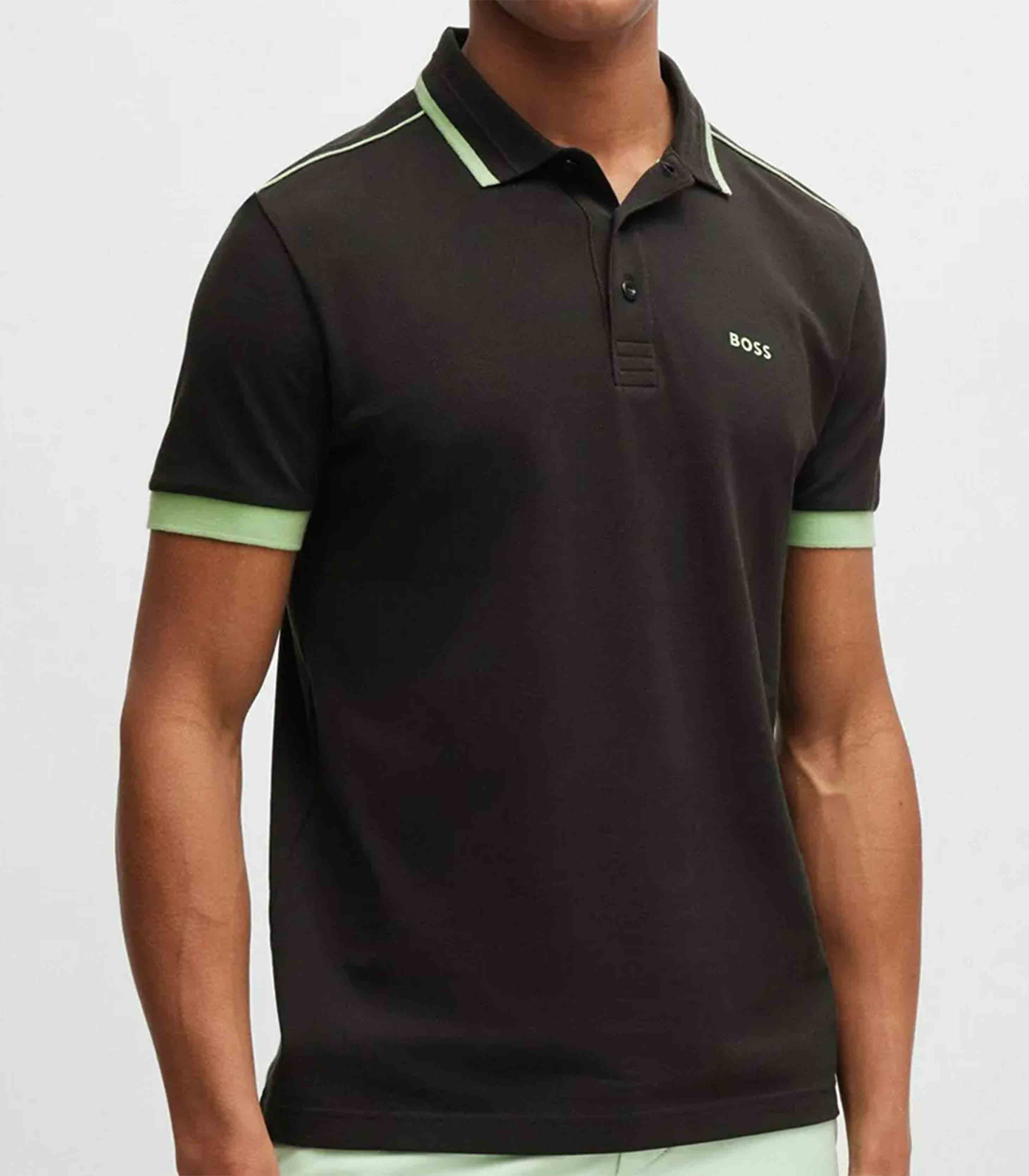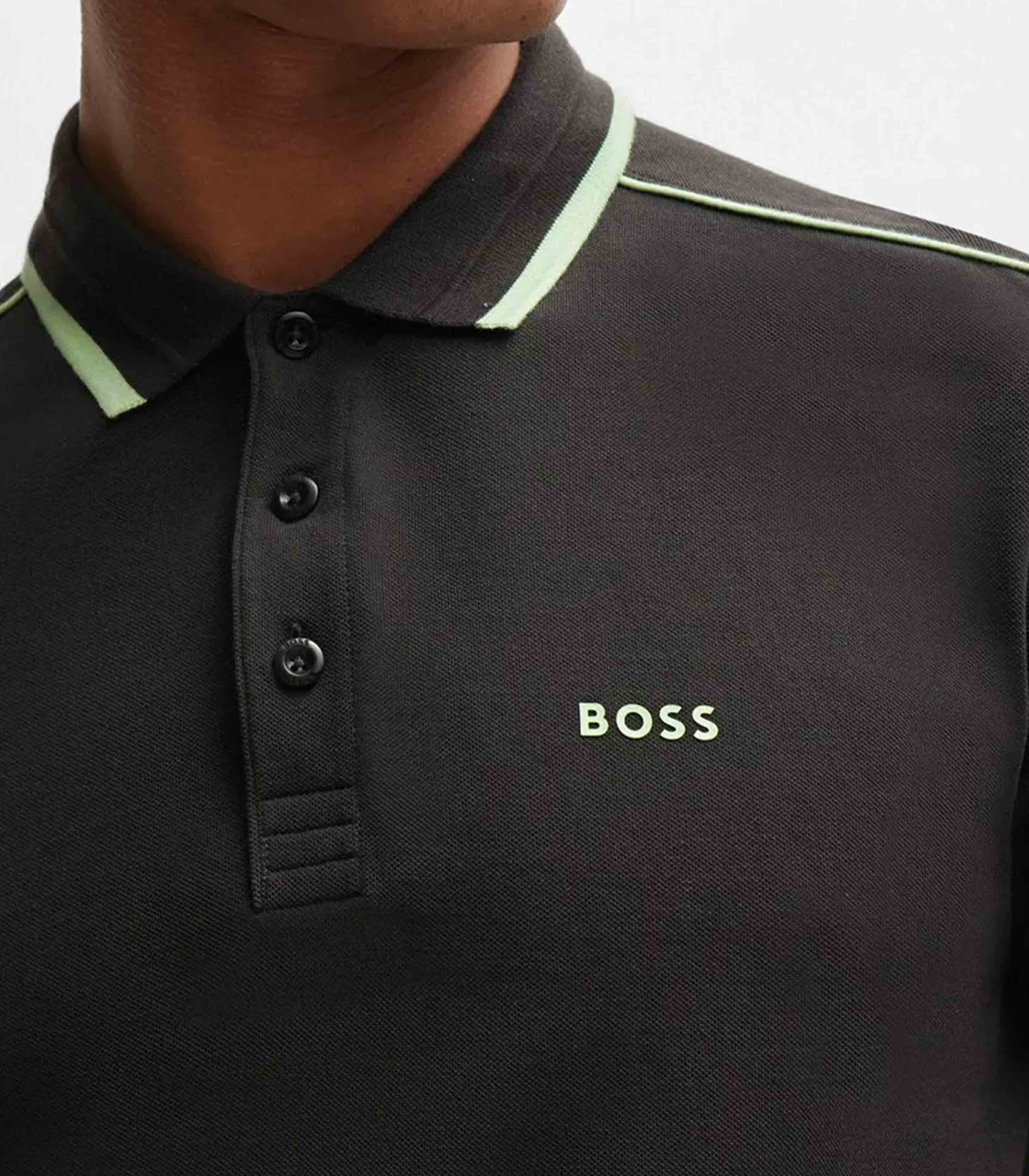 • A sporty polo shirt cut to a straight fit in cotton piqué with contrast branding, piping at the shoulders and tipping stripes by BOSS Menswear.