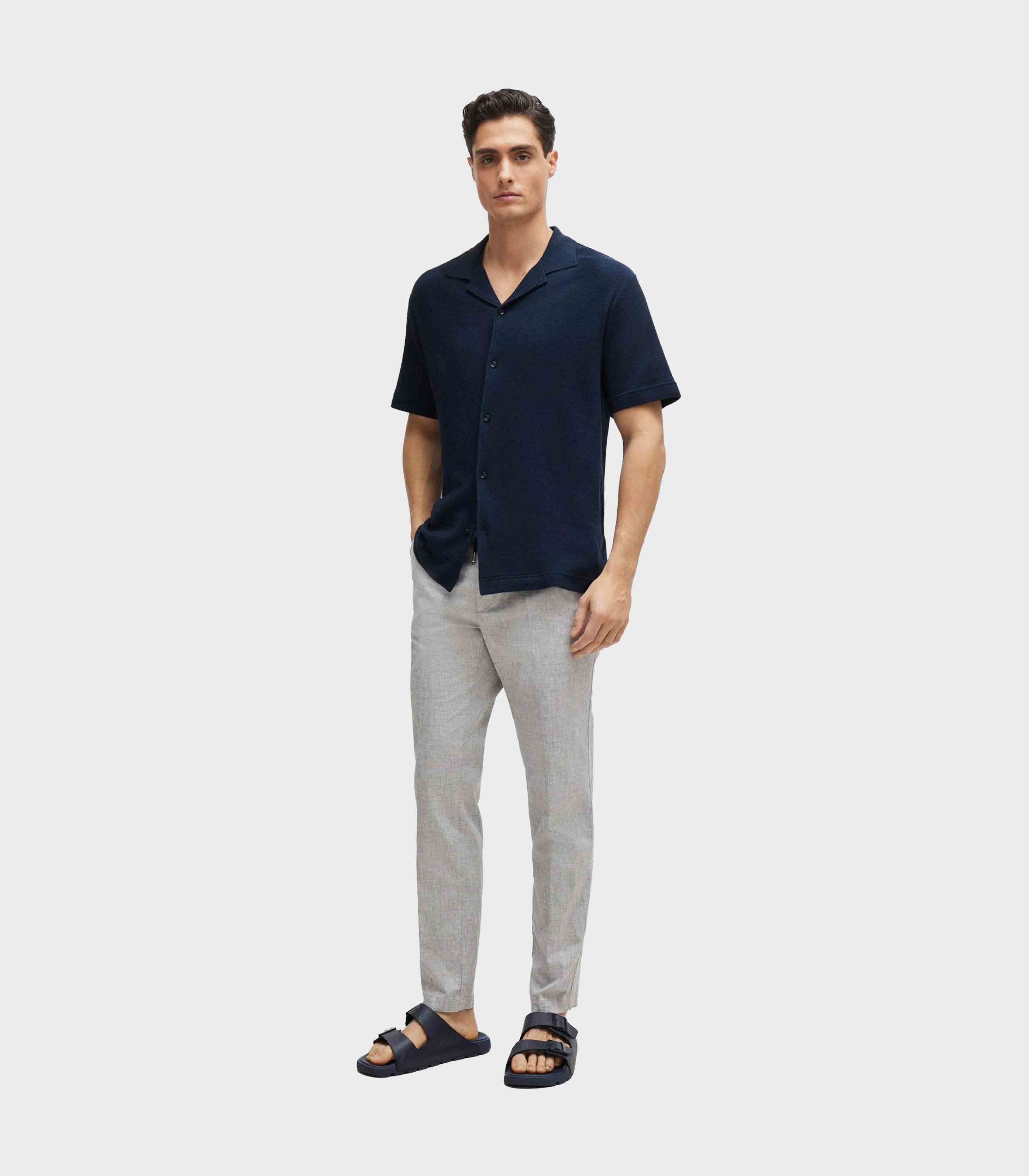 • BOSS - Regular-Fit Shirt In Cotton Bouclé With Ribbed Collar