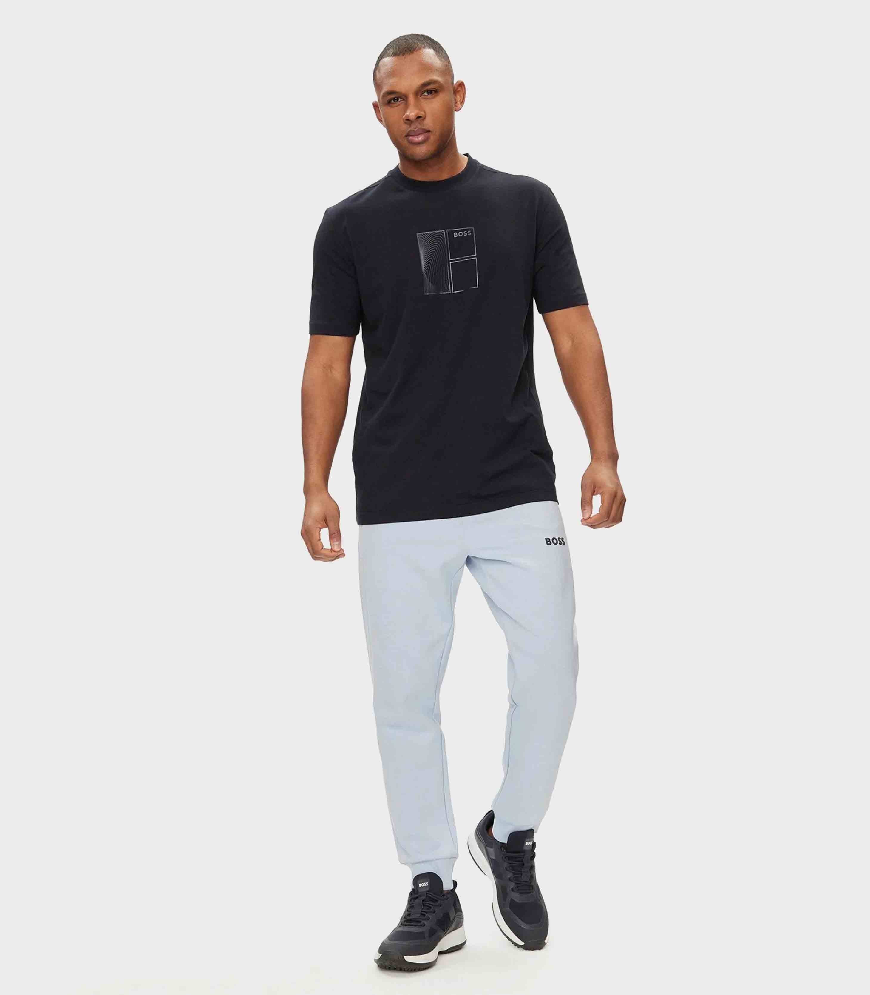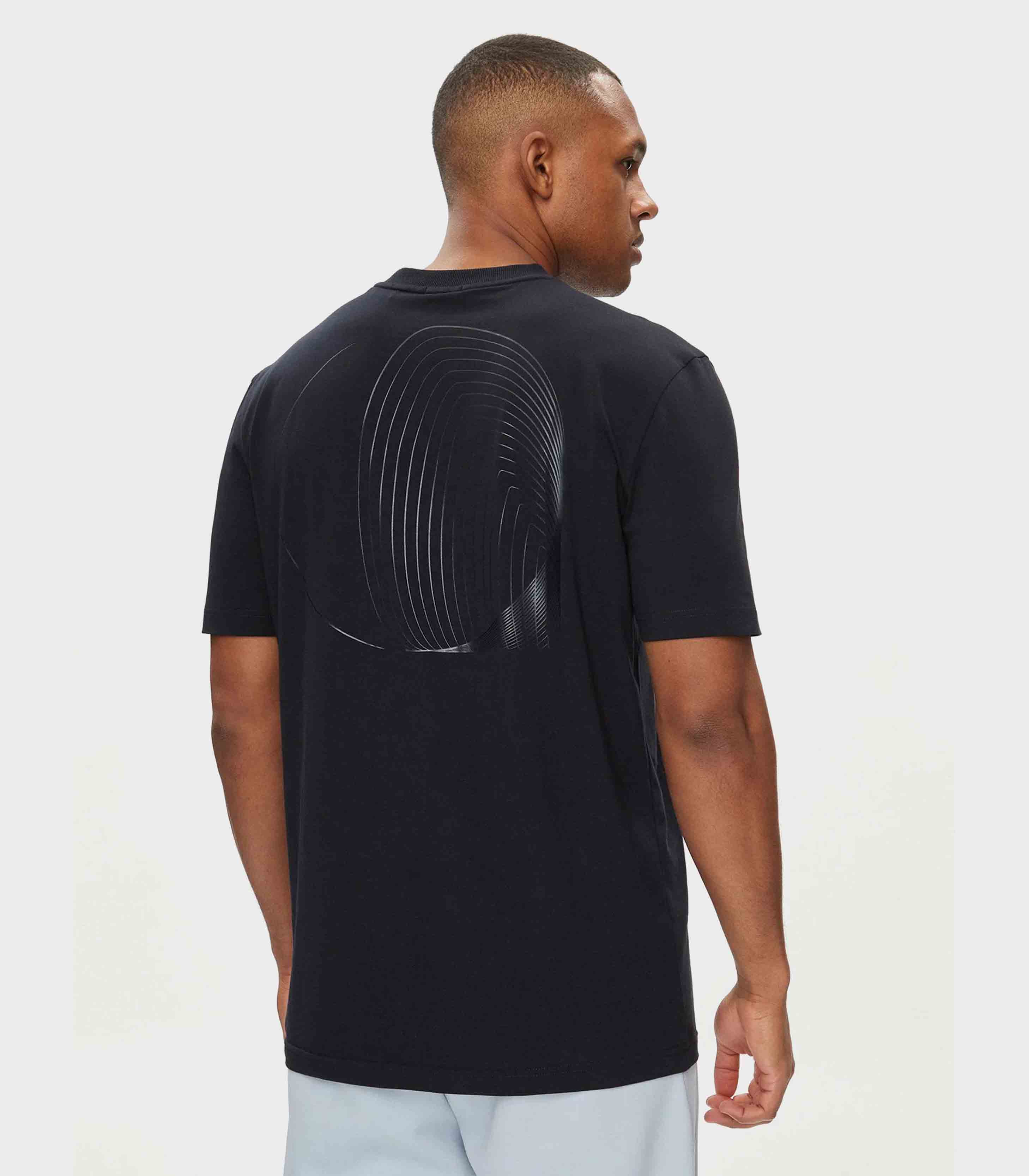 • A modern BOSS Menswear regular-fit T-shirt in comfortable stretch jersey with a metallic design on the front and back.