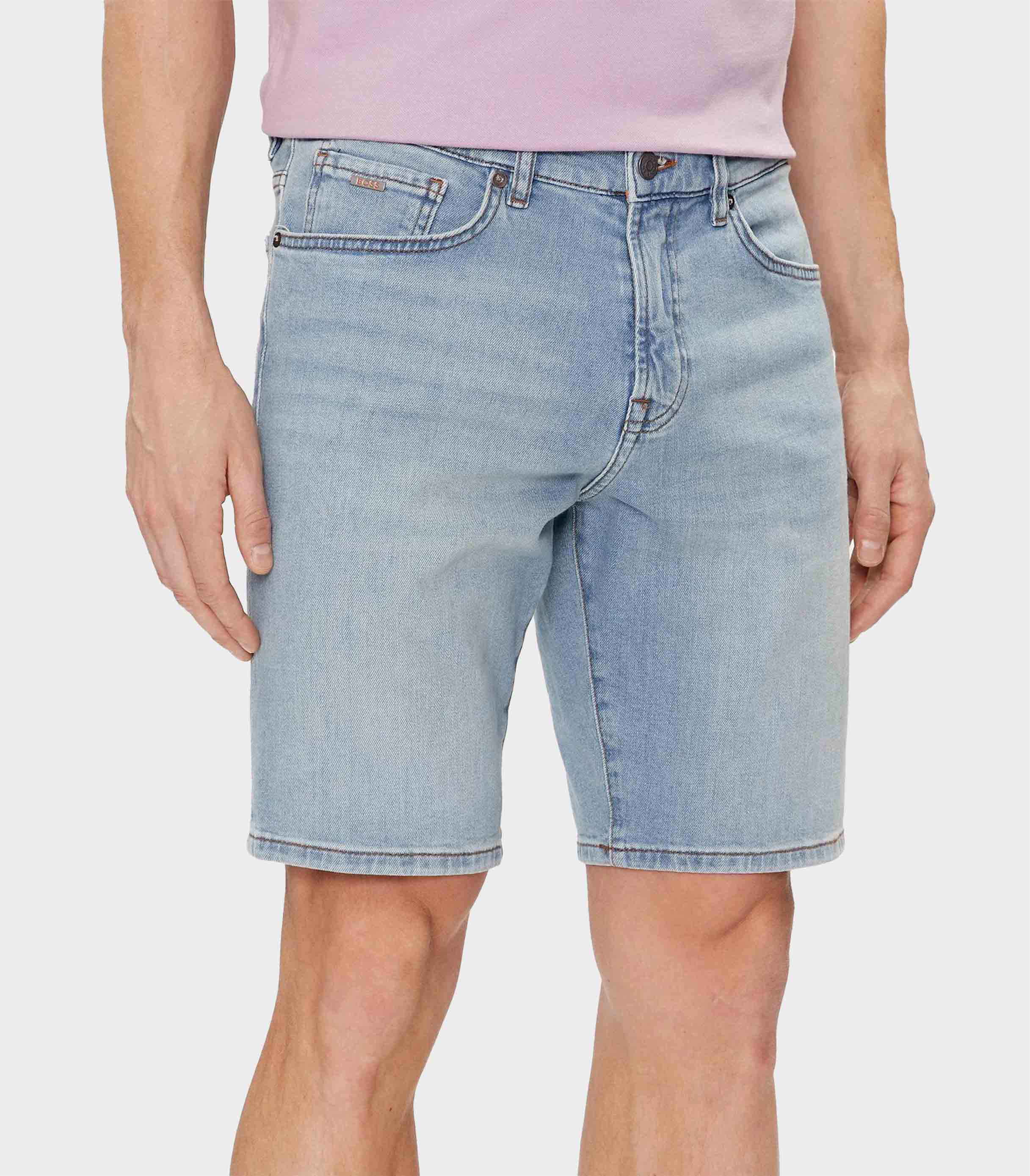 • BOSS - Regular-Fit Shorts In Pure-Blue Comfort-Stretch Denim