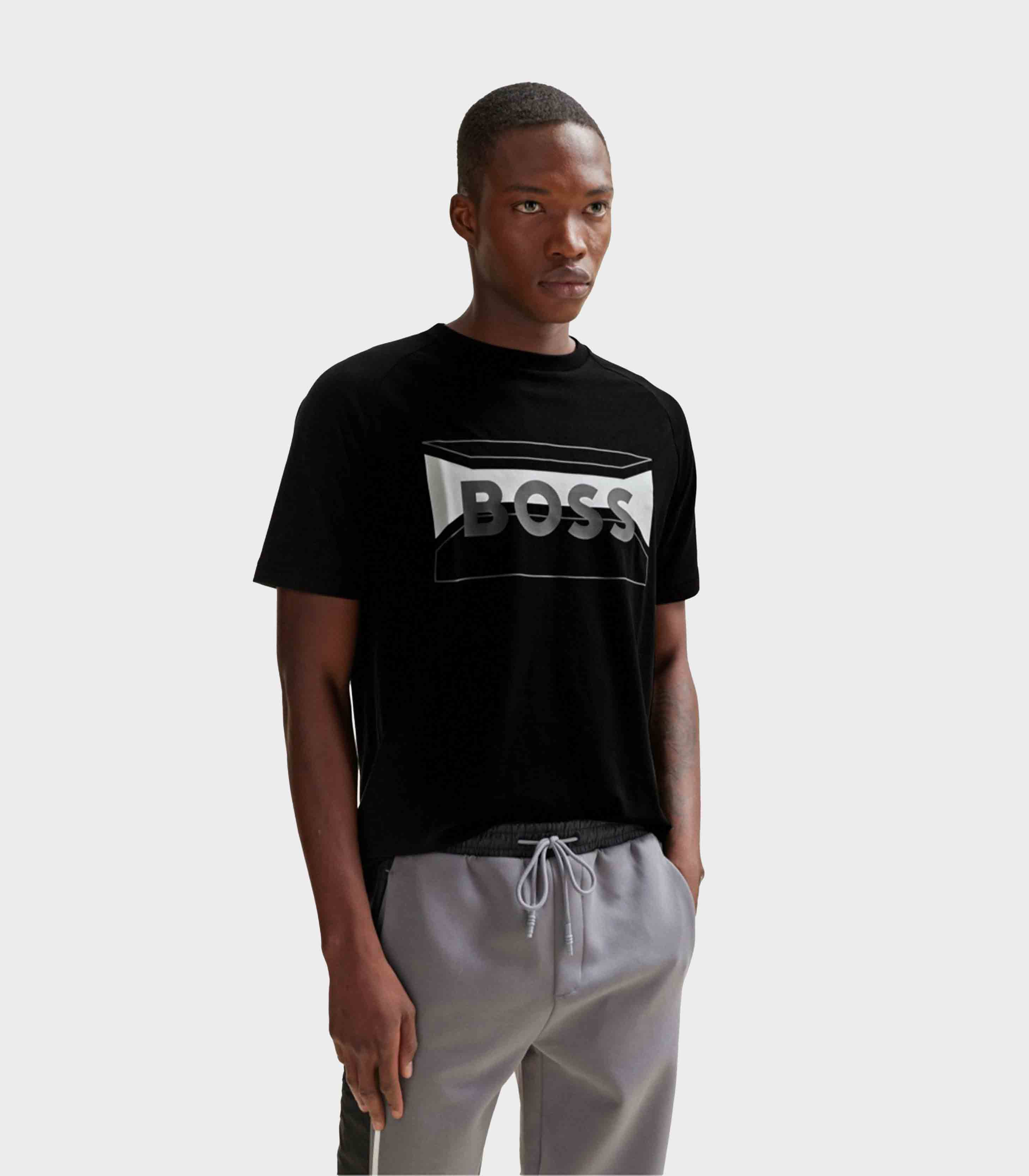 • A casual T-shirt in a regular fit by BOSS Menswear, designed in a stretch cotton blend with logo artwork at the chest.