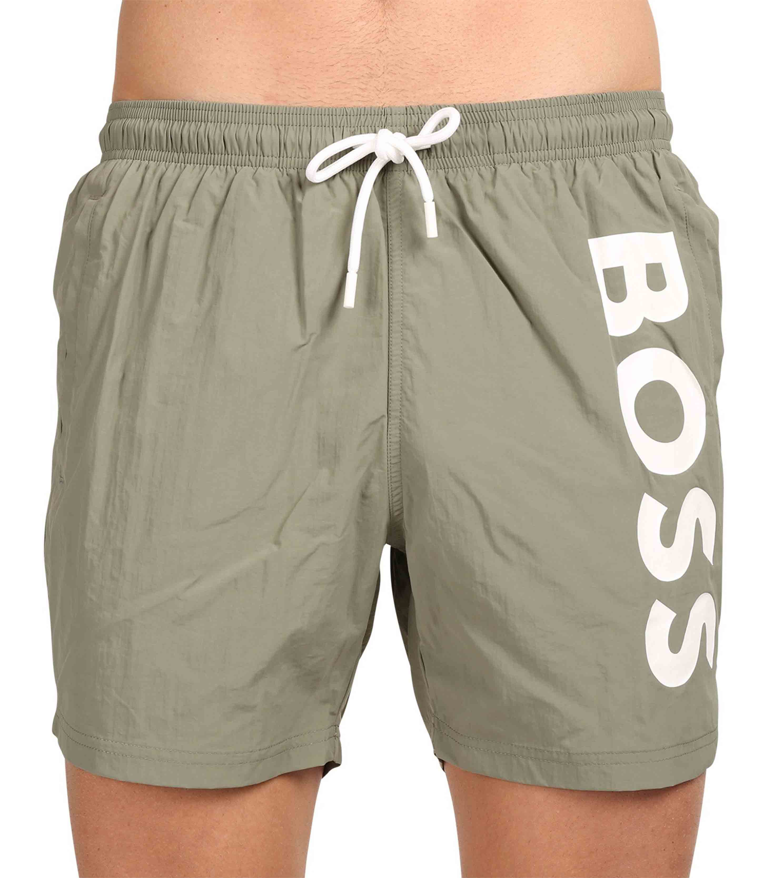 • Signature swim shorts with full lining by BOSS. Crafted in quick-dry fabric, this pair is printed with a vertical logo in contrast.
