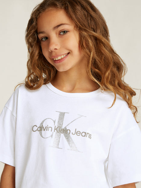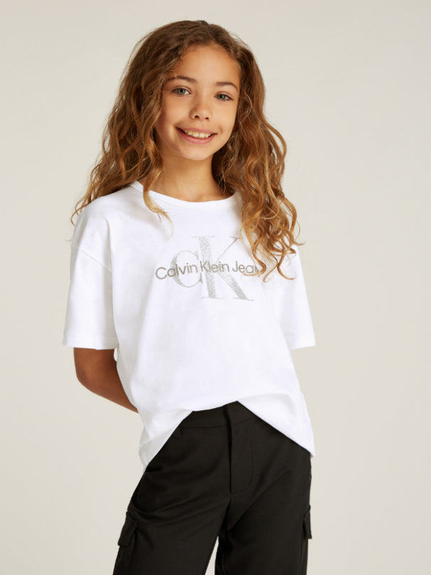 Calvin Klein - MONOLOGO GLITTER SS T-SHIRT , 8 , Bright White , Style IG0IG02801