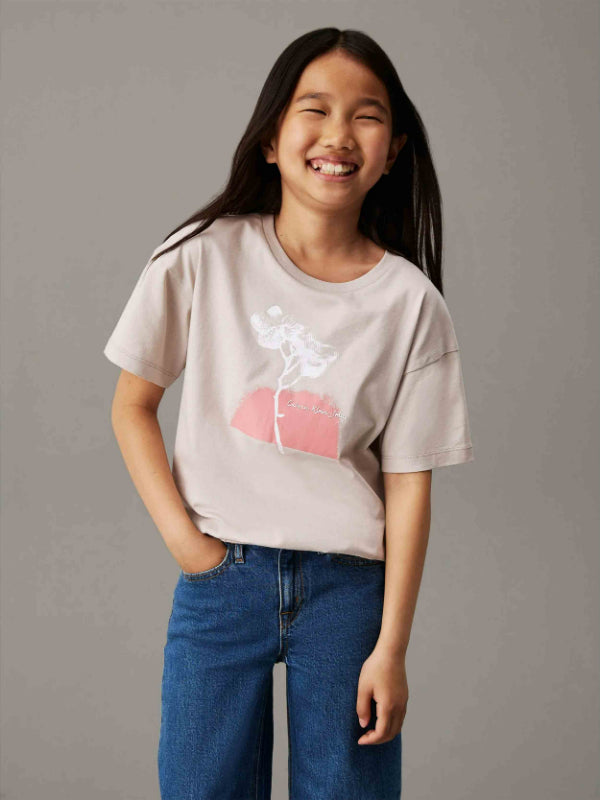 • Calvin Klein - Girls' Loose Fitting Natural Graphic T-Shirt