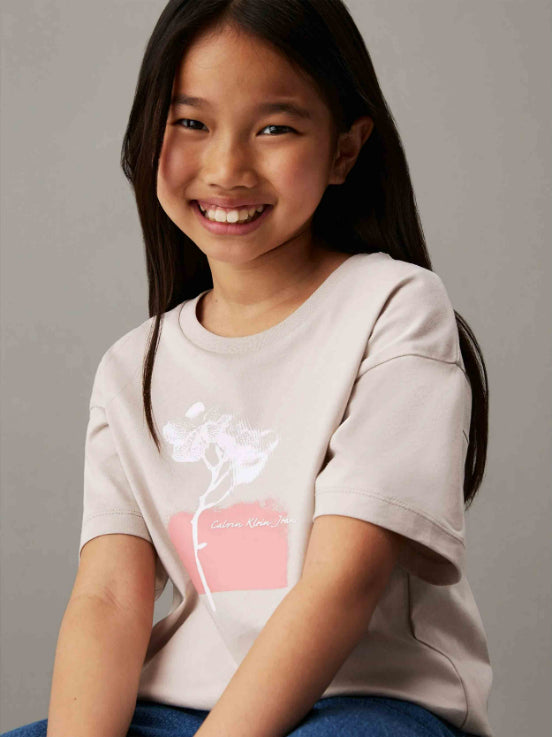 Calvin Klein - Girls' Loose Fitting Natural Graphic T-Shirt