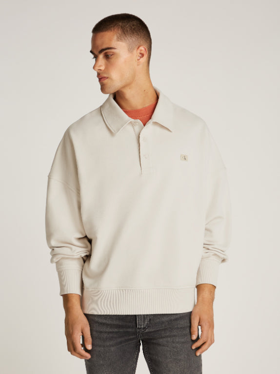 Calvin Klein - WOVEN LABEL RELAXED RUGBY HWK , S , MOONBEAM , Style J30J327037