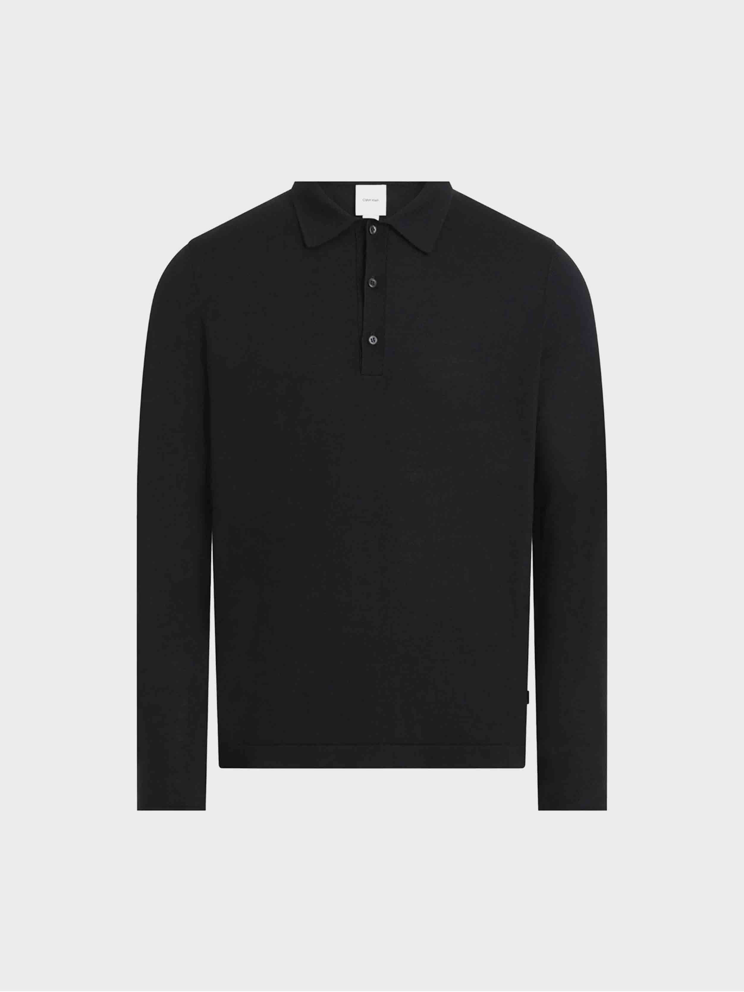 Calvin Klein - ITALIAN MERINO SILK LS POLO , M , CK Black , Style K10K113777