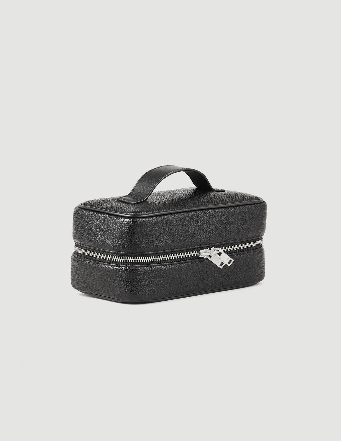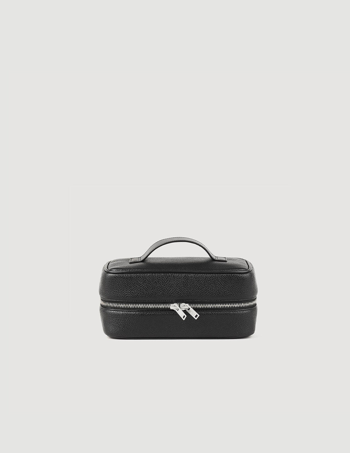 • Toilet bag in grained coated fabric with zip fastening, handle on the top and technical fabric interior.