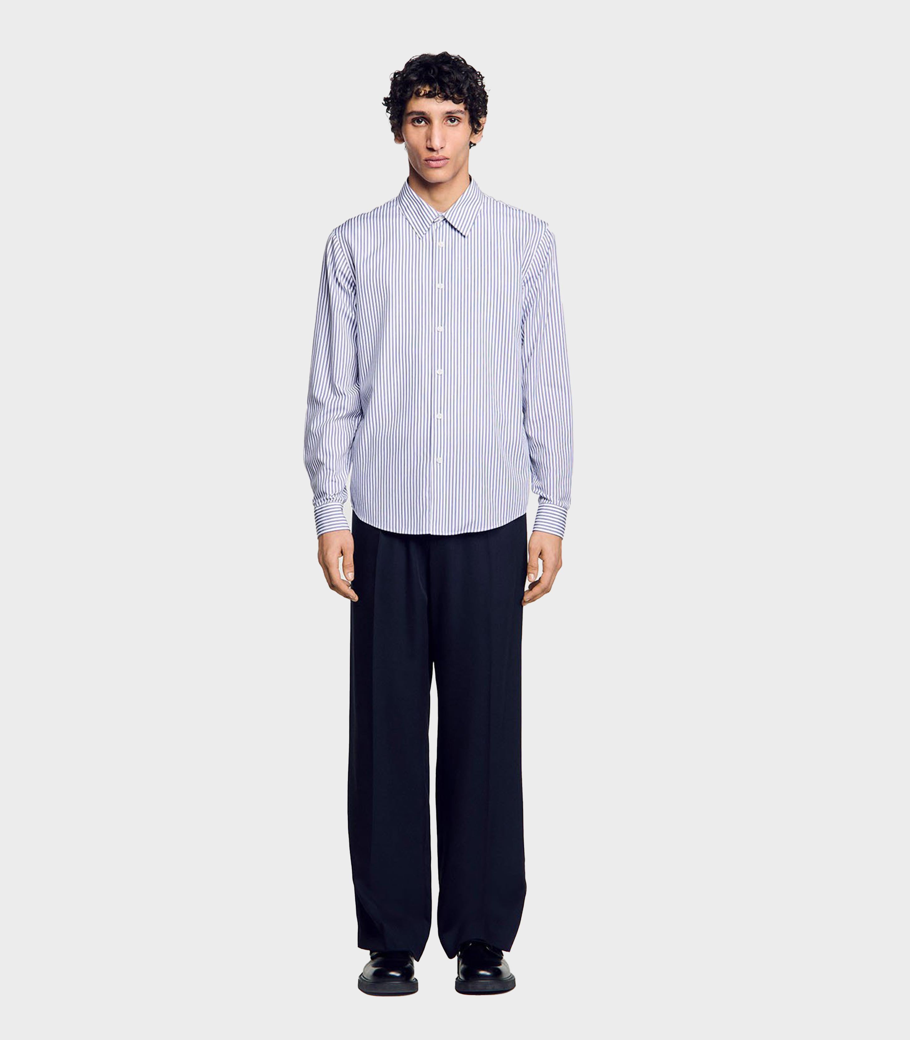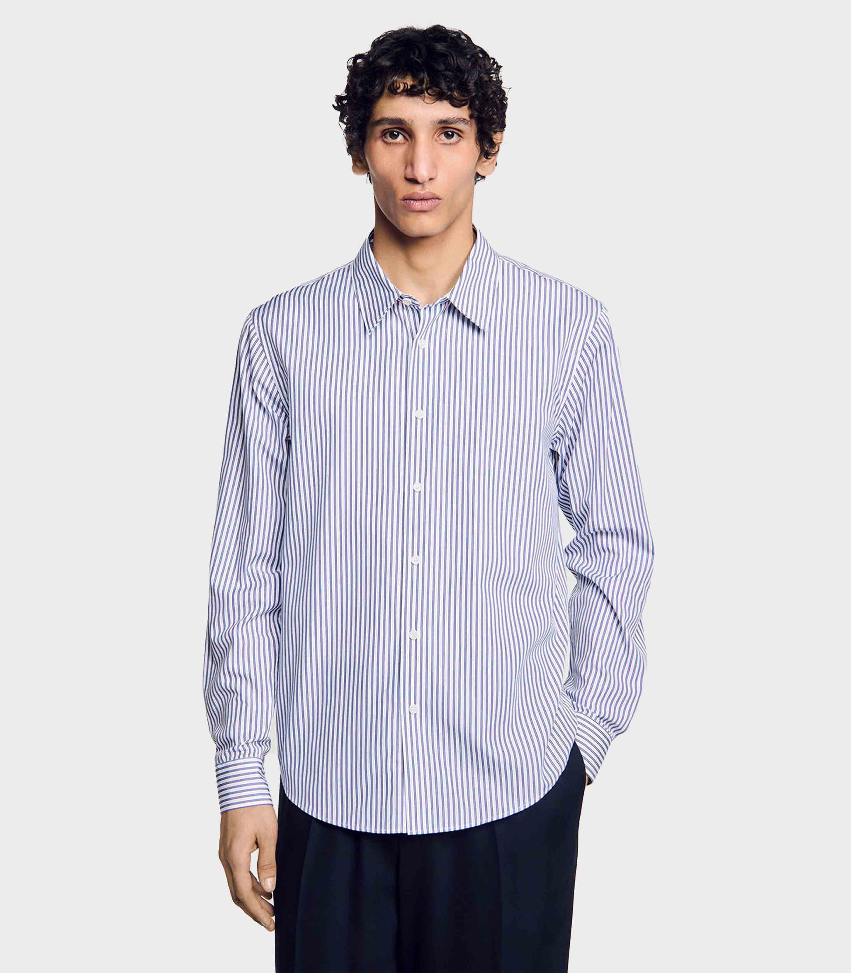 • Striped shirt with classic collar, button placket and long sleeves.