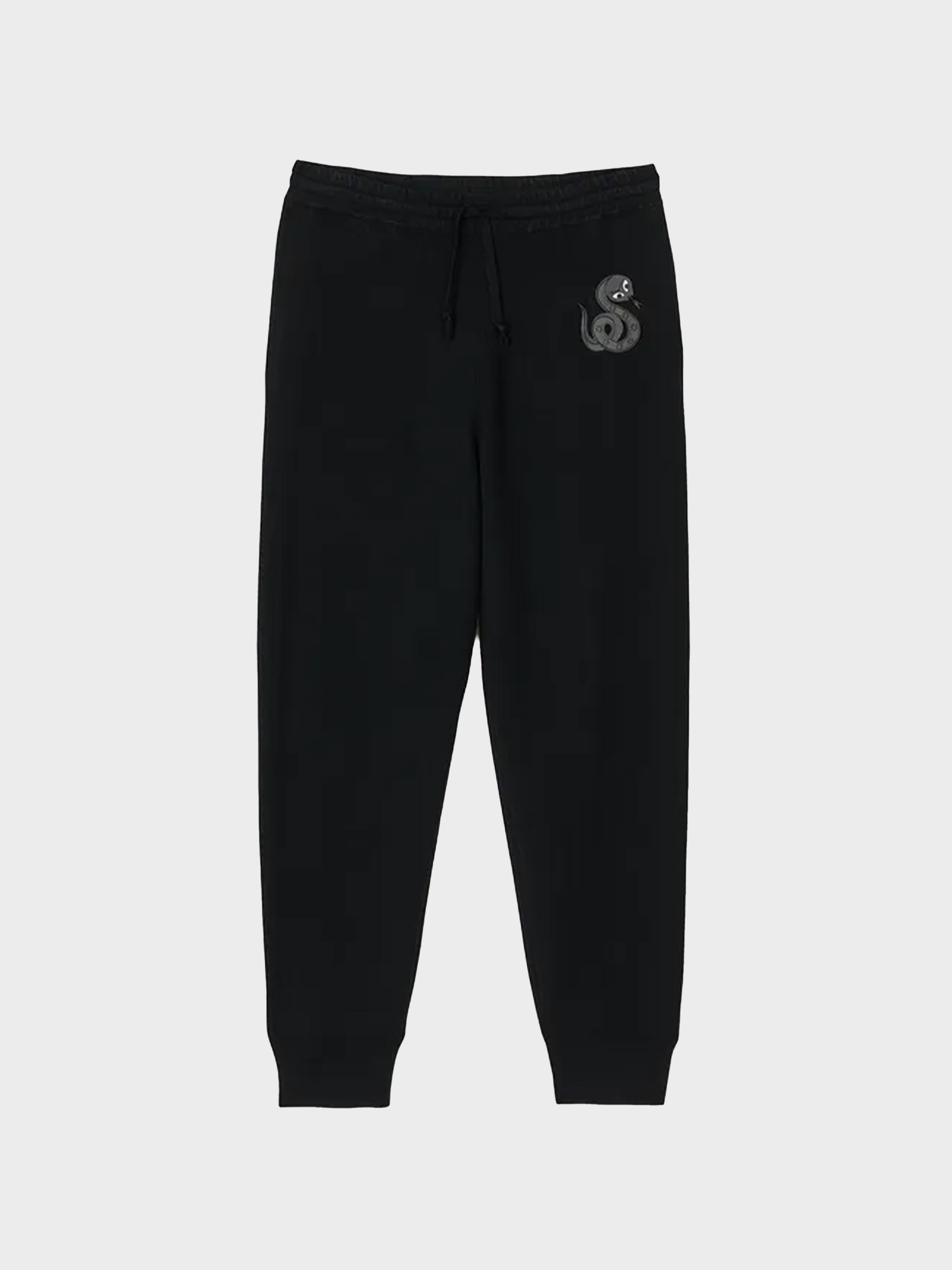 • Milano knit jogging bottoms with ribbed ankles, elasticated drawstring waistband and embossed floral snake patch.