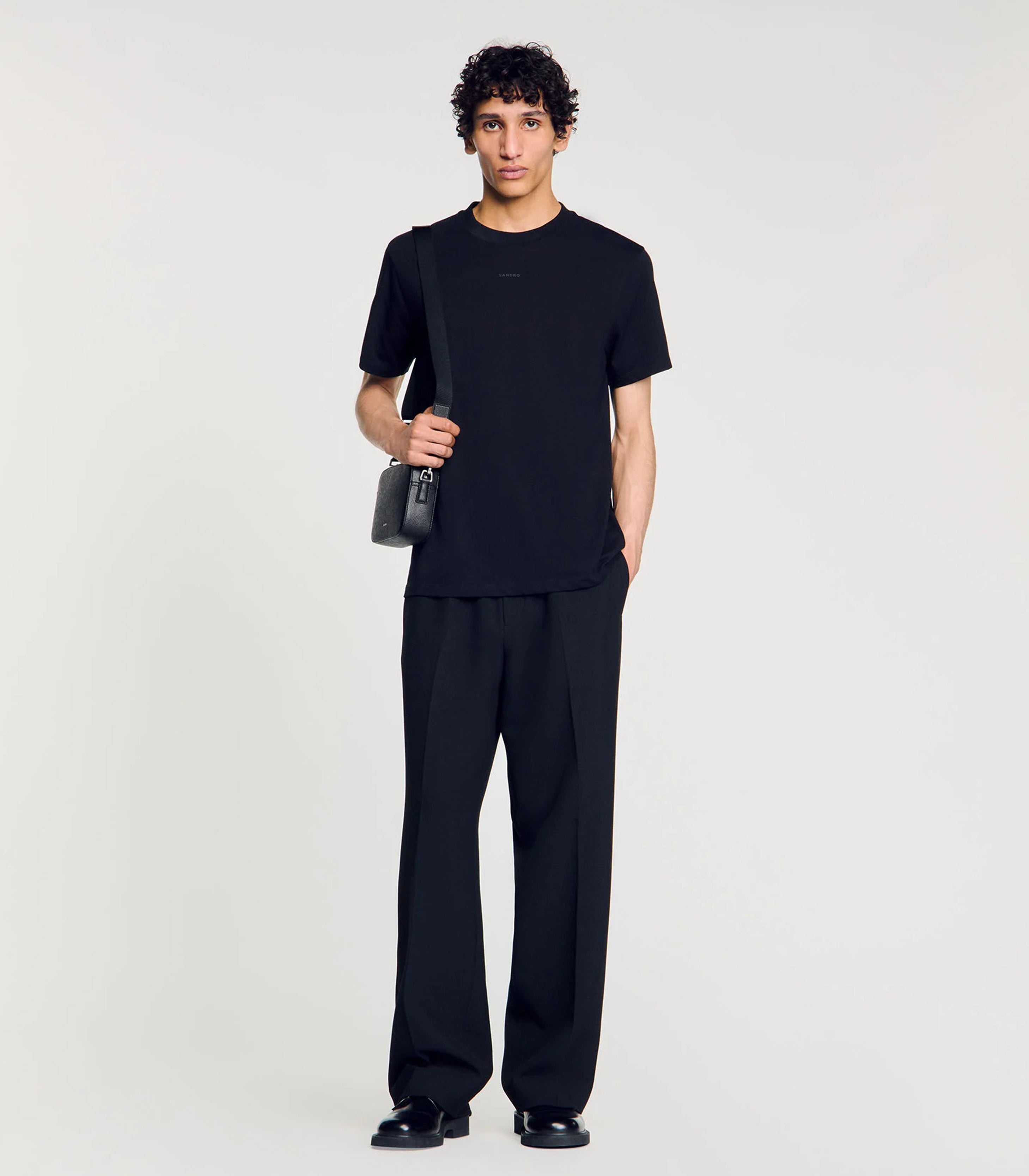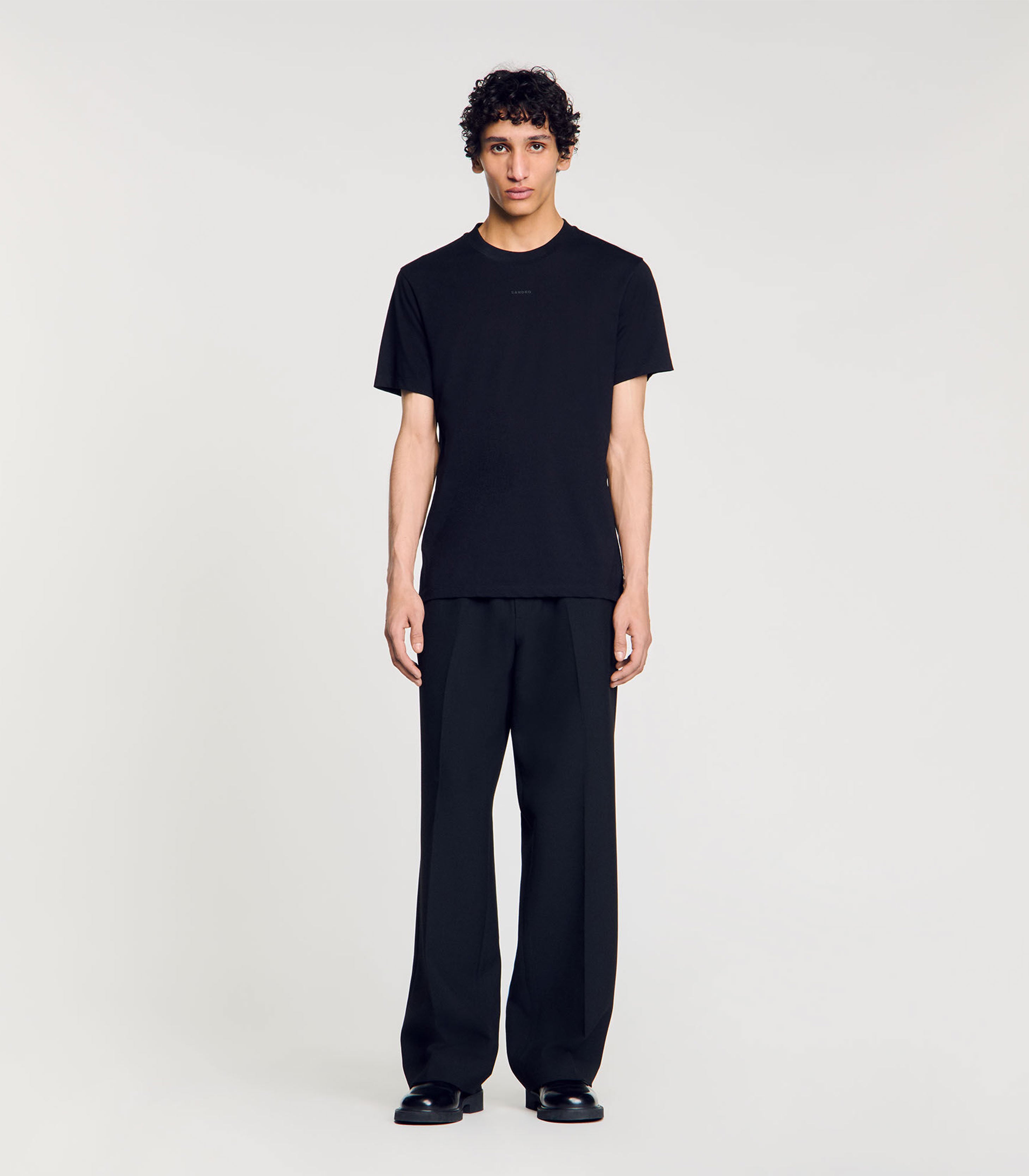 • Short-sleeved, round-neck cotton T-shirt with rubberized SANDRO logo.