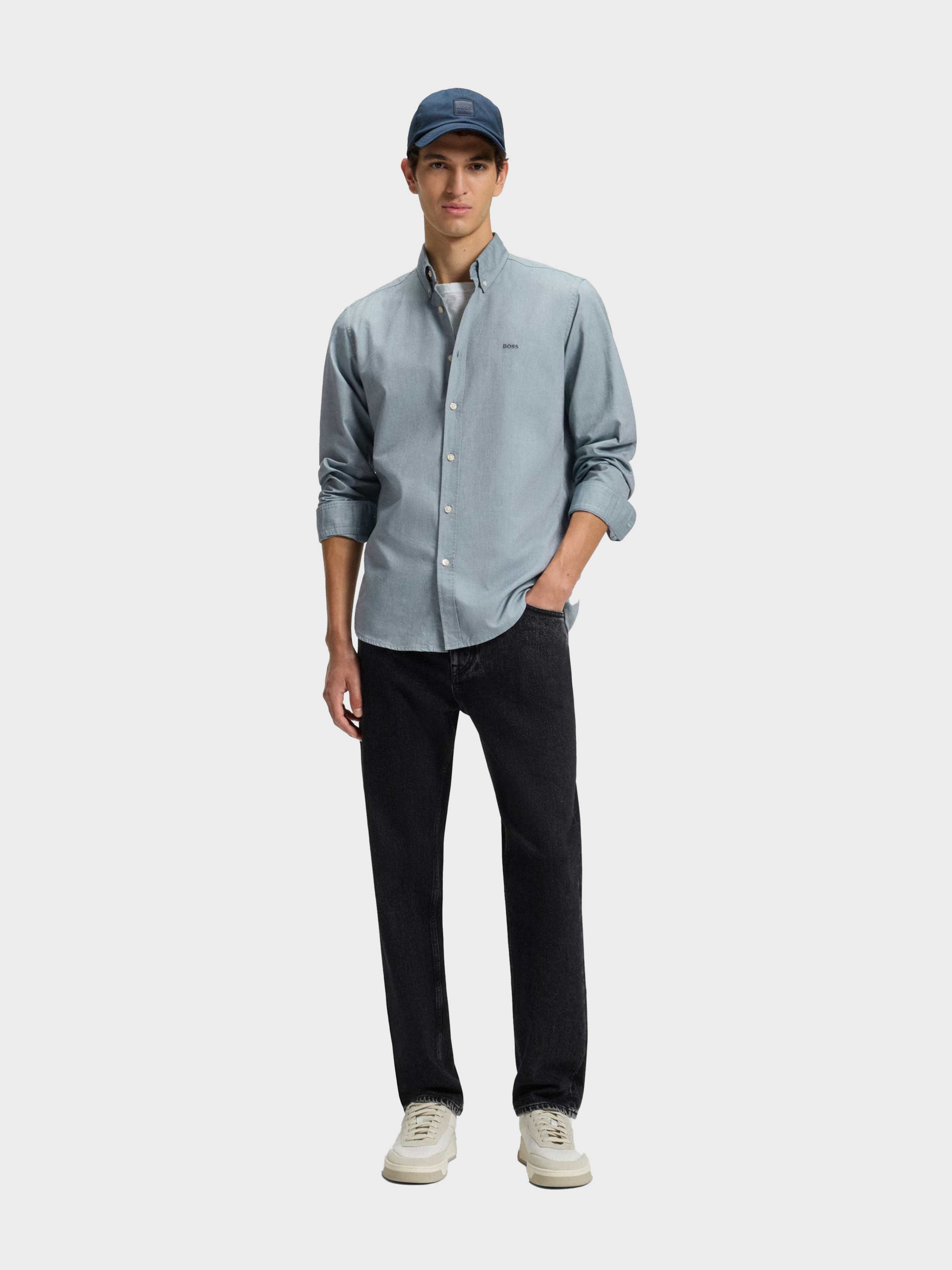 • With a subtle logo and button-down collar, this BOSS Menswear shirt is a modern update to a classic. Oxford-woven cotton. Easy regular fit. This product contains at least 80% better raw materials. This piece is made with at least 80% cotton derived from regenerative agriculture. Regenerative agriculture prioritises the preservation and restoration of natural environments, aiming to enhancebiodiversity, maintain water quality, and improve soil health.