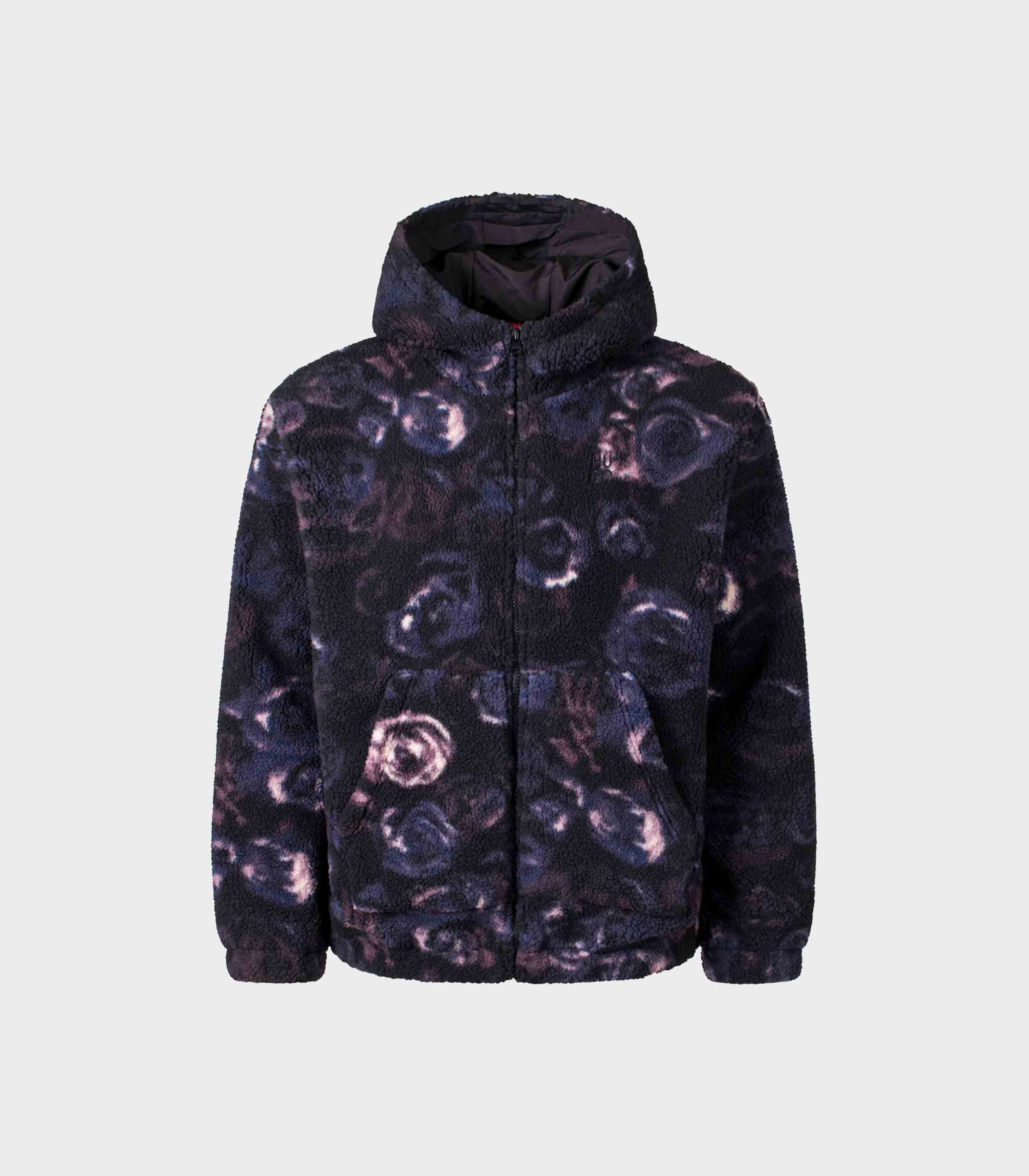 • HUGO - Hooded Jacket with Gothic Rose Floral Jacquard