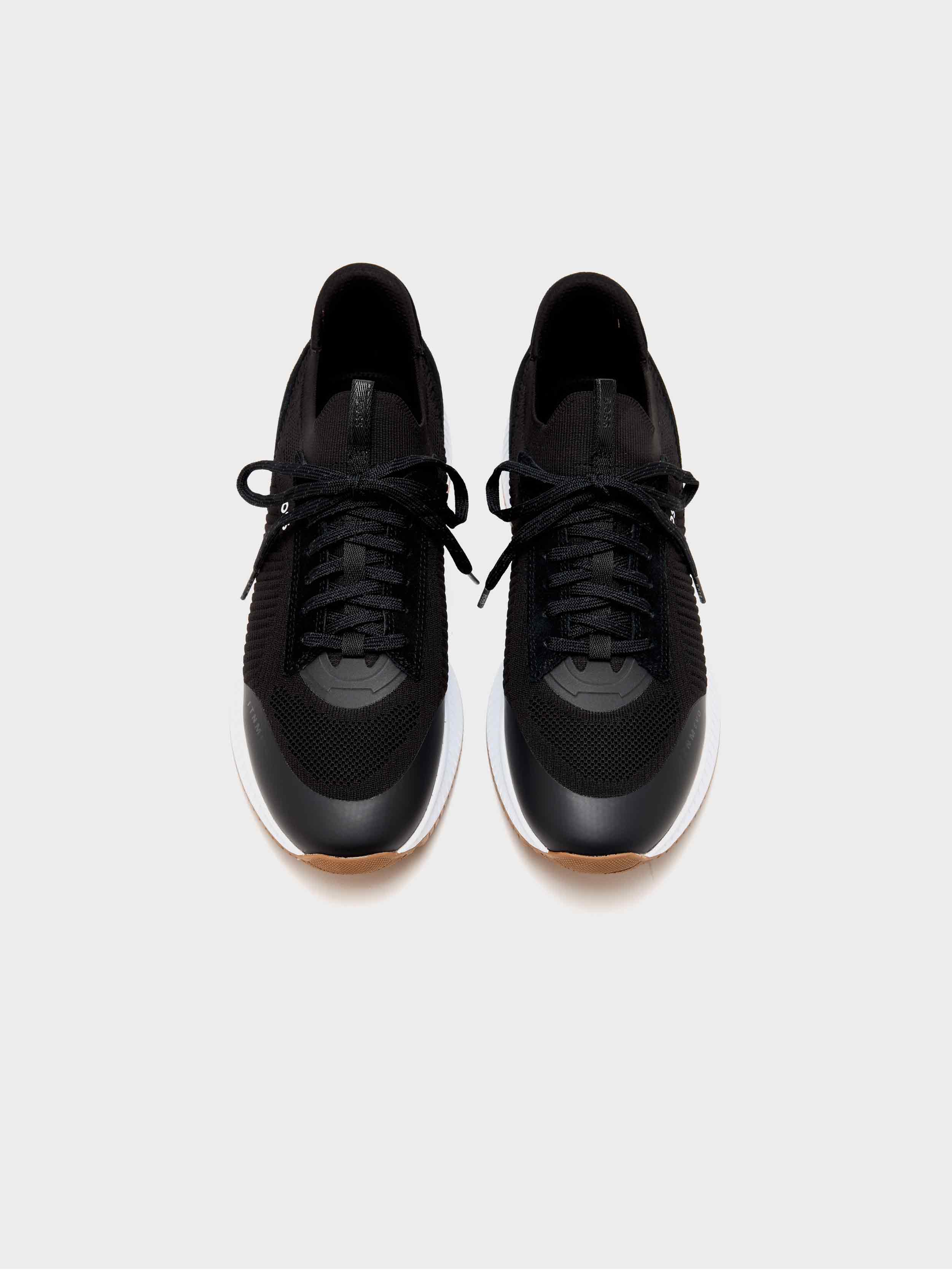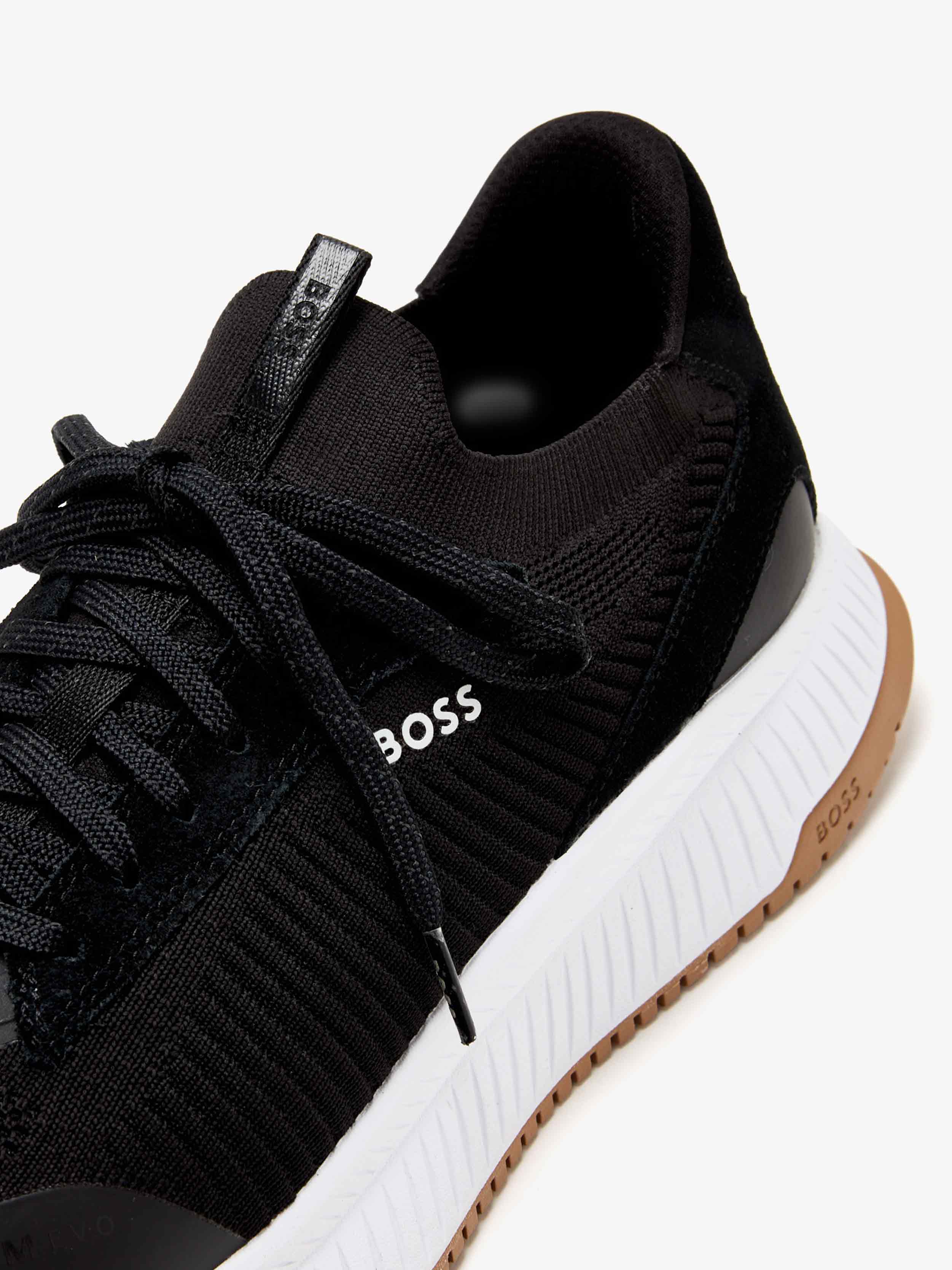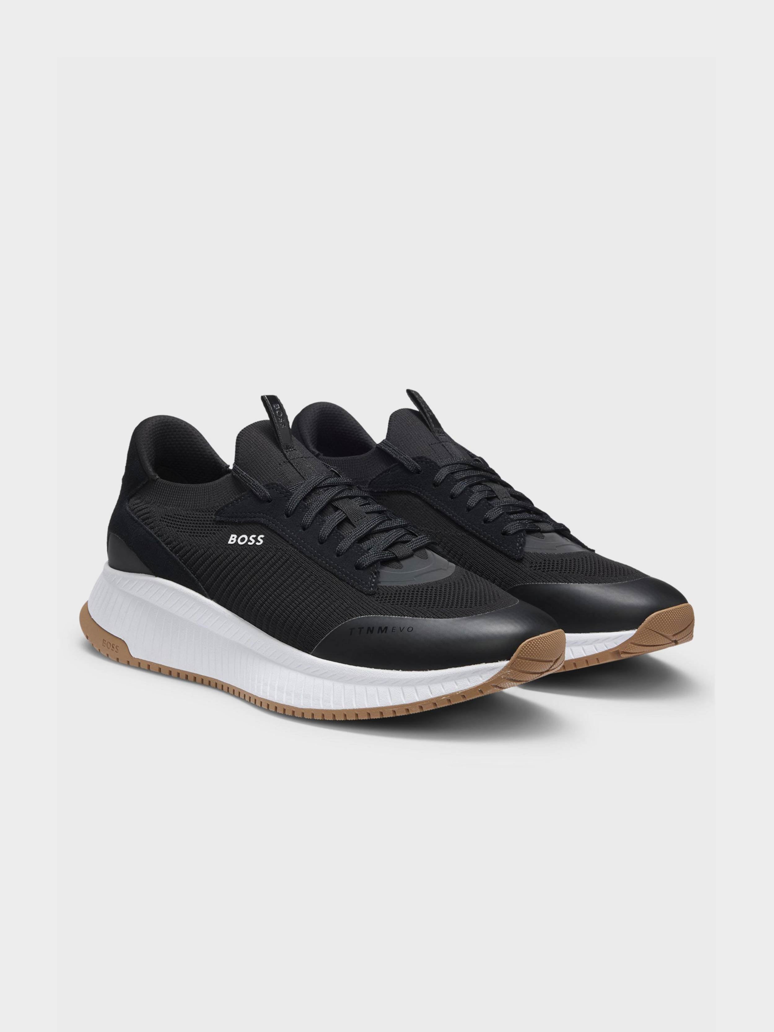 • Crafted in a combination of materials, including leather trims, these running-style BOSS Menswear trainers strike a distinctive profile. Lightweight ridged outsole. Knitted uppers for enhanced comfort and fit.