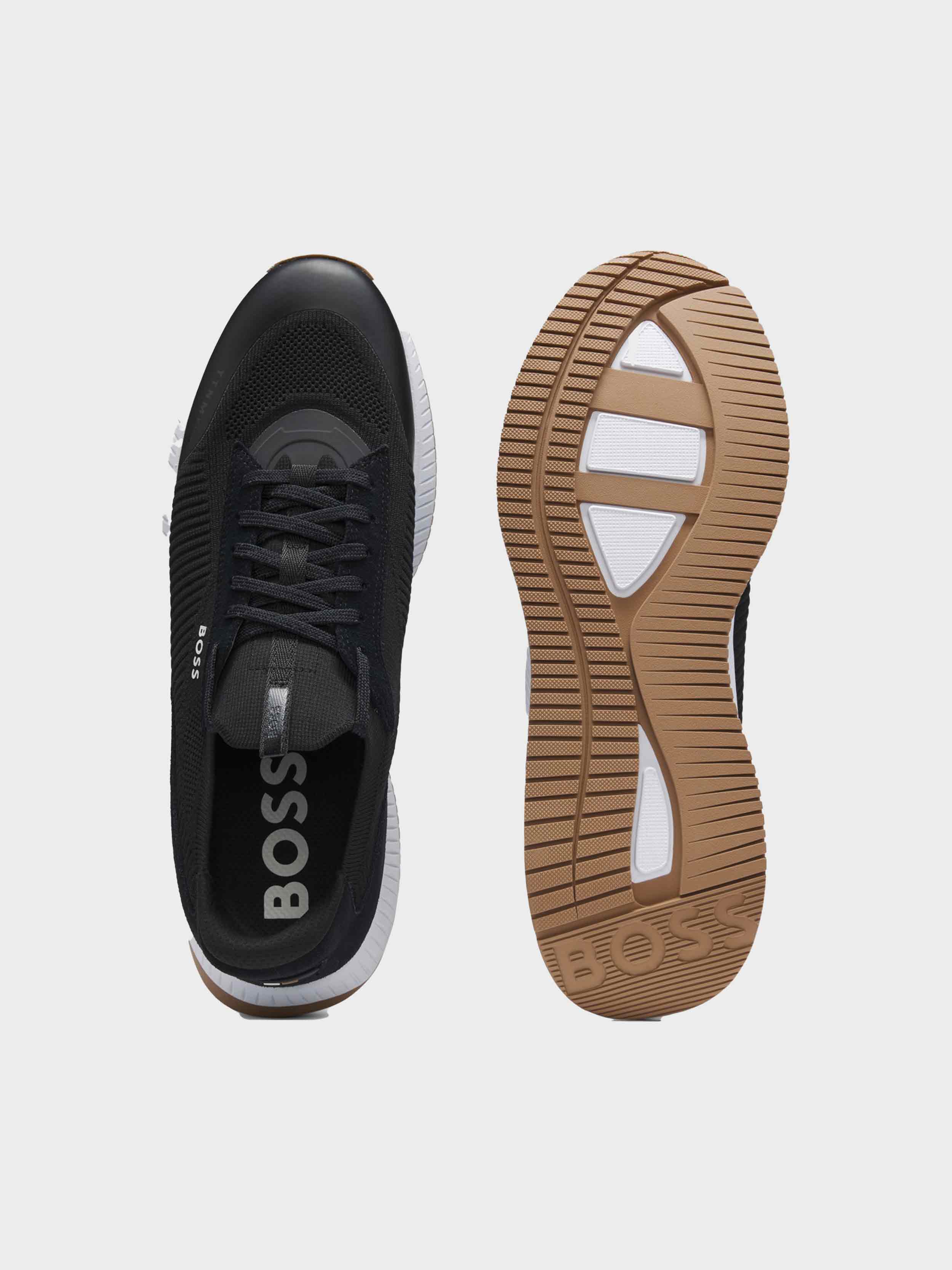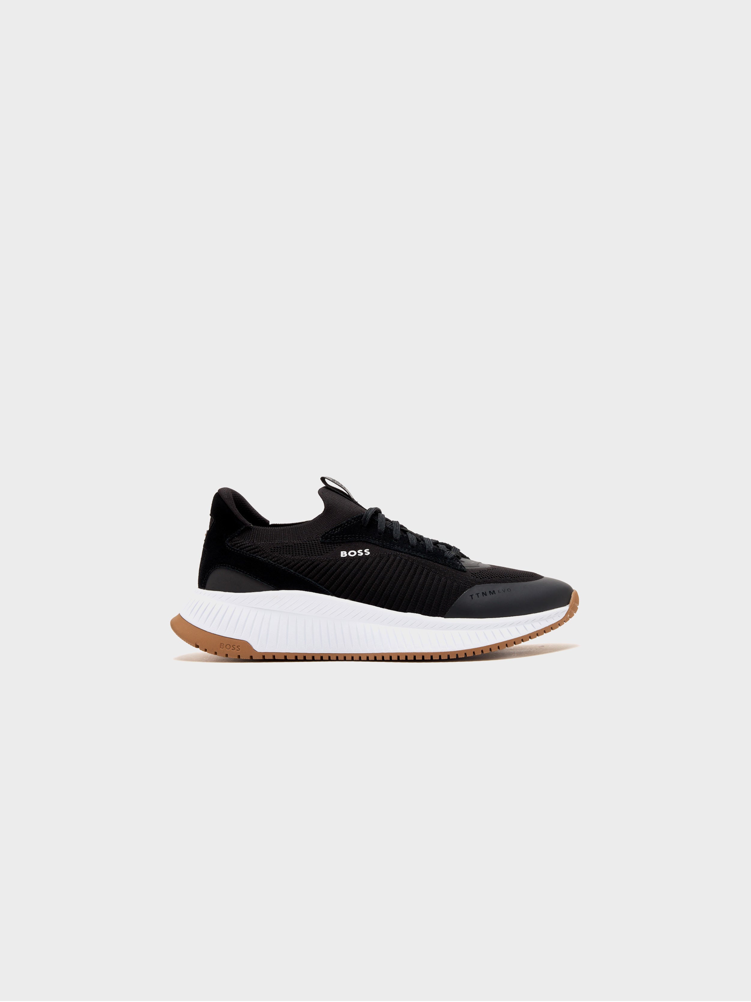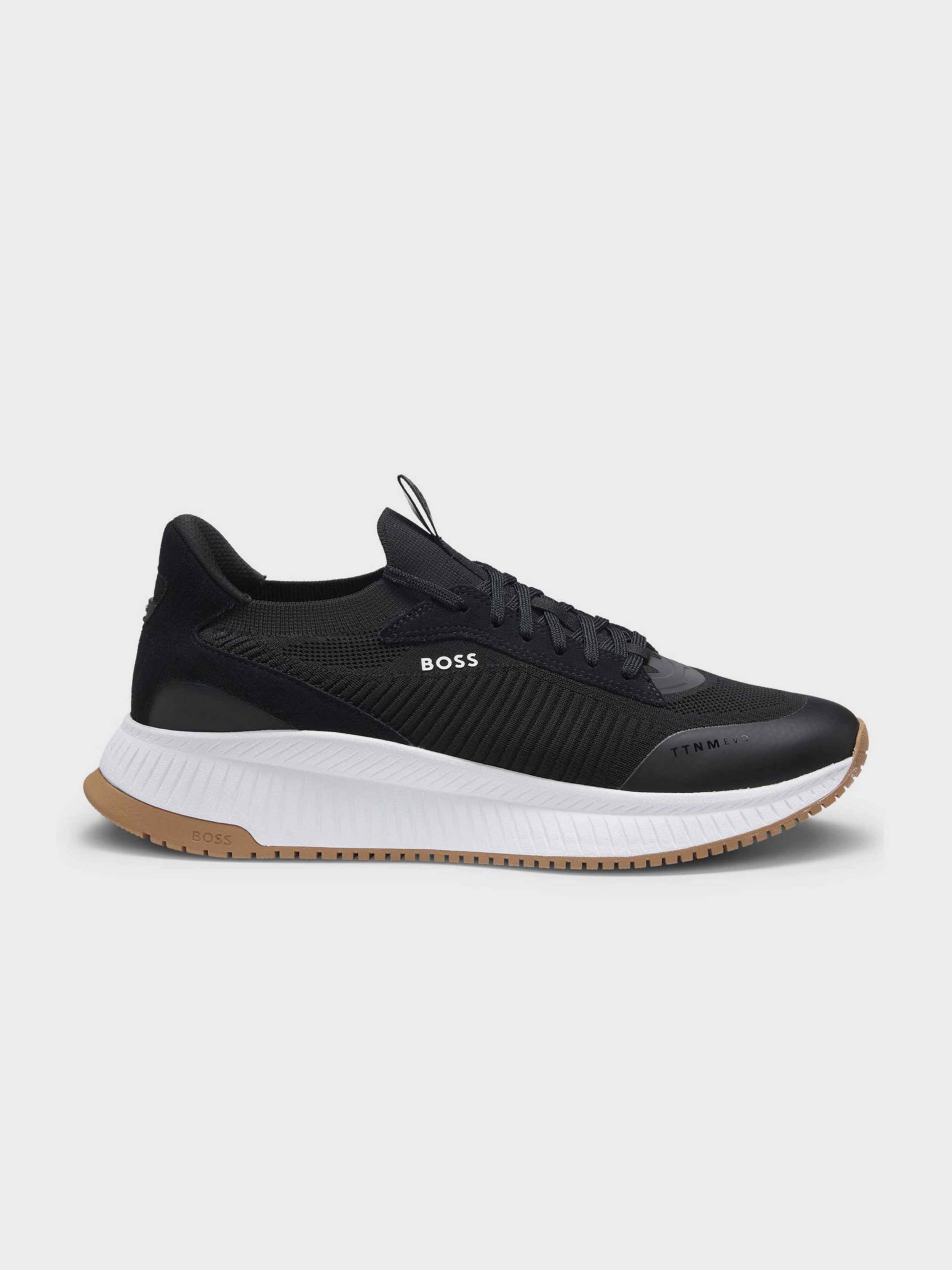 • Crafted in a combination of materials, including leather trims, these running-style BOSS Menswear trainers strike a distinctive profile. Lightweight ridged outsole. Knitted uppers for enhanced comfort and fit.