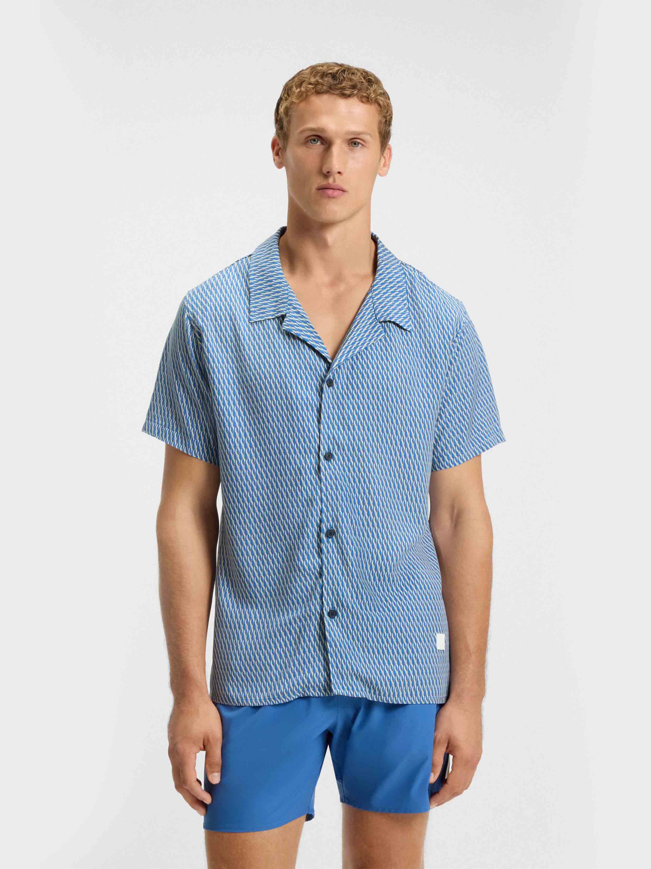 • Designed to coordinate with the matching swim shorts, this BOSS Menswear shirt is ideal for days at the beach. Statement all-over print. Logo patch.