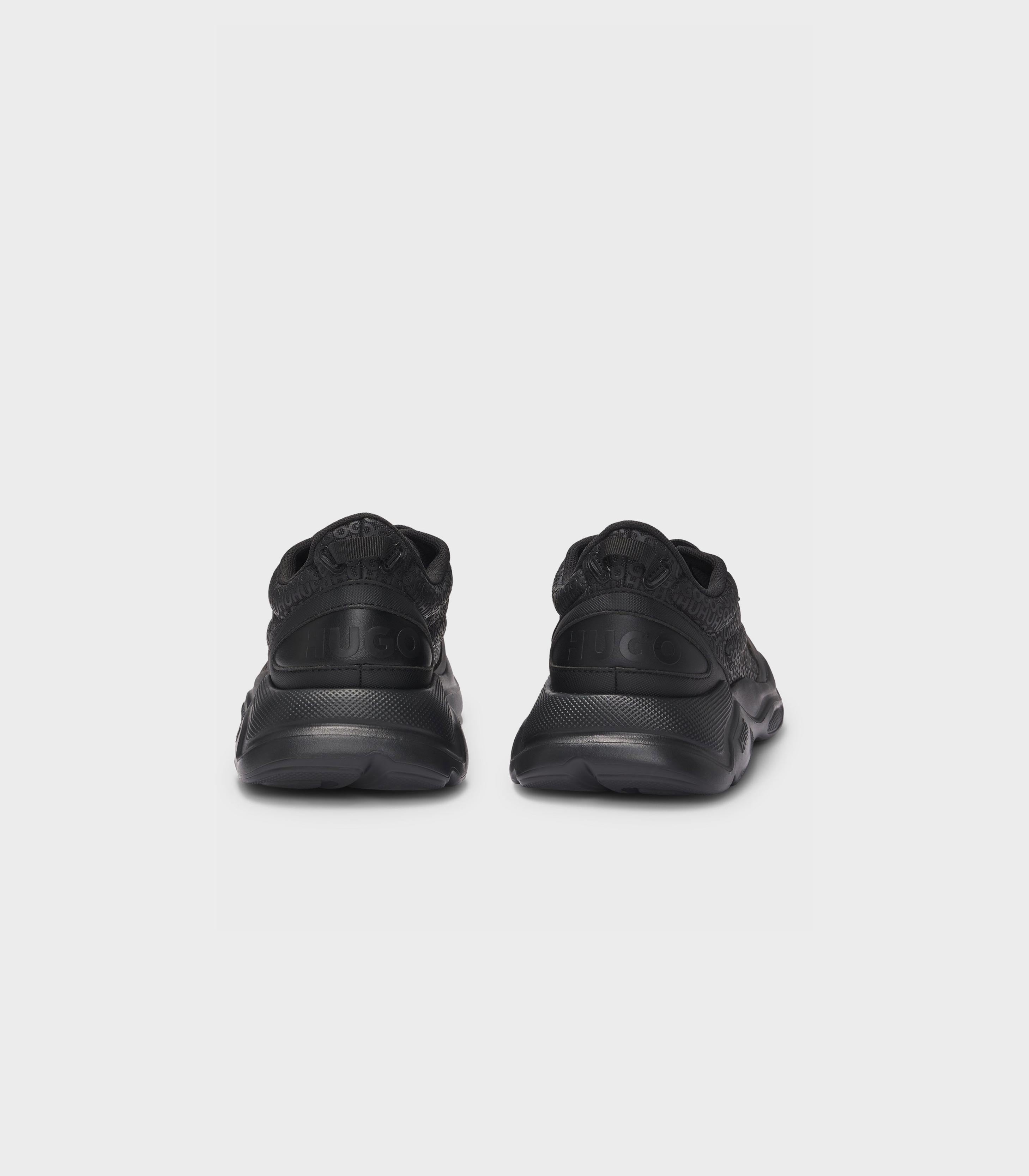 • Hugo essential contemporary running inspired sneaker in full monogram upper. Volume driver runner with logo tape on the back. Lightweight EVA sole with embossed logo.