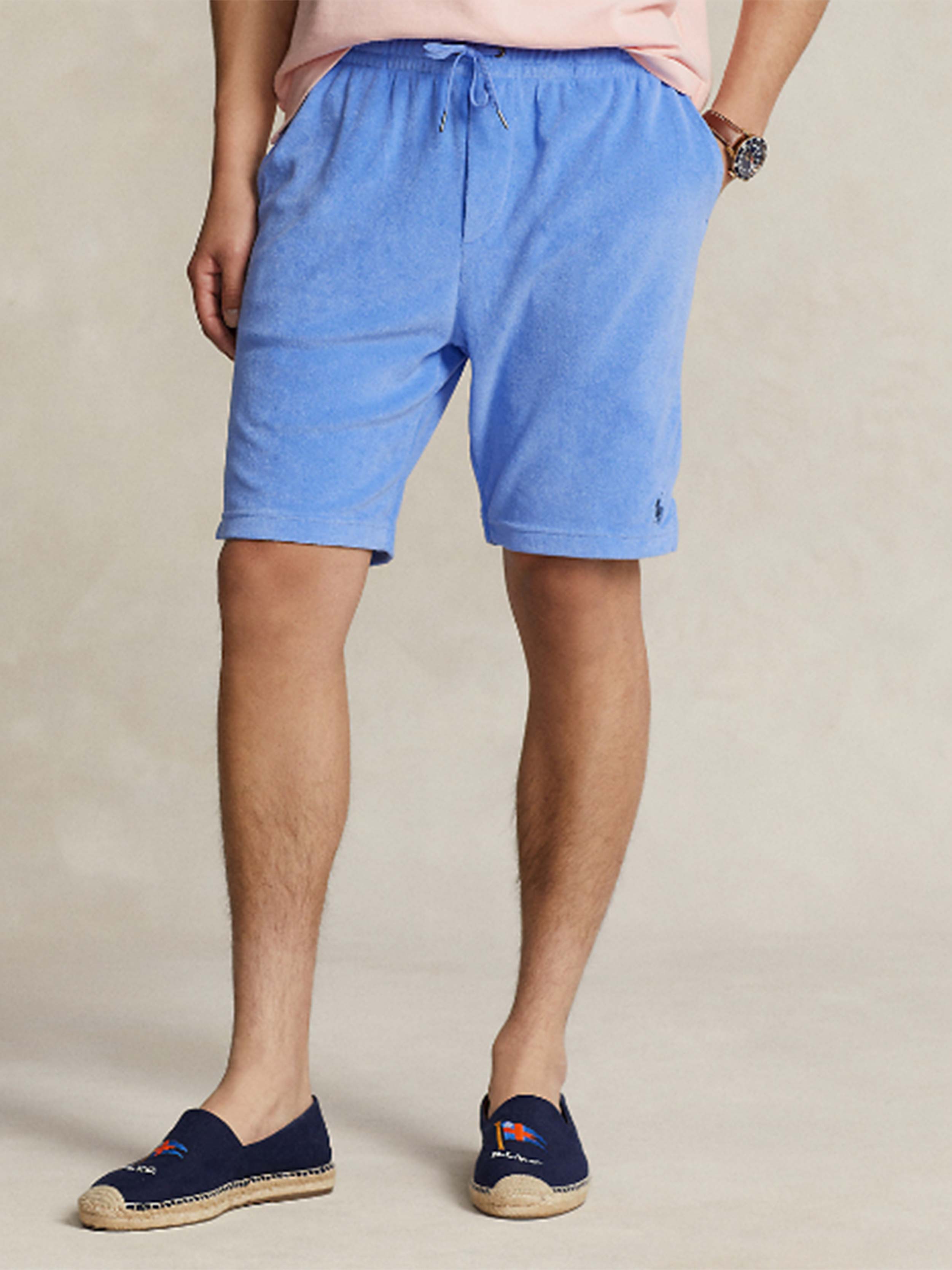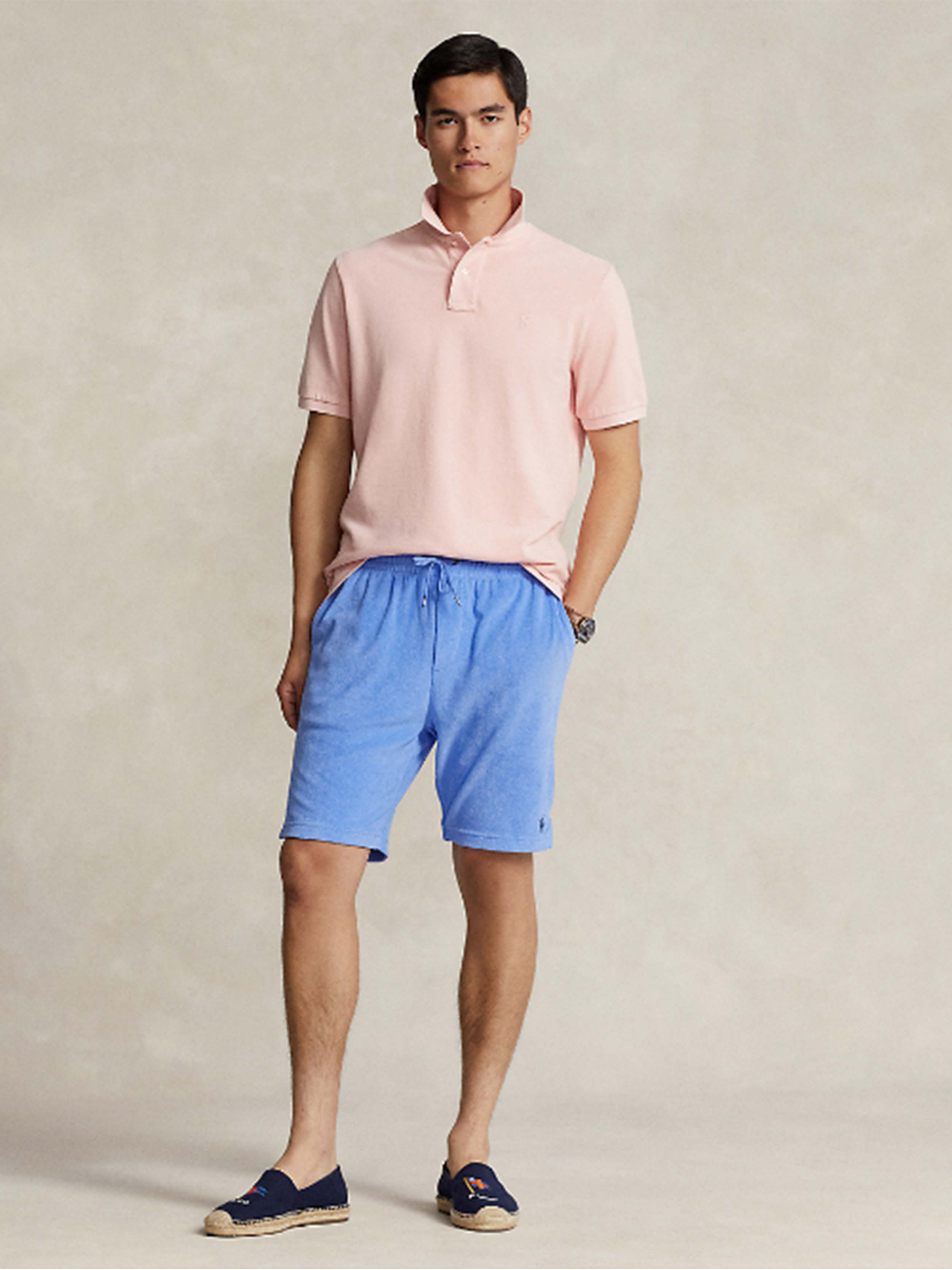 • These lightweight cotton-blend shorts are washed for enhanced softness and made with recycled polyester, reducing our dependence on virgin petroleum–based material. Ralph Lauren partners with Better Cotton™ to improve cotton farming globally. Better Cotton trains farmers to use water efficiently, care for the health of the soil and natural habitats, reduce use of the most harmful chemicals, and implement the principles of decent work.