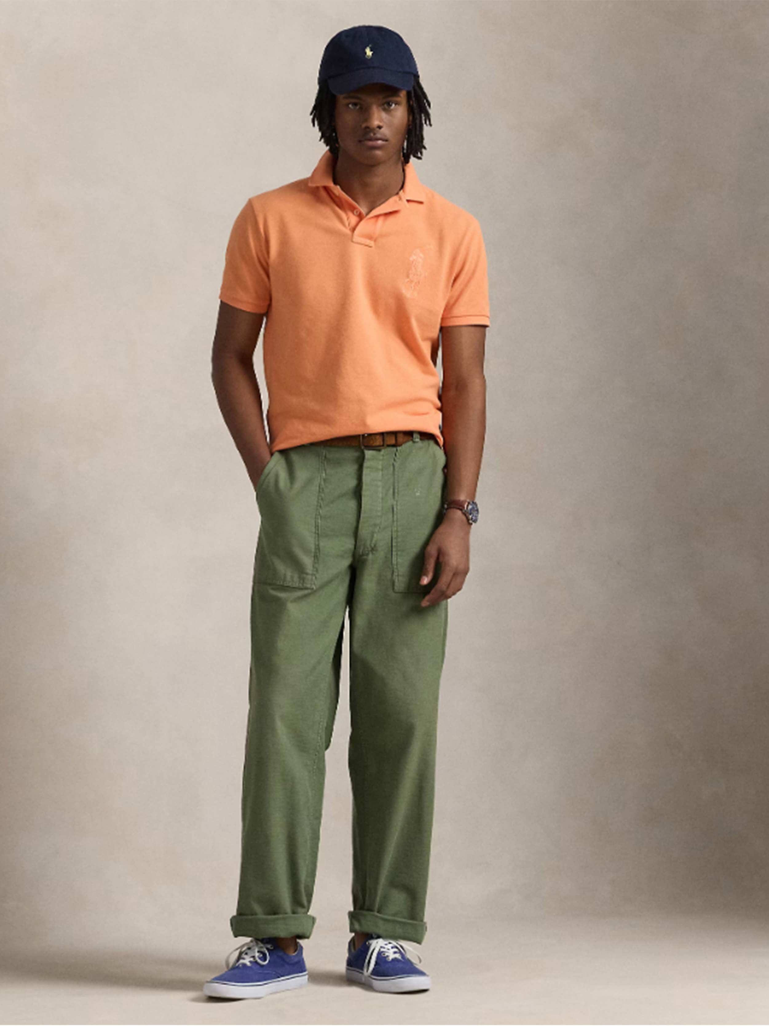 • Custom Slim Fit: a trim silhouette in between Polo's Classic Fit and Slim Fit. sleeve hugs the bicep. tailored through the waist.
