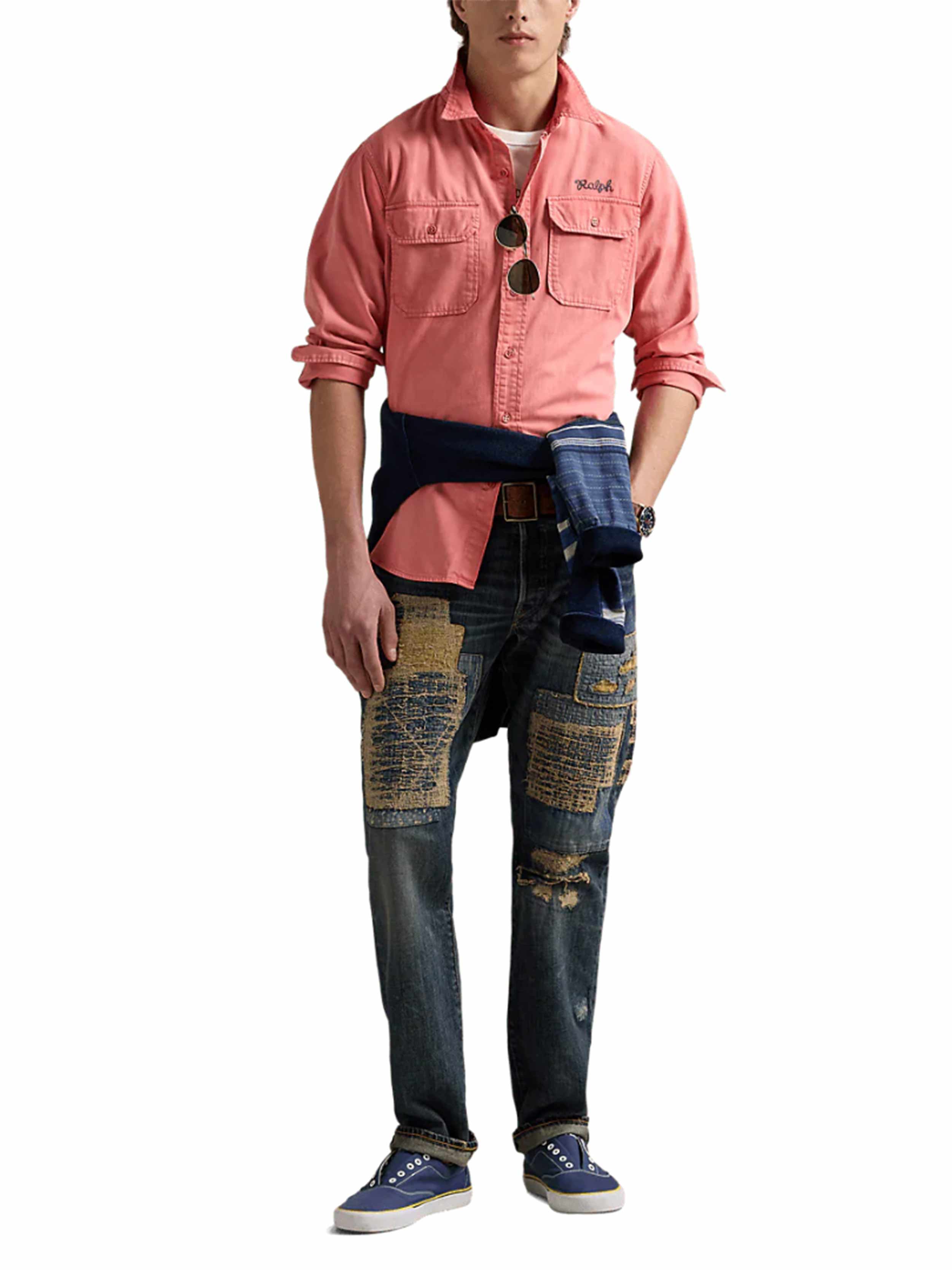 • This cotton workshirt is embroidered at the back with a signature graphic that nods to the season's surfing-inspired collection. It is garment-dyed and specially washed for a perfectly broken-in look and feel.