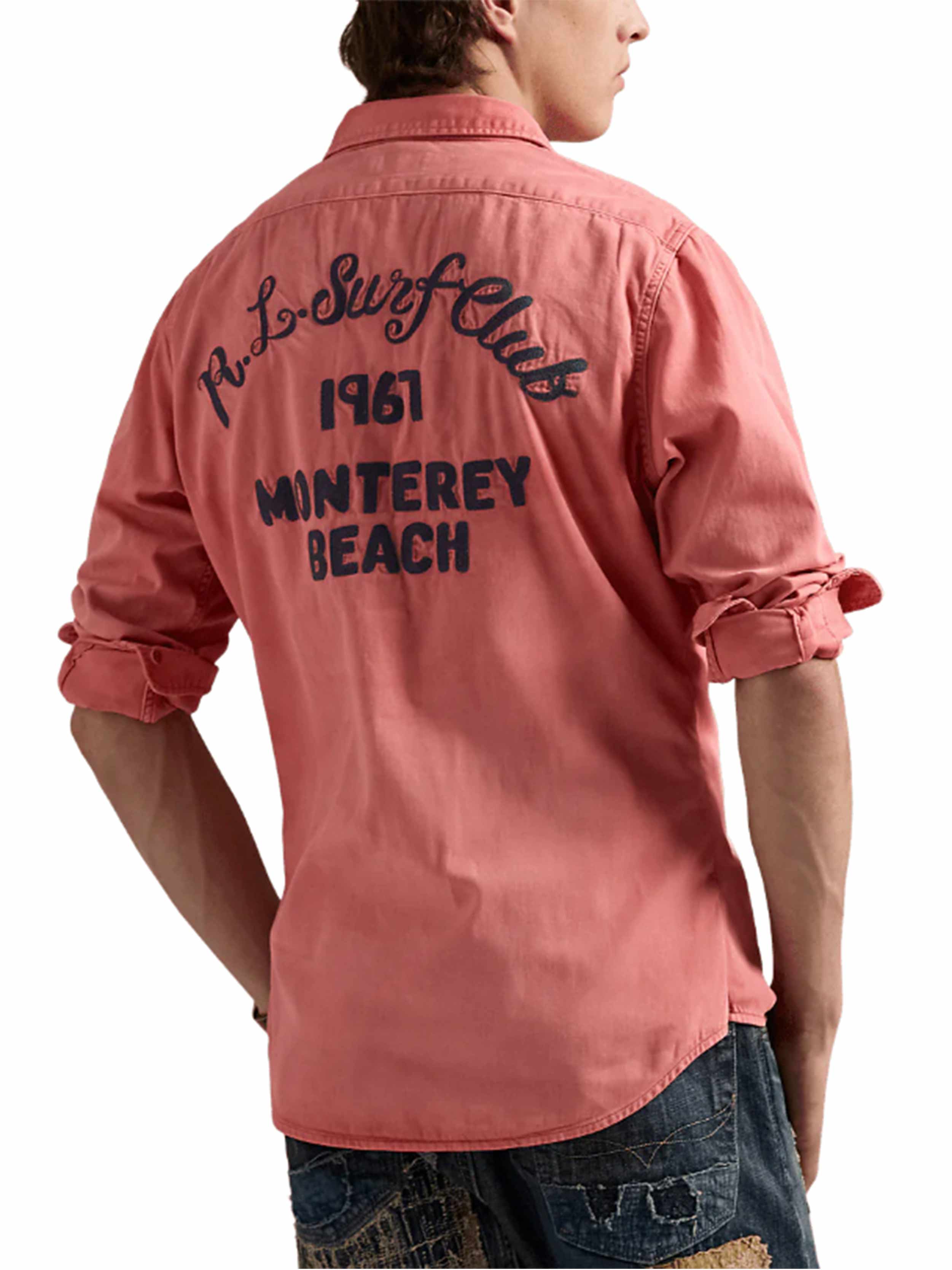 • Two chest buttoned pockets. Chain-stitched "Ralph" embroidery above the left pocket. Chain-stitched "R.L. Surf Club 1967 Monterey Beach" embroidery at the centre back.