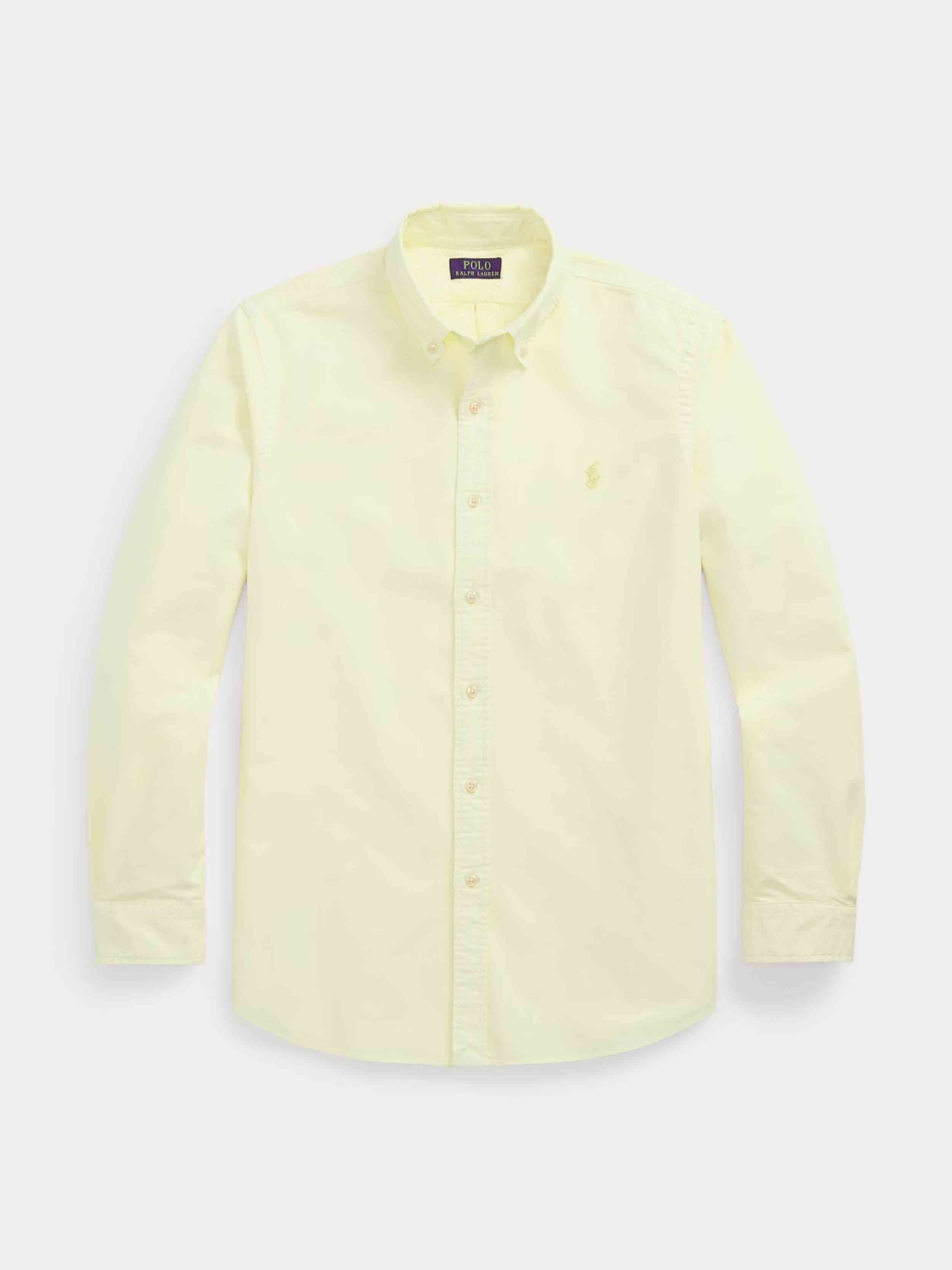 • The oxford shirt made its debut very early in Ralph Lauren’s designs, and since then, it has solidified its status as a pillar of the Polo look. Our fabric is developed with a secret wash, which gives it instant character, ease and a heathered softness. The formula is so unique that it's been kept in a safe for more than three decades. In addition to details evoking its prep-school inspiration, it offers a relaxed feel, producing what we refer to as "the perfect rumple". Today, Mr Lauren continues to create countless variations of his iconic shirt, including this version that is garment-dyed using mineral-derived ingredients to create a unique appearance that will continue to artfully fade for a timeworn look.