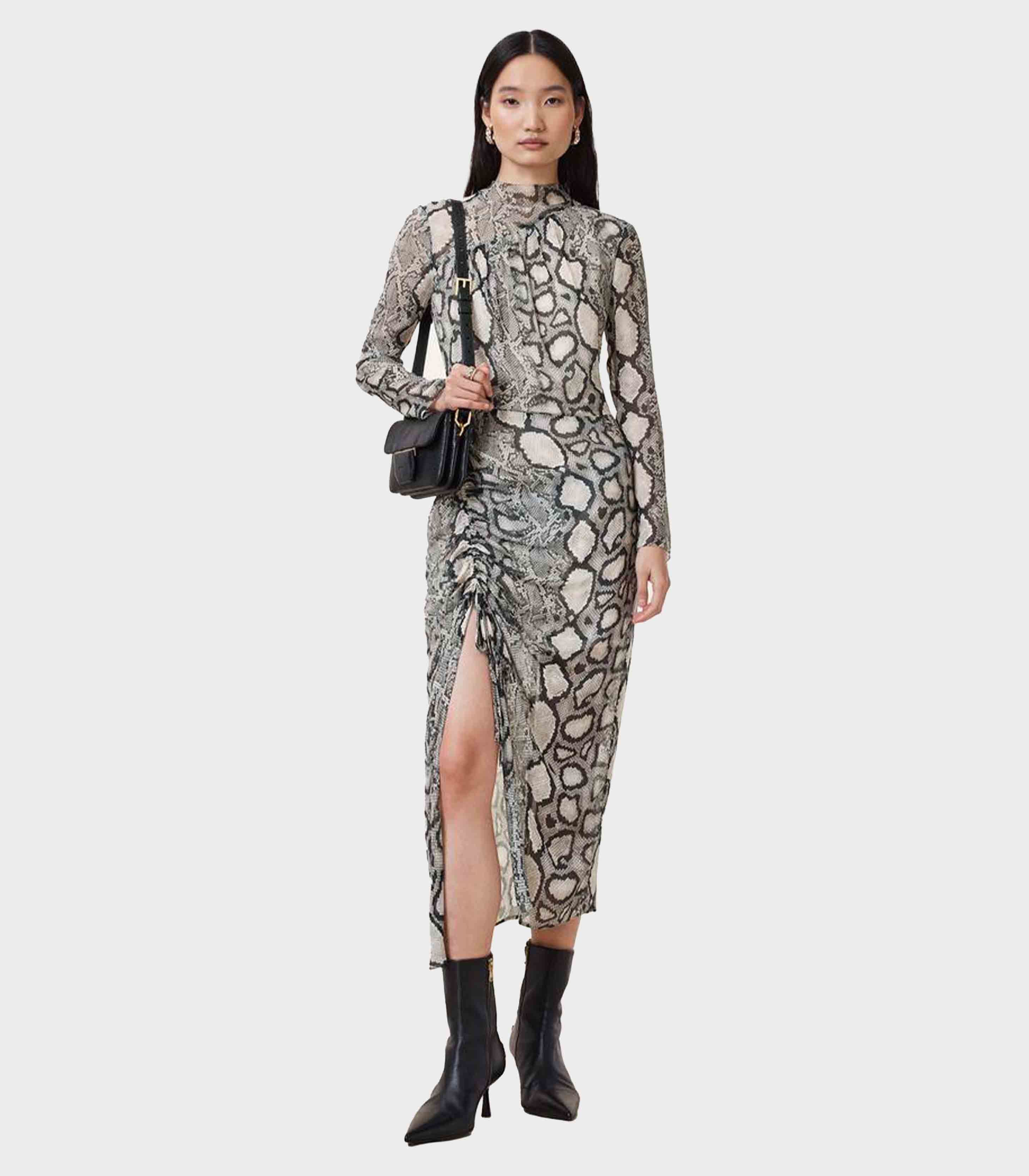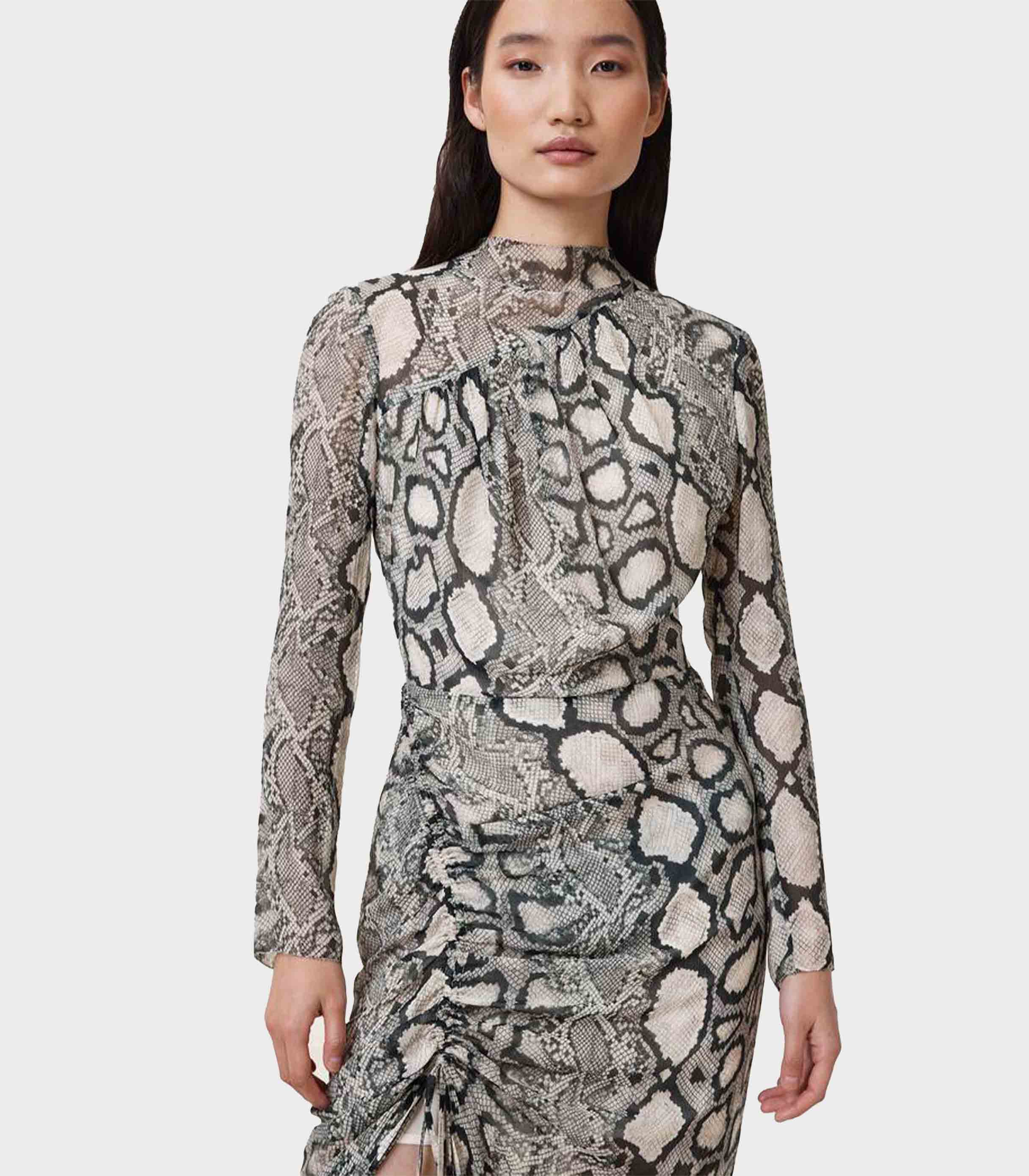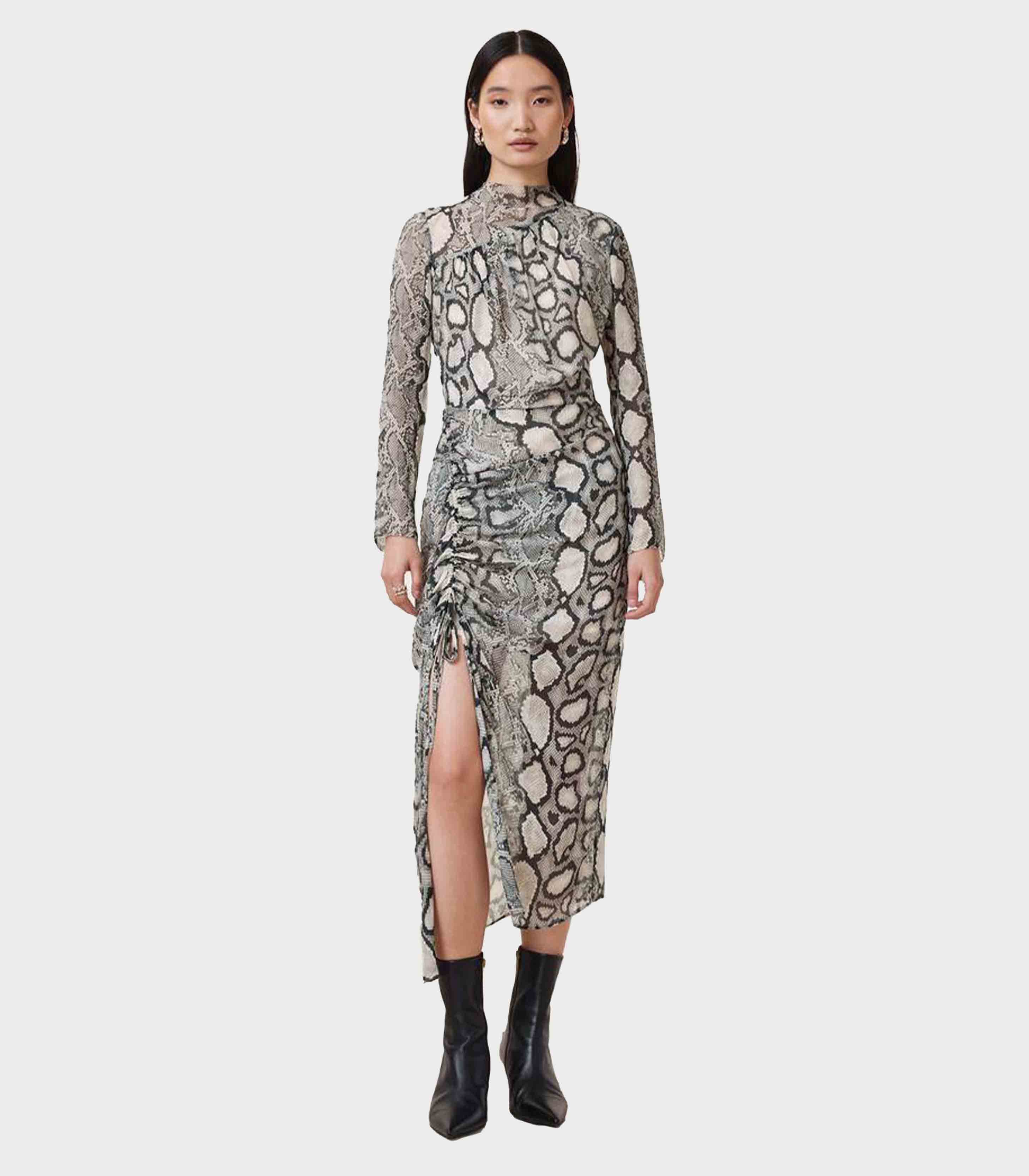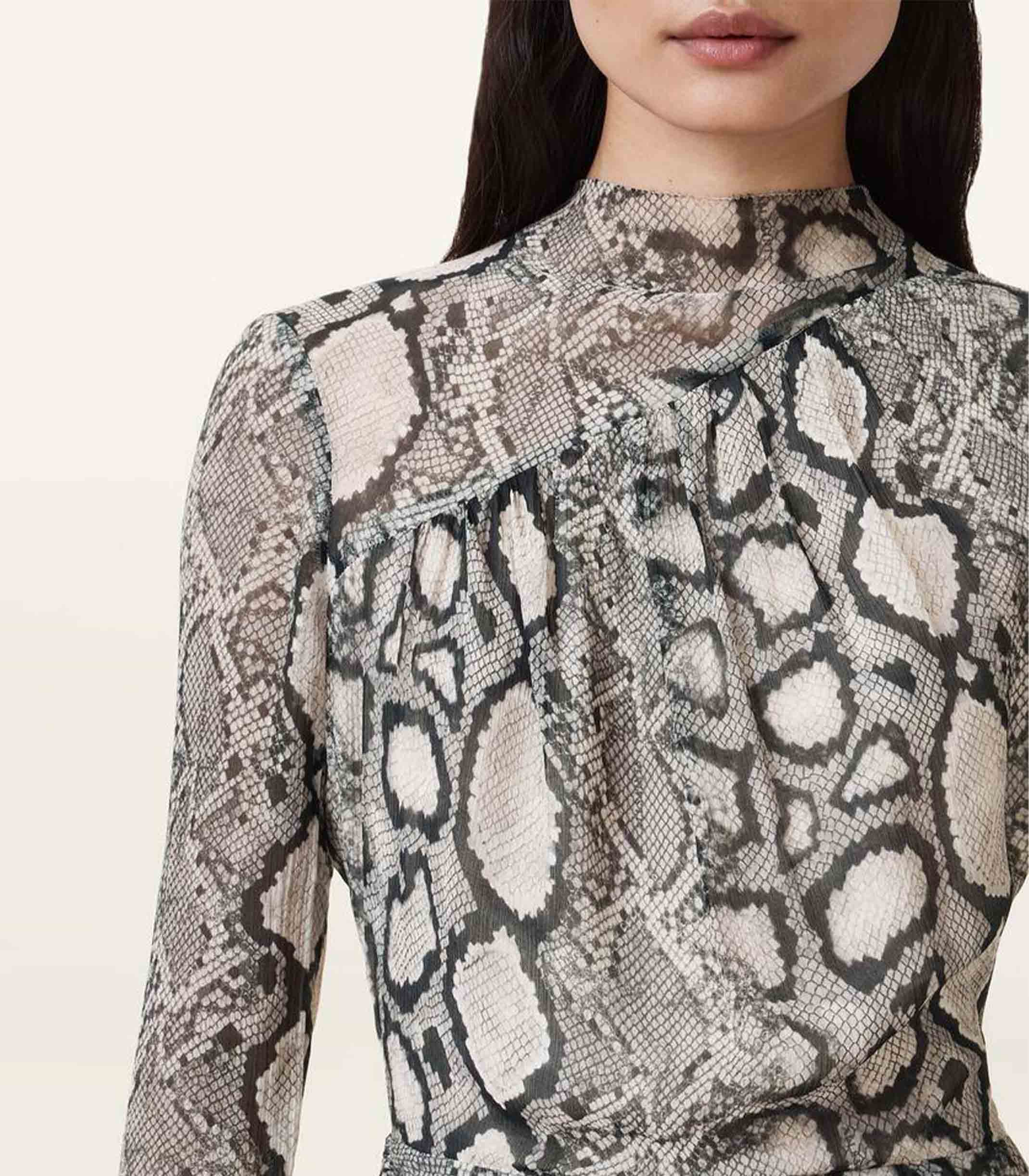 AllSaints - Rizo Snake Print Silk Blend Midi Dress