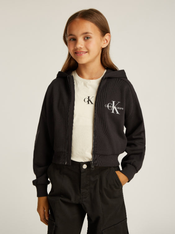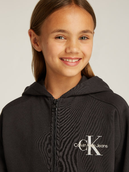 Calvin Klein - GLITTER MONOLOGO ZIP HOODIE , 8 , CK Black , Style IG0IG02824