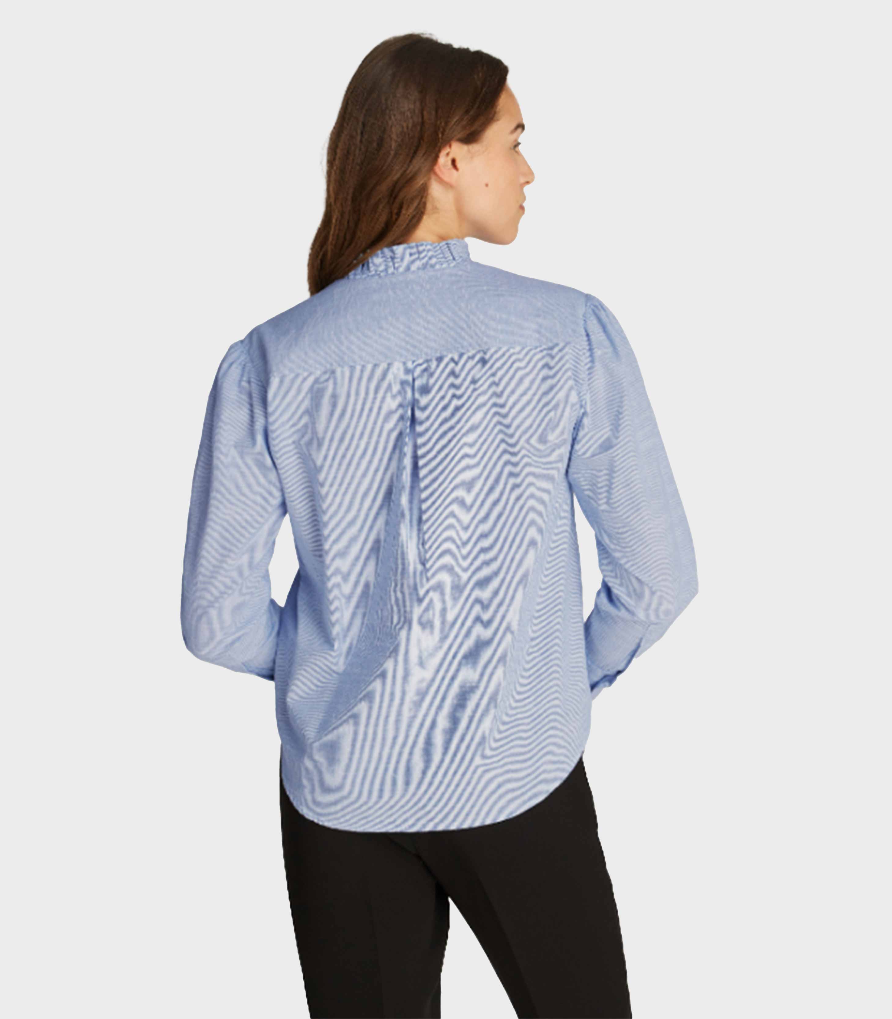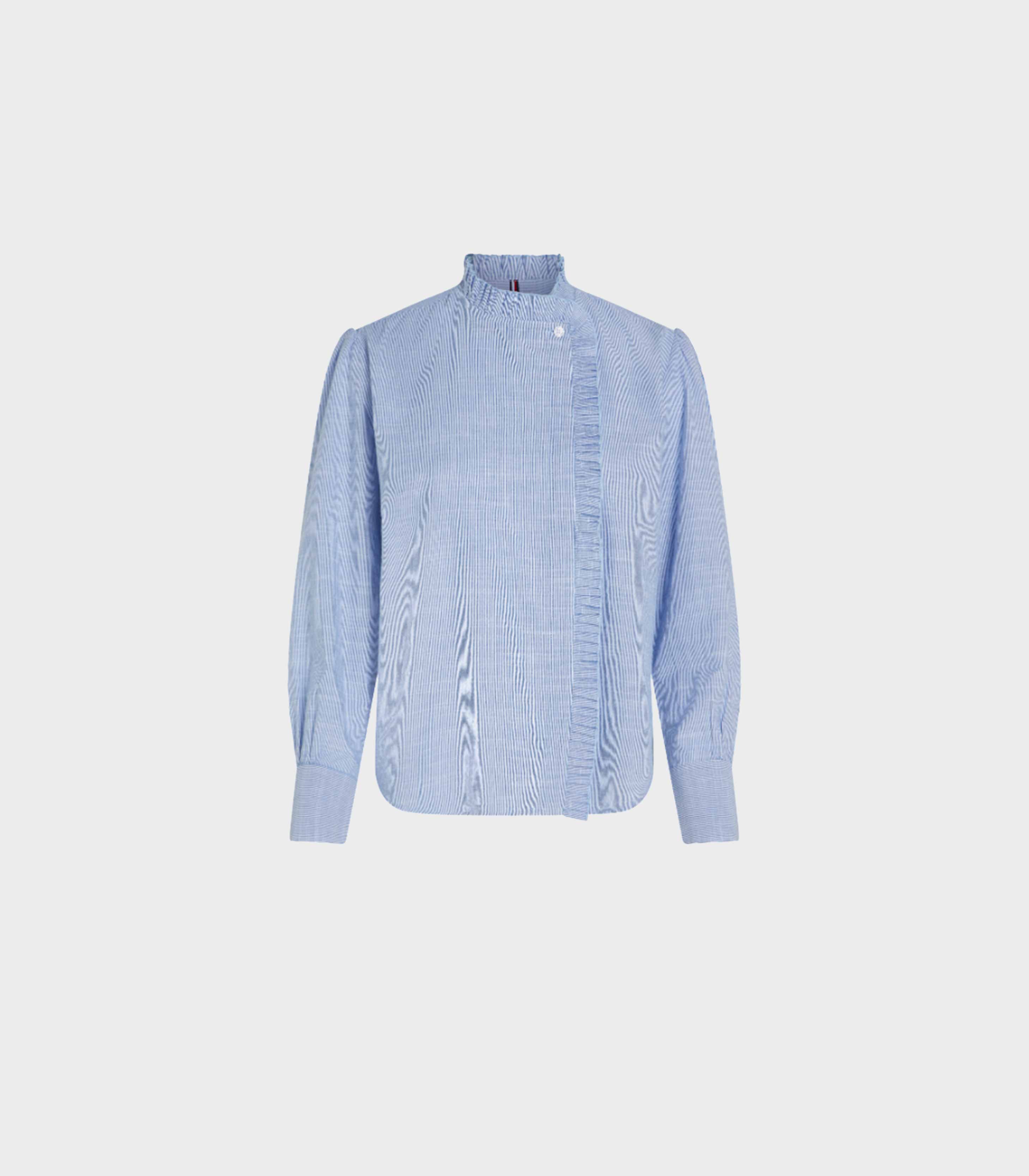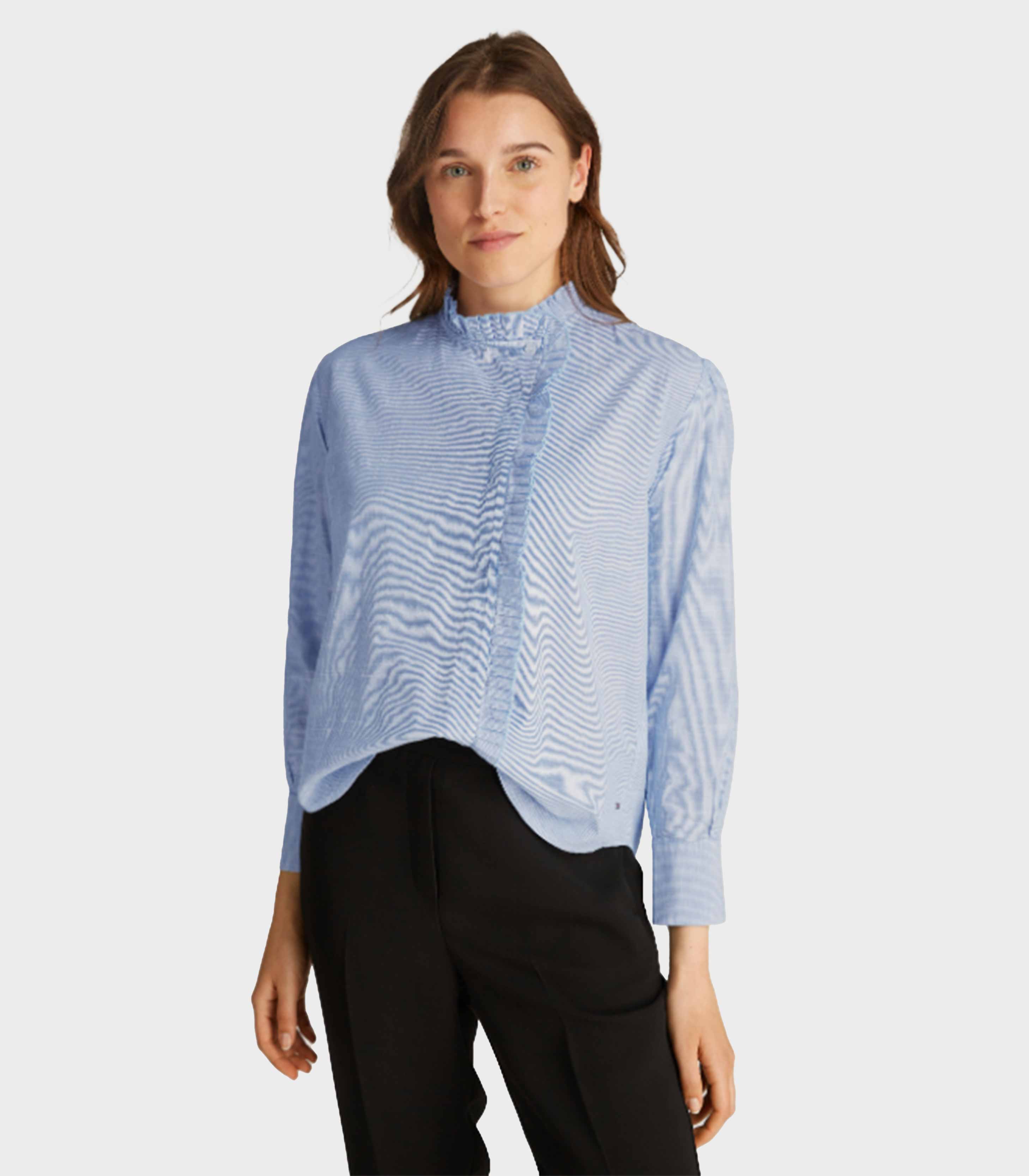 Tommy Hilfiger - COTTON STP RUFFLE RELAXED SHIRT , 38 , Fine Ithaka Stp Breezy Blue , Style WW0WW44063