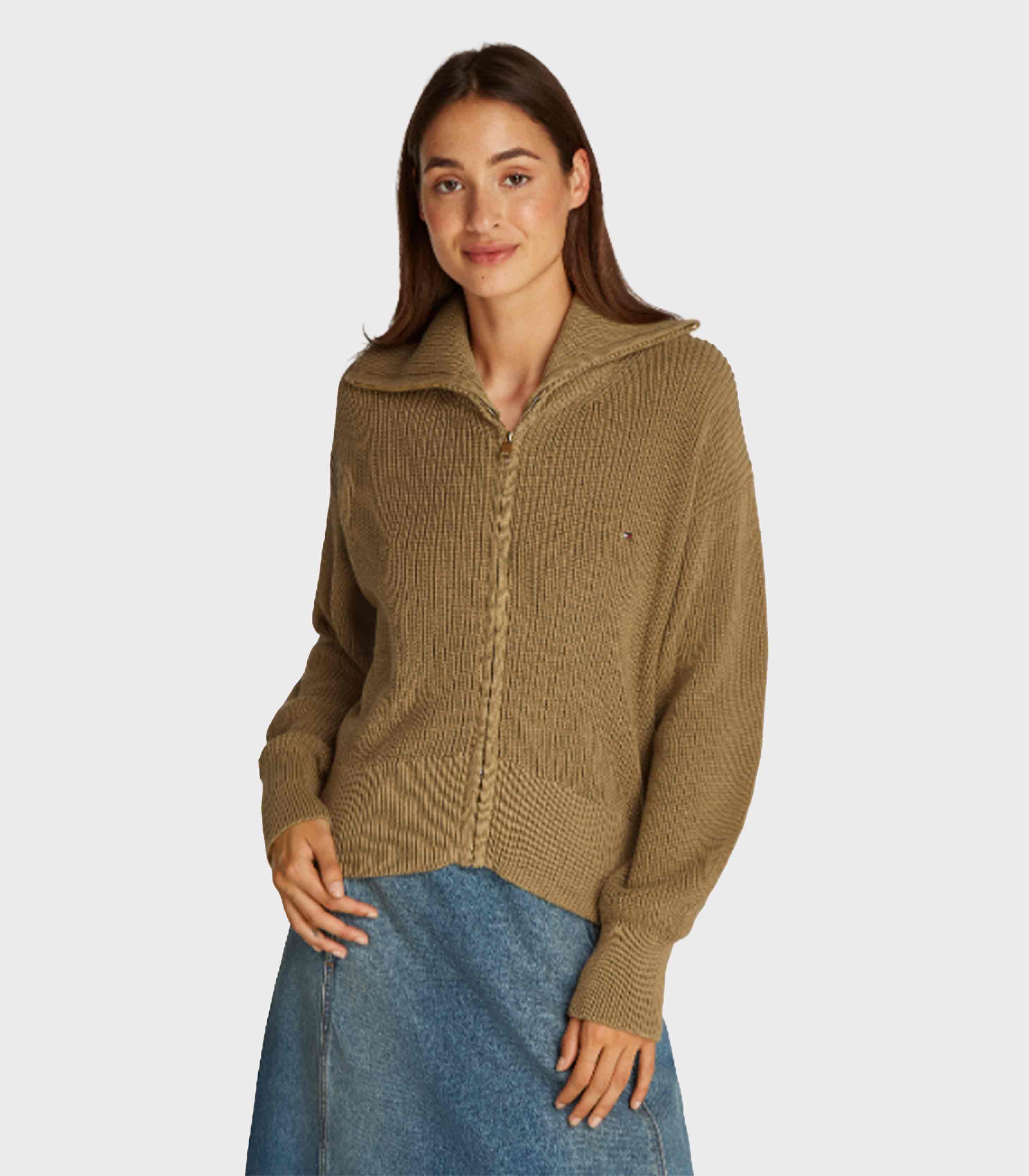 Tommy Hilfiger - CO CARDI STITCH FULL ZIP LS SWT , S , Safari Canvas , Style WW0WW44976