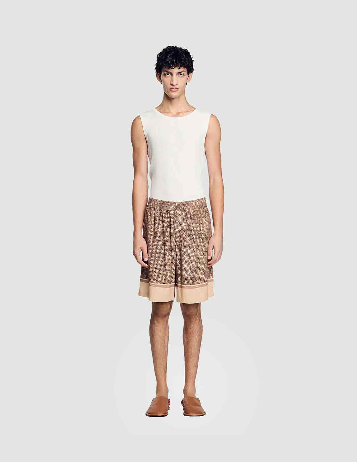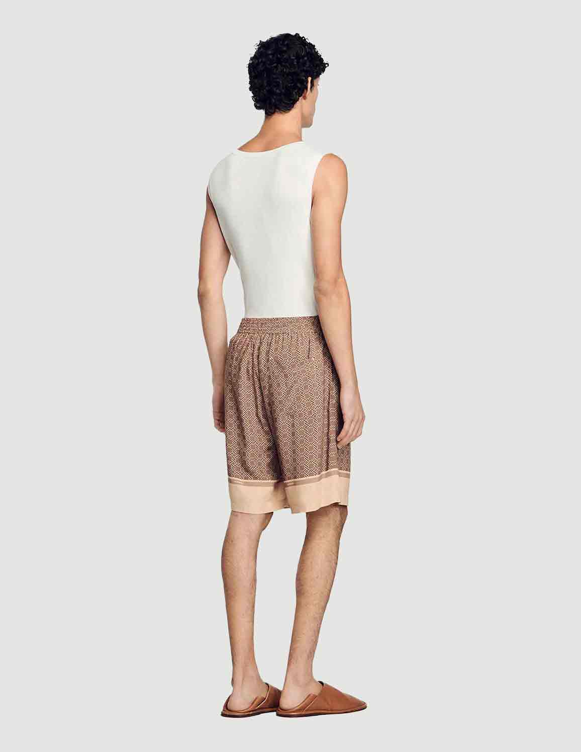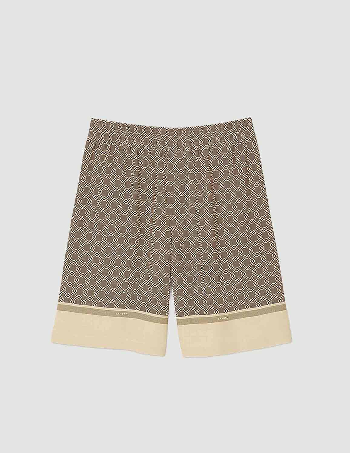 • Floaty Bermuda shorts with elasticated waistband and grid motif.