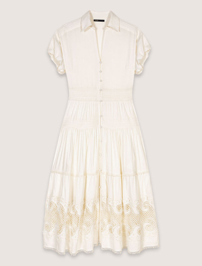 • Made from linen, this light, flared maxi dress is embellished with embroidered guipure inserts.